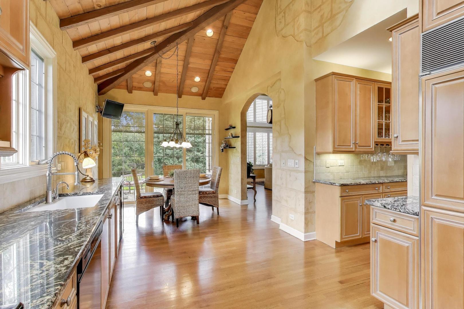 Welcome to Royal Ridge – where elegance, privacy, and ease define everyday life. Set behind the gates of Northbrook’s premier maintenance-free community, this exceptional residence-the largest, most sought-after Cambridge model-offers refined comfort surrounded by 50 acres of beautifully landscaped grounds, tree-lined streets, and timeless tranquility. Perfectly positioned on a premium perimeter lot with an extended driveway that leads to a gracious covered porch, the home feels private and serene. Inside, sunlight fills spacious rooms designed for both grand entertaining and relaxed daily living. The first-floor primary suite is a quiet sanctuary with a custom lead-glass transom entry, patio access, dual walk-in closets, and a spa-inspired bath with soaking tub, large shower, and dual vanities. The gourmet kitchen inspires connection, featuring a vaulted wood-beamed ceiling with skylights, granite counters, Sub-Zero refrigerator, wine fridge, and butler’s pantry that flows easily to the formal dining room, perfect for entertaining. The two-story family room-anchored by a stunning floor to ceiling stone fireplace-creates a warm gathering space framed by windows and plantation shutters. Upstairs includes a loft/office, an ensuite bedroom, and an additional bedroom with hall bath providing comfort for guests or family, while the finished lower level offers space to unwind and entertain with a recreation area, wet bar, temperature-controlled wine cellar, cedar closet, and additional bedroom and bath. Thoughtfully maintained by its original owner, the home includes hardwood floors throughout, a heated epoxy-floor 2.5-car garage with custom cabinetry, new roof (2023), AC (2024), water heater (2023), and freshly painted exterior (2025). Residents of Royal Ridge enjoy 24/7 gated security, professional landscaping and snow care, on-site management, and a newly renovated clubhouse with pool, fitness center, and gathering room and full kitchen. Close to Sunset Ridge Country Club, fine dining, and shopping, this home embodies effortless North Shore luxury-private, elegant, and perfectly cared for. Estate sale offered as-is. LA is a beneficiary of the trust that owns the property.