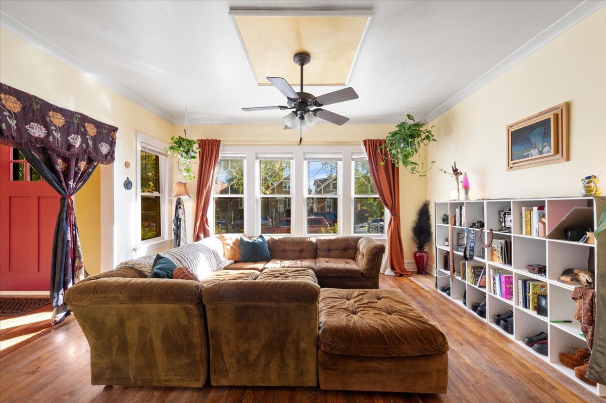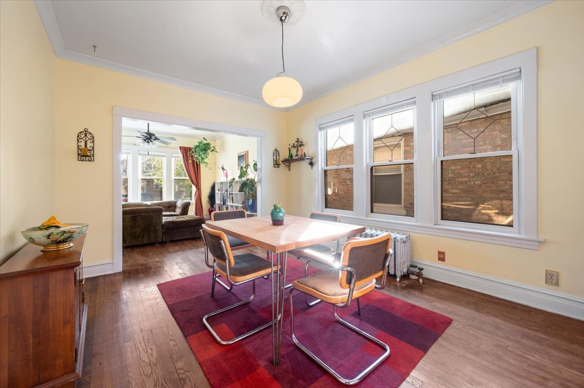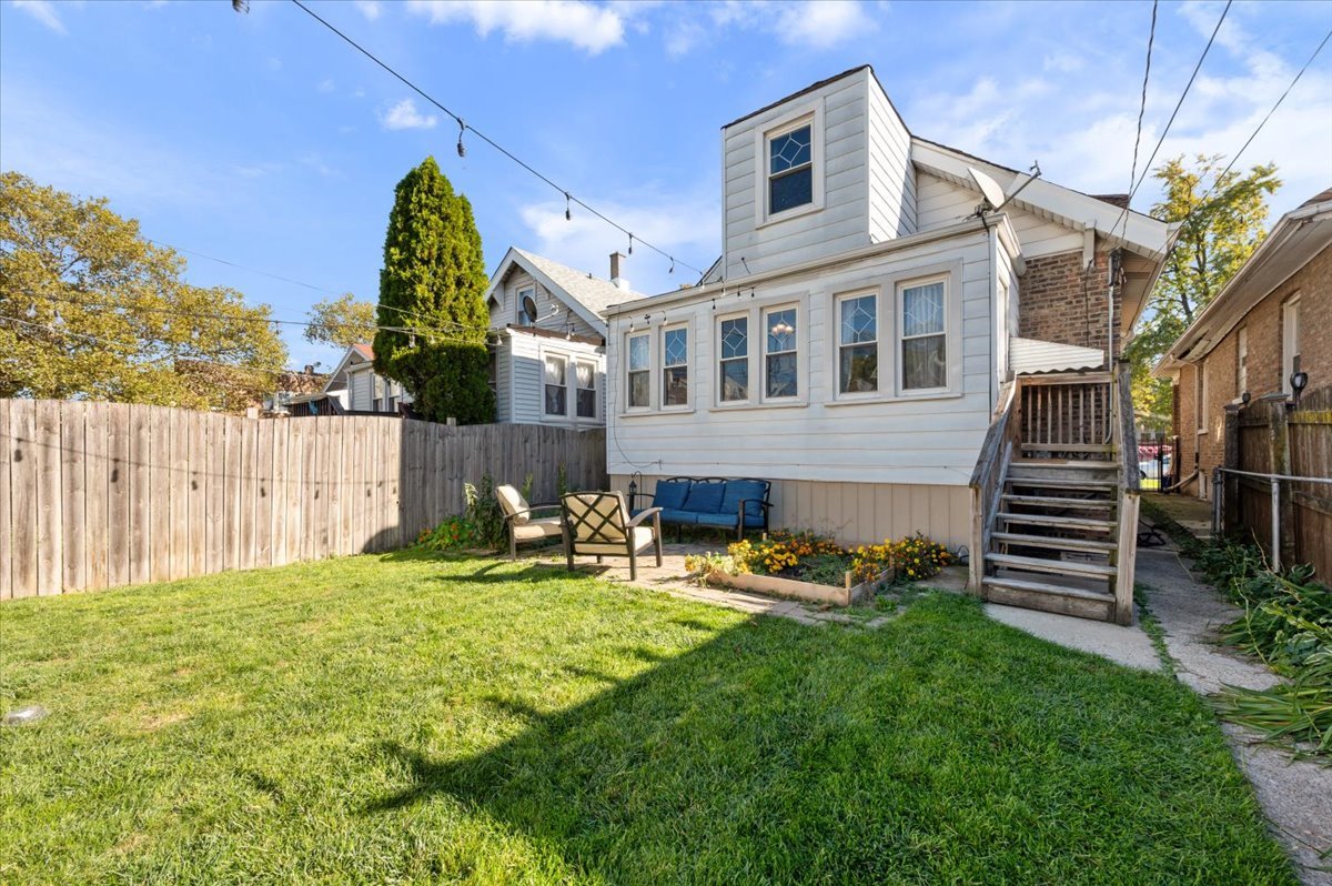 Welcome to this charming 4-bedroom, 2-bath bungalow nestled in Chicago’s Belmont Cragin neighborhood! This inviting home blends vintage character with everyday comfort, featuring hardwood floors, a cozy heated sun porch, and bright living spaces filled with natural light. The main floor offers two bedrooms and a full bathroom showcasing a classic clawfoot tub, retro-style sink, and vintage inspired tilework. A sunny country kitchen features farmhouse-style cabinets, a farmhouse sink, and a walk-in pantry providing plenty of extra storage. Upstairs, you’ll find a quaint nook, ideal for a cozy sitting area or desk space, flanked by two spacious bedrooms. The large unfinished basement provides ample storage and includes a bonus room ready to become a home office, workout area, or creative studio, along with an additional full bathroom. Enjoy the outdoors with a large, fenced front yard and a backyard retreat with a patio and small garden area-perfect for relaxing or entertaining. This home is complete with a detached 2-car garage, adding both convenience and functionality. Full of charm and potential, this Belmont Cragin bungalow is ready to welcome its next owner home.