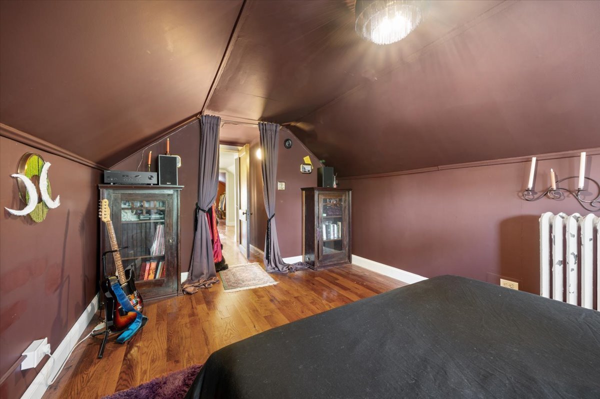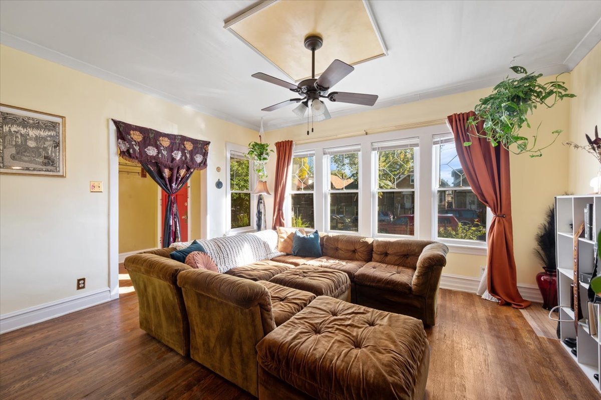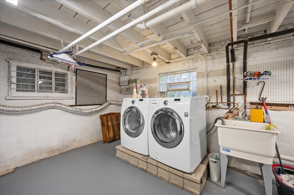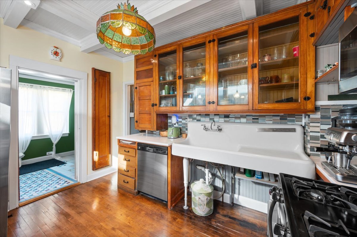 Welcome to this charming 4-bedroom, 2-bath bungalow nestled in Chicago’s Belmont Cragin neighborhood! This inviting home blends vintage character with everyday comfort, featuring hardwood floors, a cozy heated sun porch, and bright living spaces filled with natural light. The main floor offers two bedrooms and a full bathroom showcasing a classic clawfoot tub, retro-style sink, and vintage inspired tilework. A sunny country kitchen features farmhouse-style cabinets, a farmhouse sink, and a walk-in pantry providing plenty of extra storage. Upstairs, you’ll find a quaint nook, ideal for a cozy sitting area or desk space, flanked by two spacious bedrooms. The large unfinished basement provides ample storage and includes a bonus room ready to become a home office, workout area, or creative studio, along with an additional full bathroom. Enjoy the outdoors with a large, fenced front yard and a backyard retreat with a patio and small garden area-perfect for relaxing or entertaining. This home is complete with a detached 2-car garage, adding both convenience and functionality. Full of charm and potential, this Belmont Cragin bungalow is ready to welcome its next owner home.