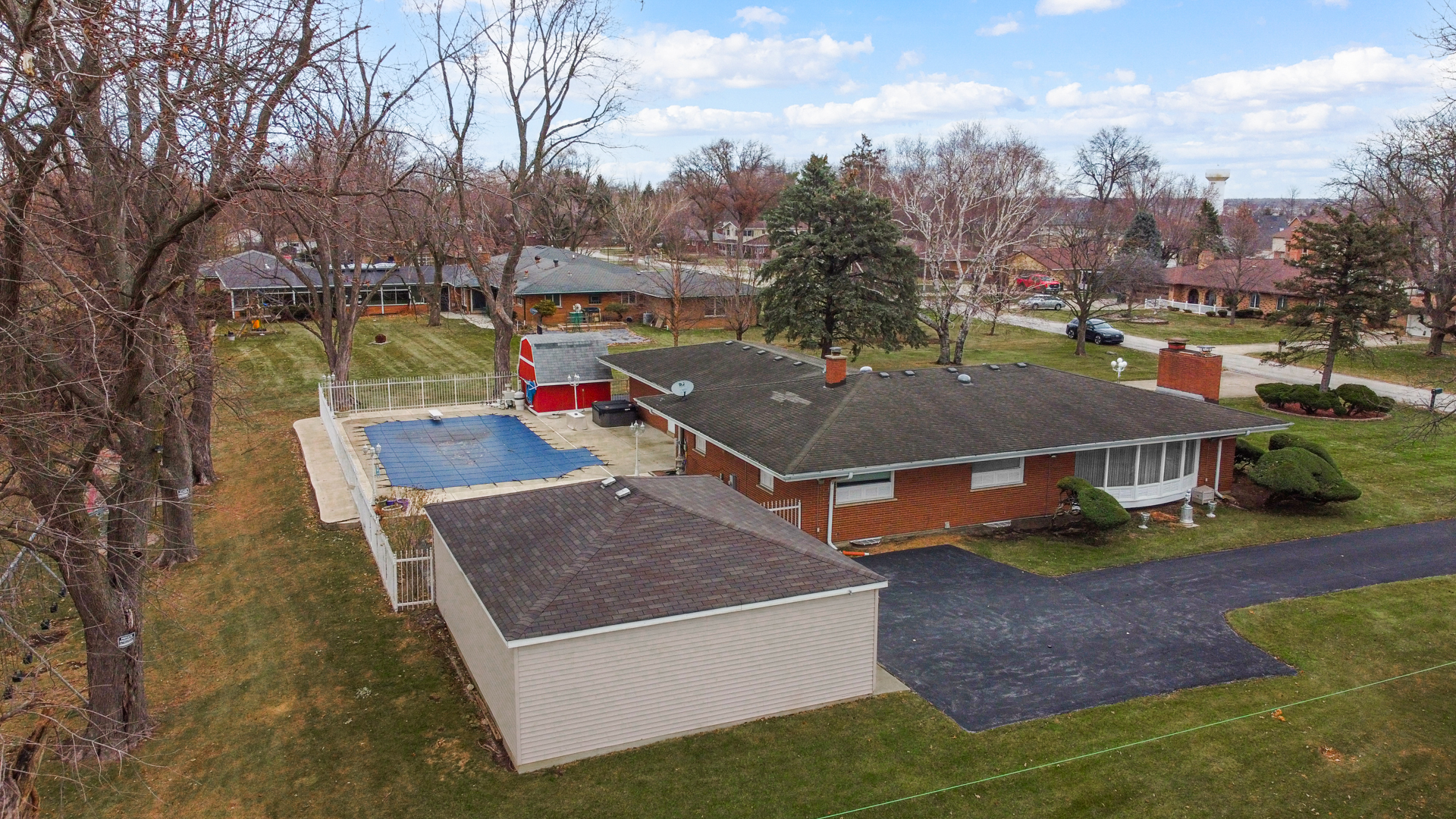 Poised on an expansive 1.07-acre estate, this distinguished brick ranch delivers timeless elegance and exceptional versatility, perfectly suited for refined related or multigenerational living. A newly enclosed porch with custom shades sets a sophisticated tone, leading into a sunlit marble foyer accented by a dramatic skylight. The living room showcases a statement fireplace offering both gas and wood-burning options, blending comfort with classic charm. The thoughtfully designed eat-in kitchen features stainless steel appliances and a double oven, seamlessly connecting to an impressive great room that frames serene backyard views. Step outside to a private resort-style retreat highlighted by a spectacular 9-foot-deep, 40,000-gallon illuminated in-ground pool, complete with a new liner installed in 2022-an ideal setting for entertaining or tranquil relaxation. The fully finished lower level elevates the home’s functionality, offering a wood-burning fireplace, second kitchen, elegant entertainment space with wet bar, laundry room, and a spa-inspired three-quarter bath with whirlpool tub, along with possible 2 bedrooms, office, or den. Completing this remarkable offering are an attached two-car garage featuring a half bath plus a detached three-car garage (25′ x 30′). An additional back lot enhances the estate with vintage style playground. Major mechanicals-including roof, furnace, A/C, and hot water tank-are approximately 11 years old, ensuring peace of mind while enjoying this exceptional property. Schedule Your Tour Today!!