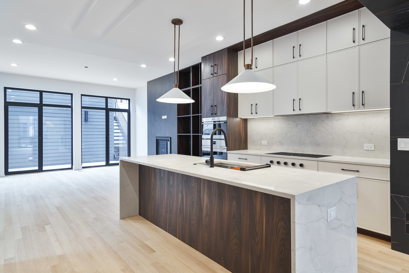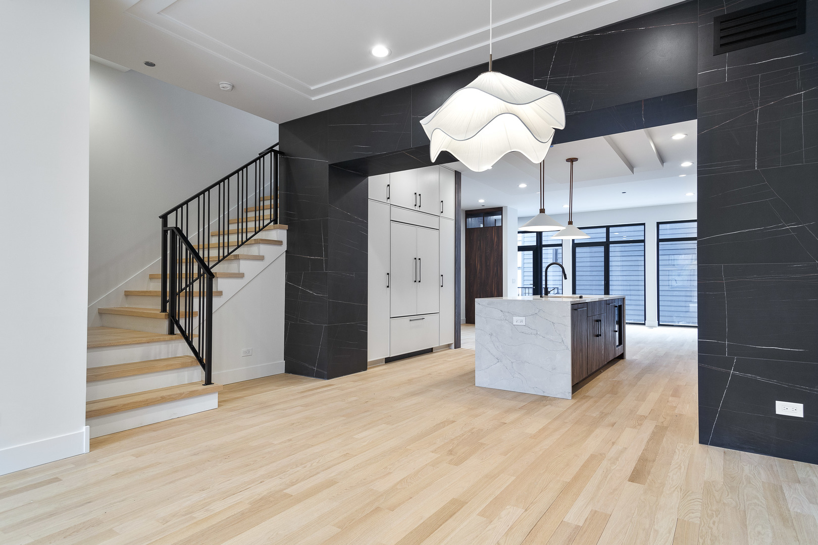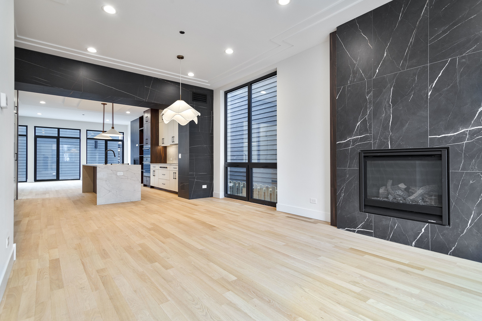 Construction is complete and this one is a real stunner! Final home to hit the market in our most recent development, The Race Collection. Contemporary facade with clean lines and brick accents. Extra wide floor plan with high end fixtures and finishes. Modern, sun filled spaces with oversized windows. Open concept main-level perfect for entertaining. Combined living/dining area features direct vent gas fireplace with floor to ceiling surround. Chef quality kitchen includes top of the line Sub-Zero and Wolf appliances, custom cabinetry with quartz countertops, and large island with bar seating. Expansive family room with second gas fireplace and a wall of back windows. Upper level primary suite with two WIC’s and ensuite bath featuring a freestanding tub, frameless glass shower, dual sinks, and heated flooring. Two additional bedrooms, full bath with tub and dual sinks, and laundry with LG washer/dryer complete the level. Third floor wet bar opens to a roof deck with outdoor fireplace. Finished lower level features radiant heated flooring and includes a spacious recreation room complete with wet bar, fourth bedroom with large WIC, full bath with shower, utilities, and luxury vinyl plank flooring. Rear deck with staircase to garage roof deck with pergola. Prime West Town location close to restaurants, shopping, entertainment, and Smith Park! Easy access to public transportation and other great neighborhoods.