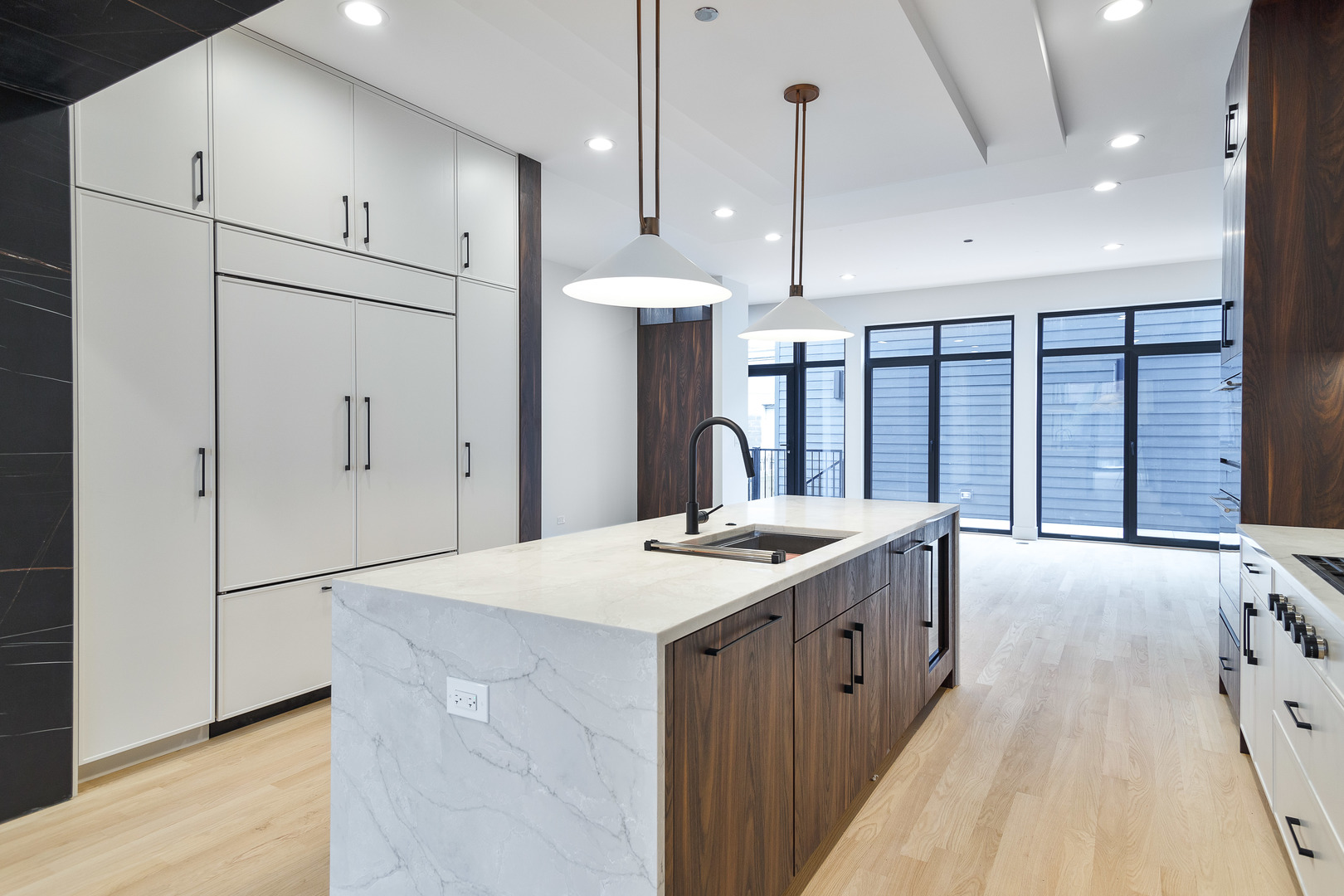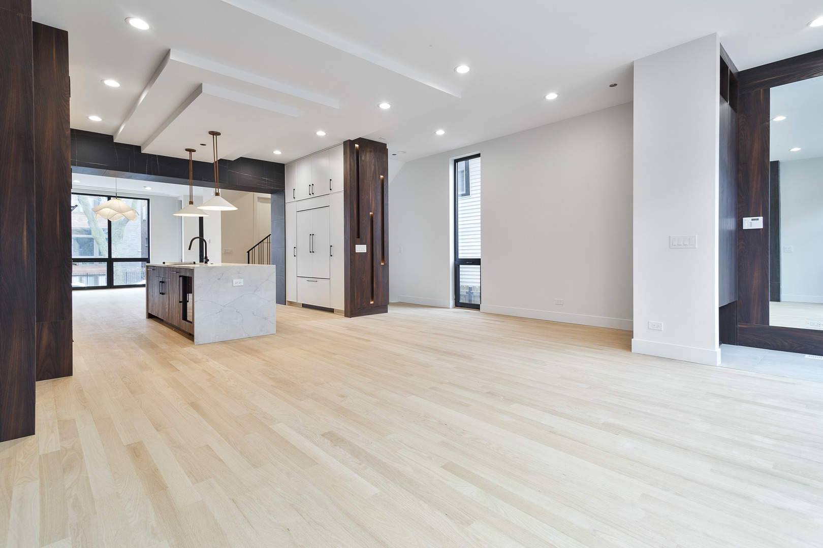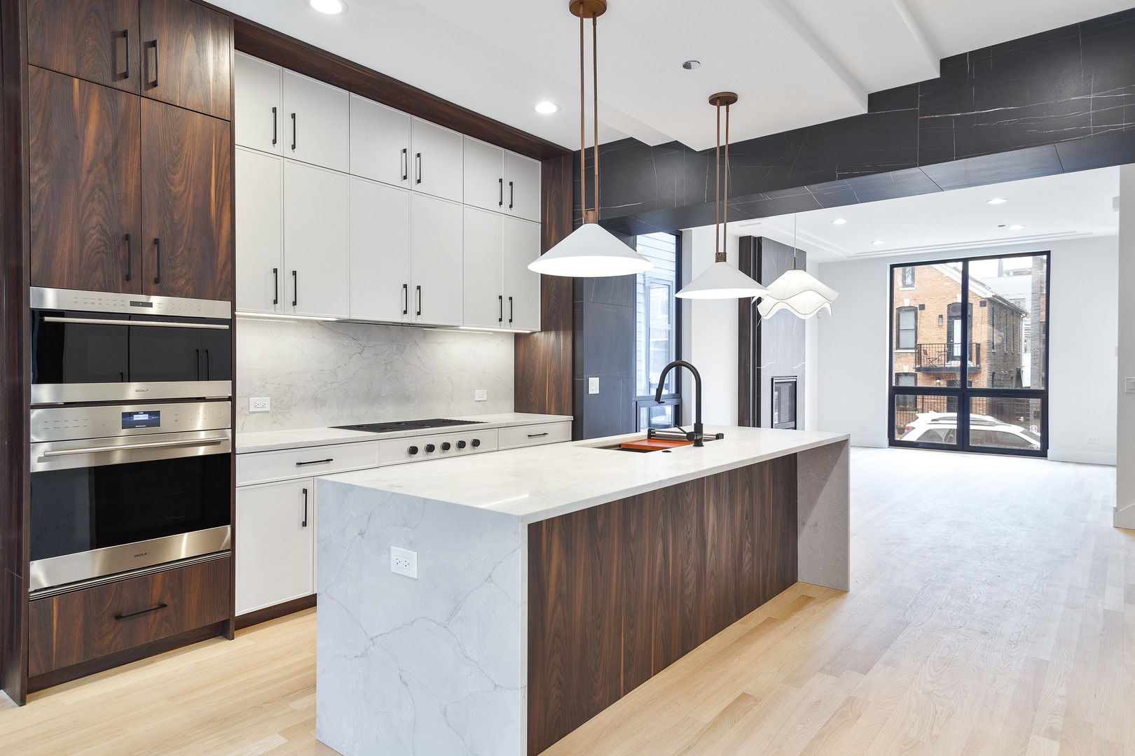 Construction is complete and this one is a real stunner! Final home to hit the market in our most recent development, The Race Collection. Contemporary facade with clean lines and brick accents. Extra wide floor plan with high end fixtures and finishes. Modern, sun filled spaces with oversized windows. Open concept main-level perfect for entertaining. Combined living/dining area features direct vent gas fireplace with floor to ceiling surround. Chef quality kitchen includes top of the line Sub-Zero and Wolf appliances, custom cabinetry with quartz countertops, and large island with bar seating. Expansive family room with second gas fireplace and a wall of back windows. Upper level primary suite with two WIC’s and ensuite bath featuring a freestanding tub, frameless glass shower, dual sinks, and heated flooring. Two additional bedrooms, full bath with tub and dual sinks, and laundry with LG washer/dryer complete the level. Third floor wet bar opens to a roof deck with outdoor fireplace. Finished lower level features radiant heated flooring and includes a spacious recreation room complete with wet bar, fourth bedroom with large WIC, full bath with shower, utilities, and luxury vinyl plank flooring. Rear deck with staircase to garage roof deck with pergola. Prime West Town location close to restaurants, shopping, entertainment, and Smith Park! Easy access to public transportation and other great neighborhoods.