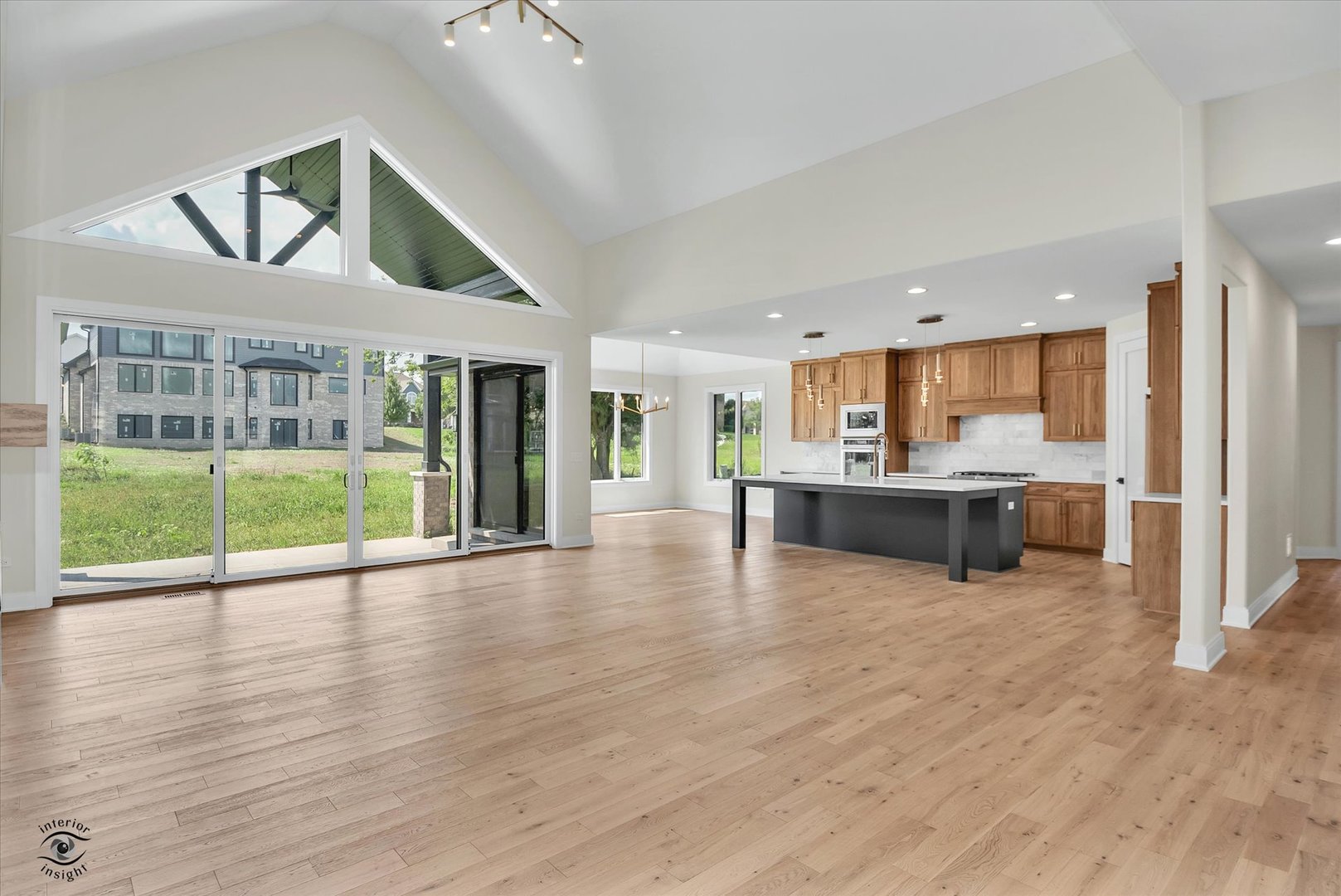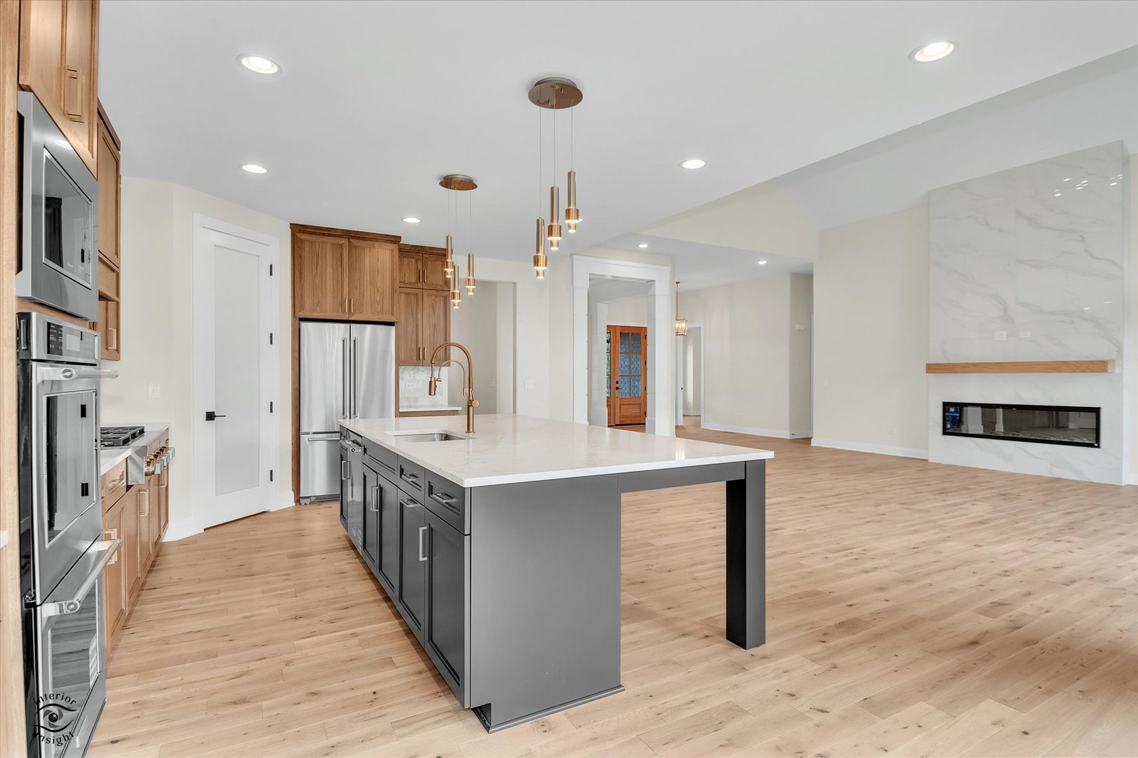 New landscaping was just added to this beautiful home with a sprinkler system! This exquisite custom ranch home is nestled in LightHouse Pointe Subdivision.. This stunning house features a covered rear porch adorned with expansive 16×8 ft sliders from the family room, ideal for seamless indoor-outdoor living. Step into a culinary haven with a custom kitchen boasting Kitchen Aid SS appliances, including a double oven, illuminated cabinets, complemented by a two-story family room graced by a stunning fireplace. Quartz countertops, tile backsplash, and a generous dinette area elevate the gourmet experience. Unwind in luxury within the master bath showcasing a freestanding tub, custom shower with 4 body sprays, and a comfortable bench. A grand custom front door welcomes you, while the oversized 3-car garage with a service door offers ample space for your vehicles and belongings. Enhancing curb appeal, the 8 ft garage doors feature glass insets and come equipped with two openers. Enjoy the area amenities, with restaurants, shopping, schools, and downtown Frankfort close by. Experience unmatched elegance and comfort in this one-of-a-kind property.