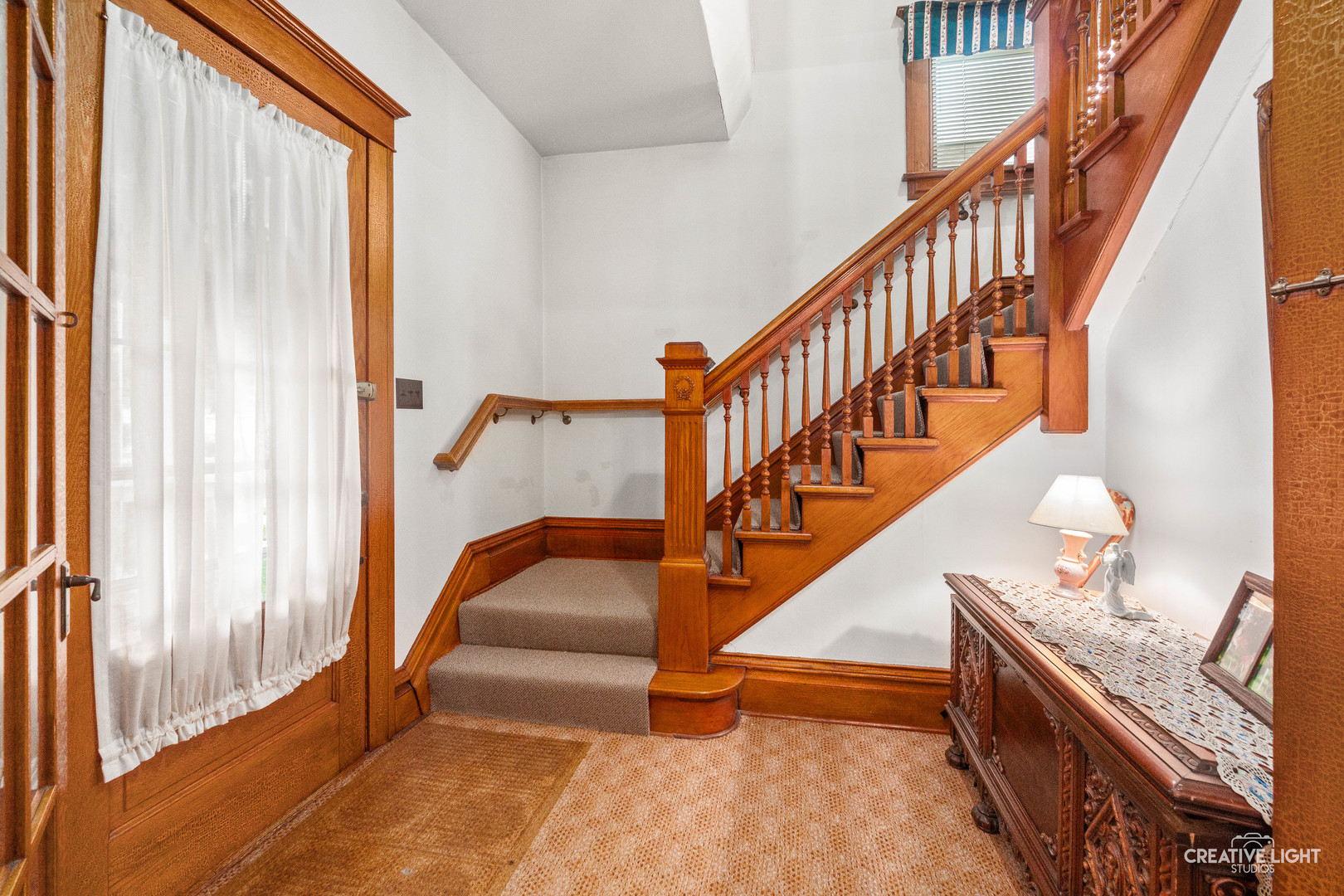 Very well kept 2 story two unit is a legal, licensed, multi family home with the city of Aurora, but could easily function as a single family home. The first floor unit has two bedrooms (one currently used as an office/den), large living room and dining room, kitchen with small table space, two pantries and a good sized bathroom. The upper unit is a one bedroom, 1 bath with large living room and dining room. The owner believes there is hardwood flooring under the carpeting on the main level. The basement is where you will find shared laundry, a single shower and a bar room. There are two water heaters and a newer boiler. Walk-up attic. This home is also listed as a two unit.