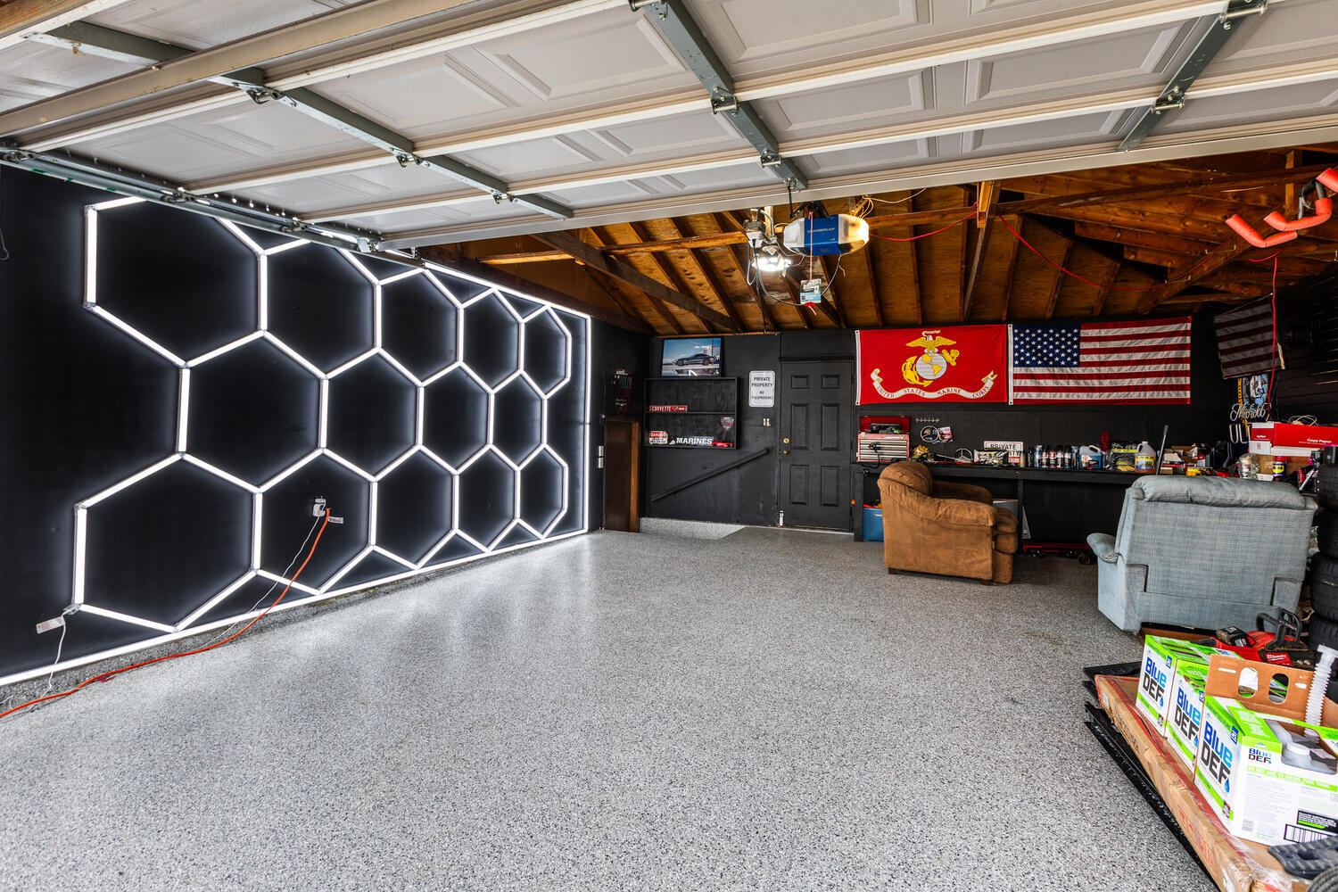 Fantastic opportunity in a desirable neighborhood! This 3-bedroom, 2- full bathroom split-level offers a gorgeous updated 2025 kitchen with modern cabinetry and new stainless-steel appliances. Main level features new contemporary flooring; master bedroom includes new plank flooring and a custom closet organizer. Major updates: roof & siding (2019), paint (2020), furnace (2018), A/C (2020), water heater (2020), Pella windows (2021), washer/dryer (2025). Garage with epoxy flooring and LED lighting, ideal for car enthusiasts, mancave or a home gym. Huge fenced yard with shed and electric. Great location, across from a park and walking distance to the elementary school. Bring your vision to complete what they started!