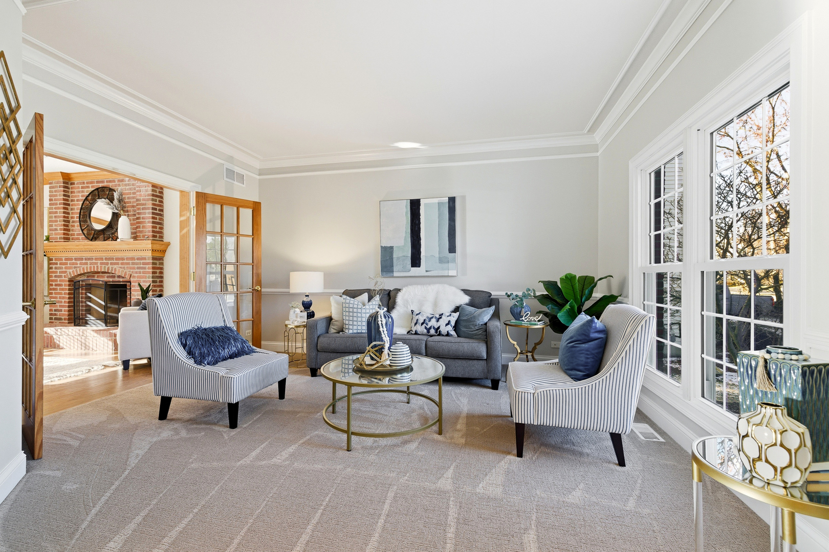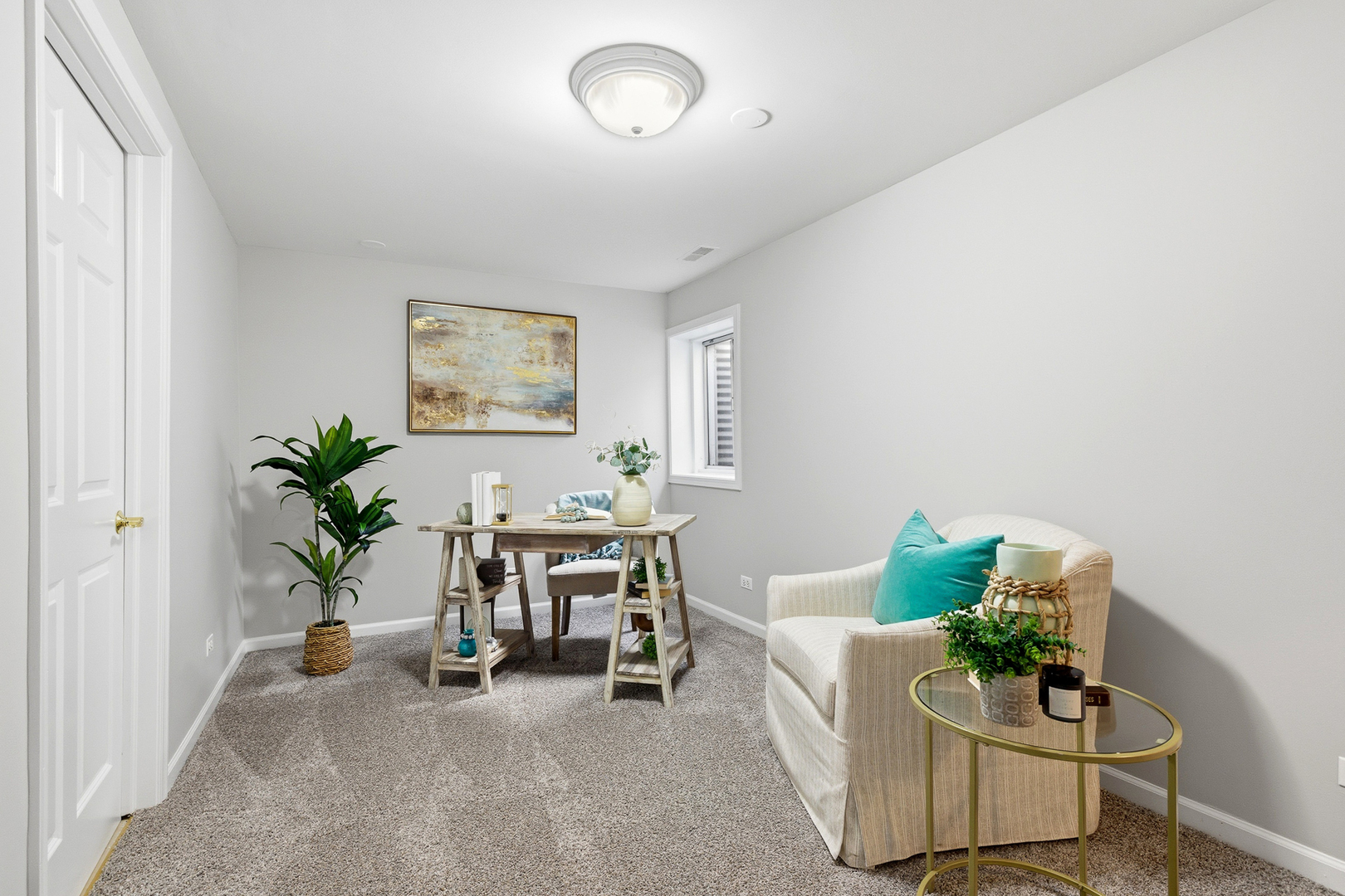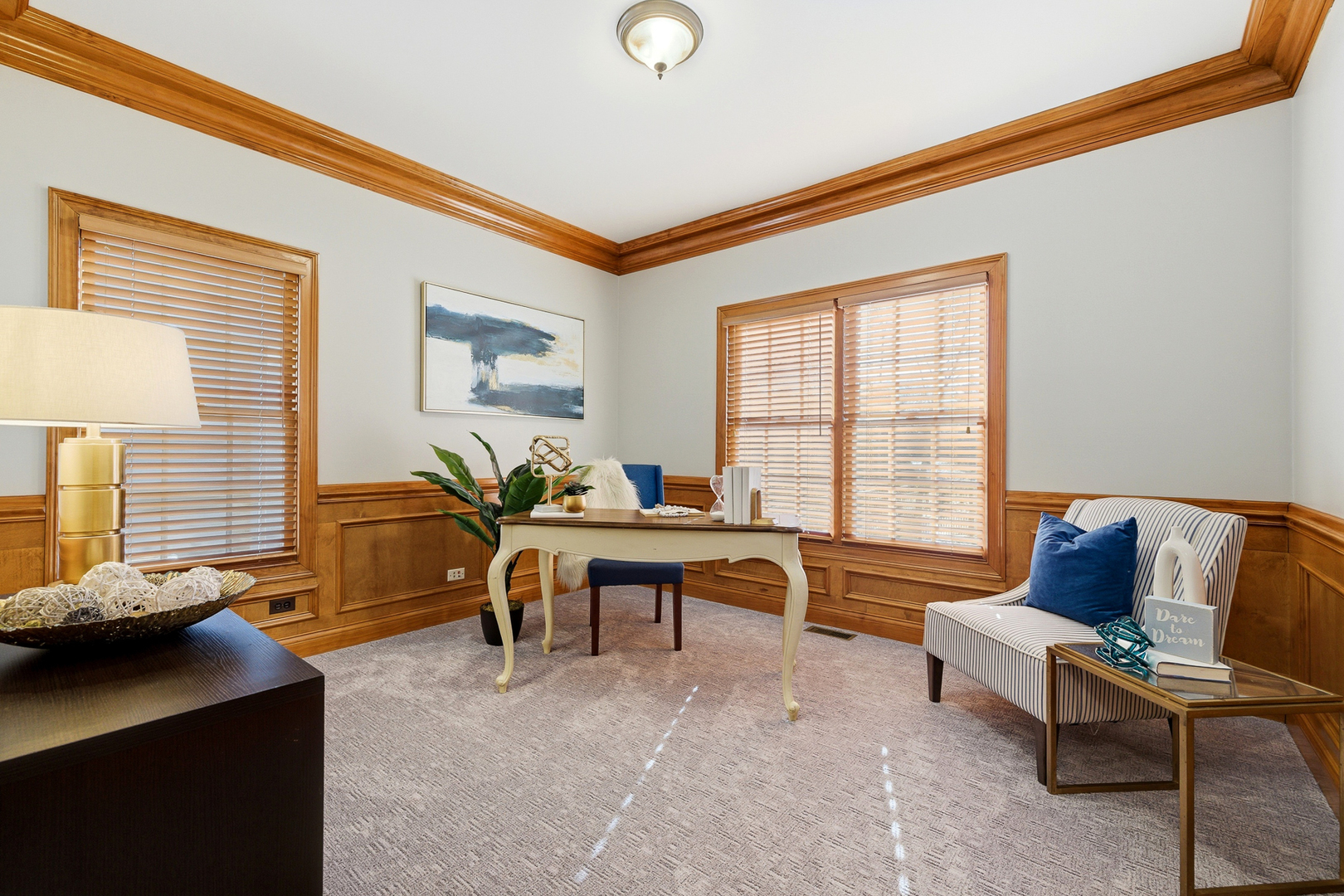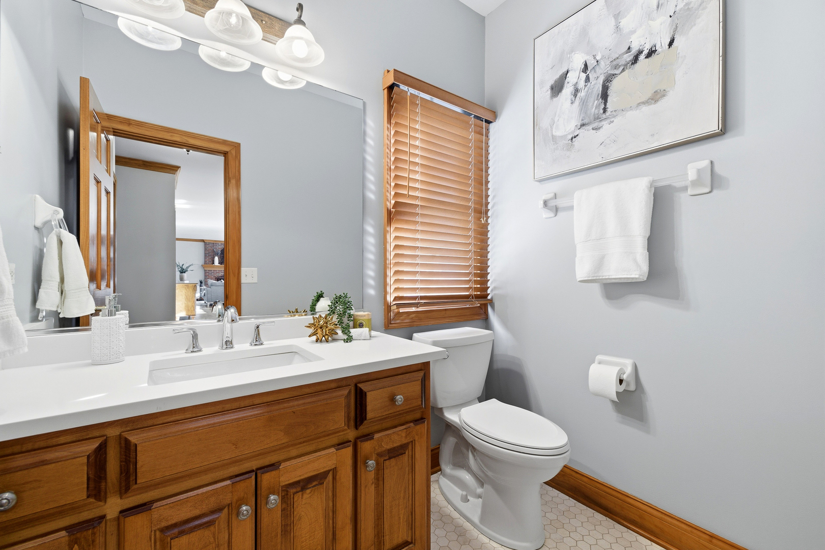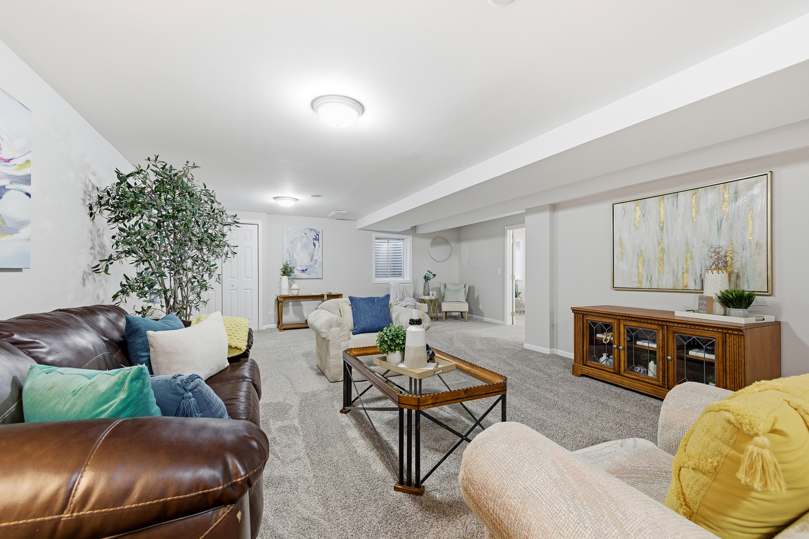 Former Builder’s Model with 4,200 Sq Ft of Finished Living Space! This stunning 6-bedroom, 2.5-bath home offers exceptional design, space, and craftsmanship throughout. The striking brick and stone exterior welcomes you into a dramatic two-story foyer accented by crown moulding. The open floor plan features hardwood floors in the foyer, kitchen, and family room, along with 9-foot ceilings and abundant natural light. The family room is anchored by a gas-start, wood-burning fireplace-perfect for cozy evenings. The expansive kitchen is a chef’s dream with 42″ solid wood cabinetry, under-cabinet lighting, granite countertops, travertine backsplash, recessed lighting, a large island with seating, dry bar area, and KitchenAid stainless steel appliances including a double oven. A generous eating area completes the space. The main level also offers a private den with new carpet, and maple wainscoting and crown moulding. First floor laundry with sink and closet. Many freshly painted rooms throughout the home. Upstairs, the luxurious primary suite impresses with a tray ceiling, an incredible 30′ walk-in closet, and a spa-like bath featuring new quartz countertops, a skylight, soaking tub, separate shower, dual vanities, and a private water closet. Three additional well-sized bedrooms-each with walk-in closets-and a hall bath with quartz counters and vaulted ceiling complete the second level. The finished basement expands the living space with new carpet, a massive recreation room, two spacious rooms ideal for bedrooms, fitness, or flex space, and a large storage area. Enjoy outdoor living in the professionally landscaped backyard featuring a brick paver patio, sprinkler system, fenced ornate garden enclosure, and additional open yard space beyond. Backyard goes all the way to the berm. Major updates include furnace and A/C (2019). Ideally located near lakes, walking paths, shopping, and dining-this home truly has it all. (Agent related to seller)