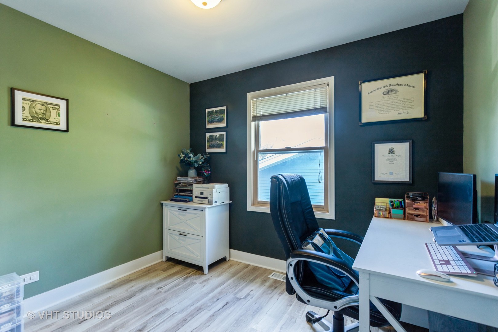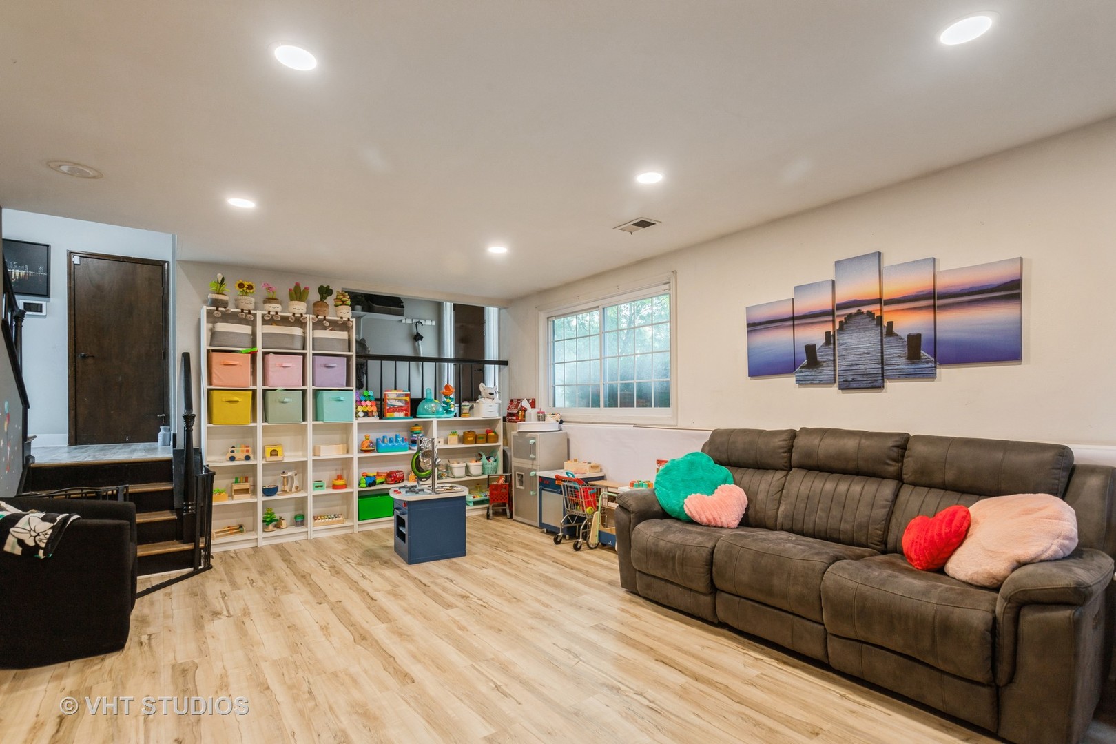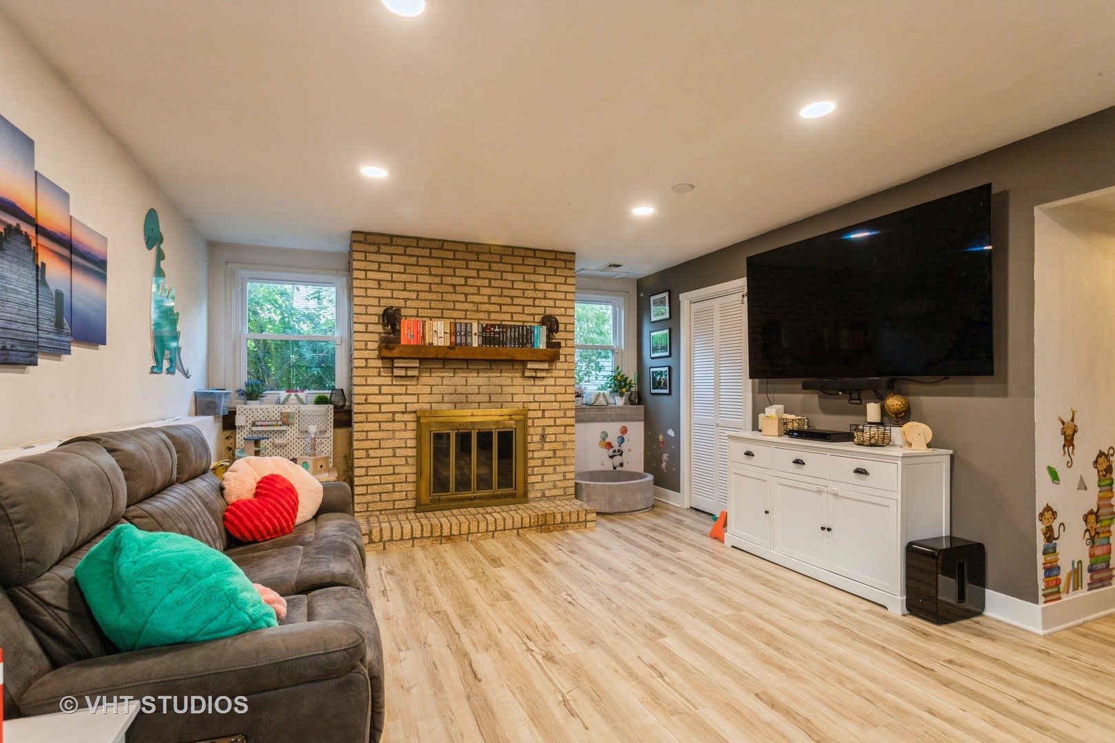This spacious home features four bedrooms and three full bathrooms. The main level has been reimagined with an open-concept kitchen and living space, with plenty of natural sunlight. The kitchen is tastefully updated with white cabinets, an island offering extra seating and storage, quartz countertops, and new stainless steel appliances. Adjacent living and dining areas provide an ideal setting for entertaining. Luxury vinyl flooring has been installed throughout this level. In addition to the primary bedroom, which includes a refreshed en-suite full bath, there are two other bedrooms and another full bath on the main level. The lower level offers a generous family room with a fireplace, a fourth bedroom, a bonus room, and a separate laundry room. Sliding doors open to a large, fenced backyard with a patio. The home also includes an attached two-car garage. Conveniently located, the property offers easy access to schools, shopping, I-55, and I-355.