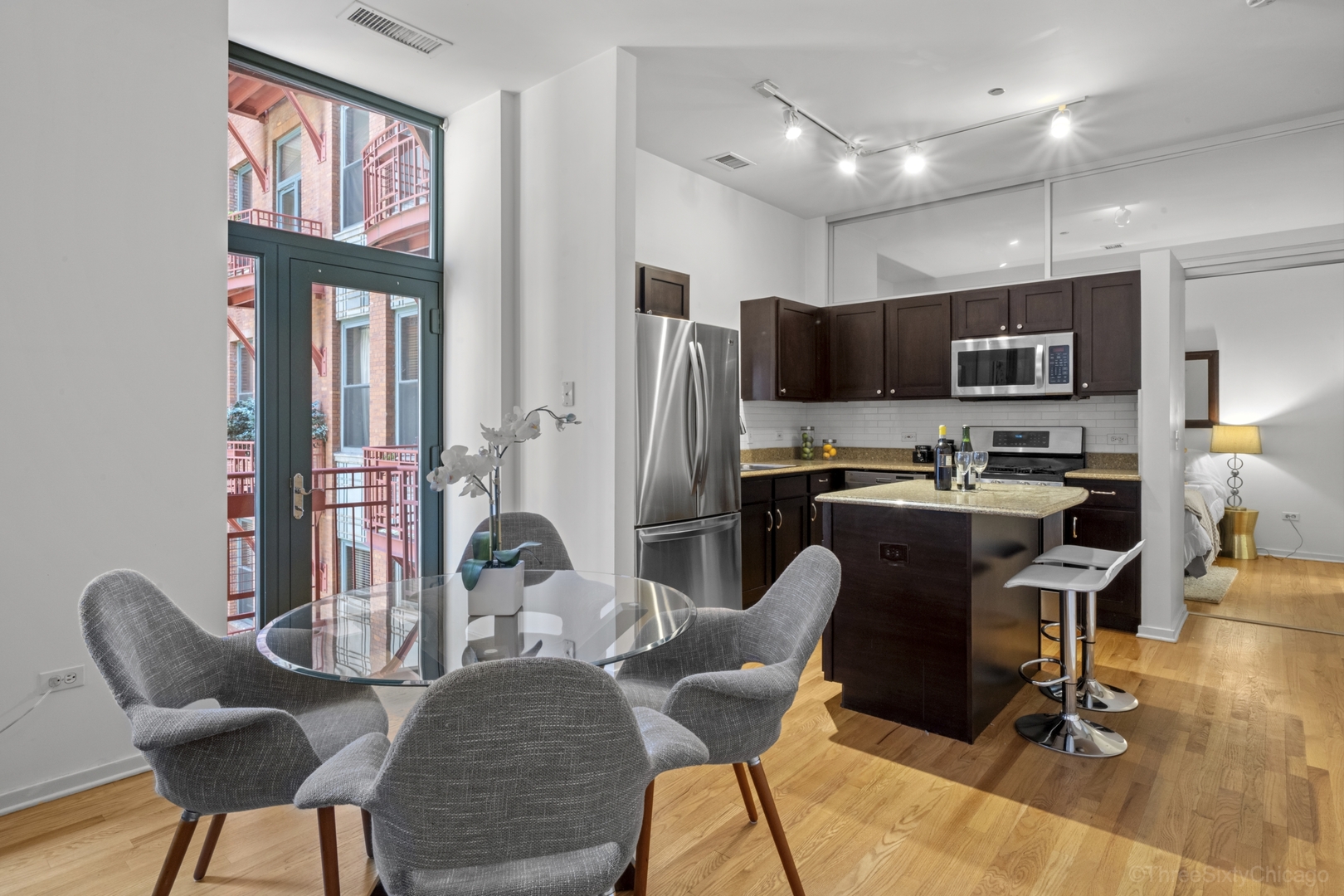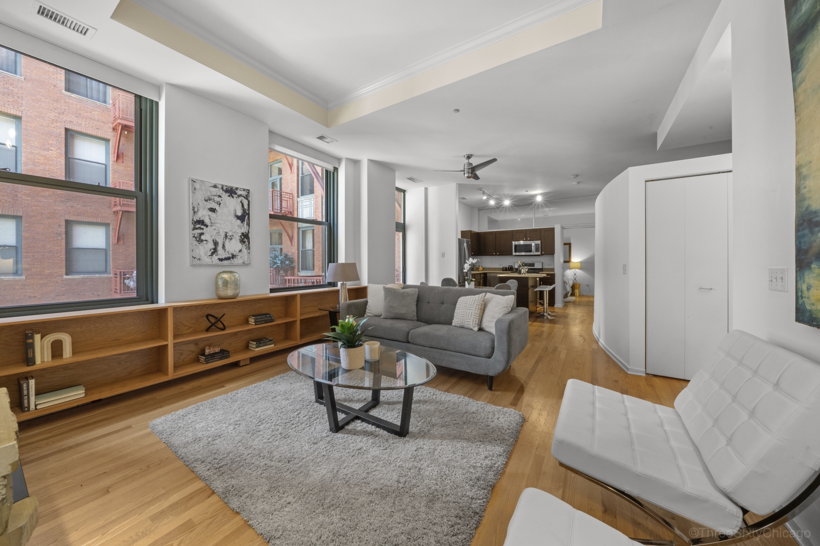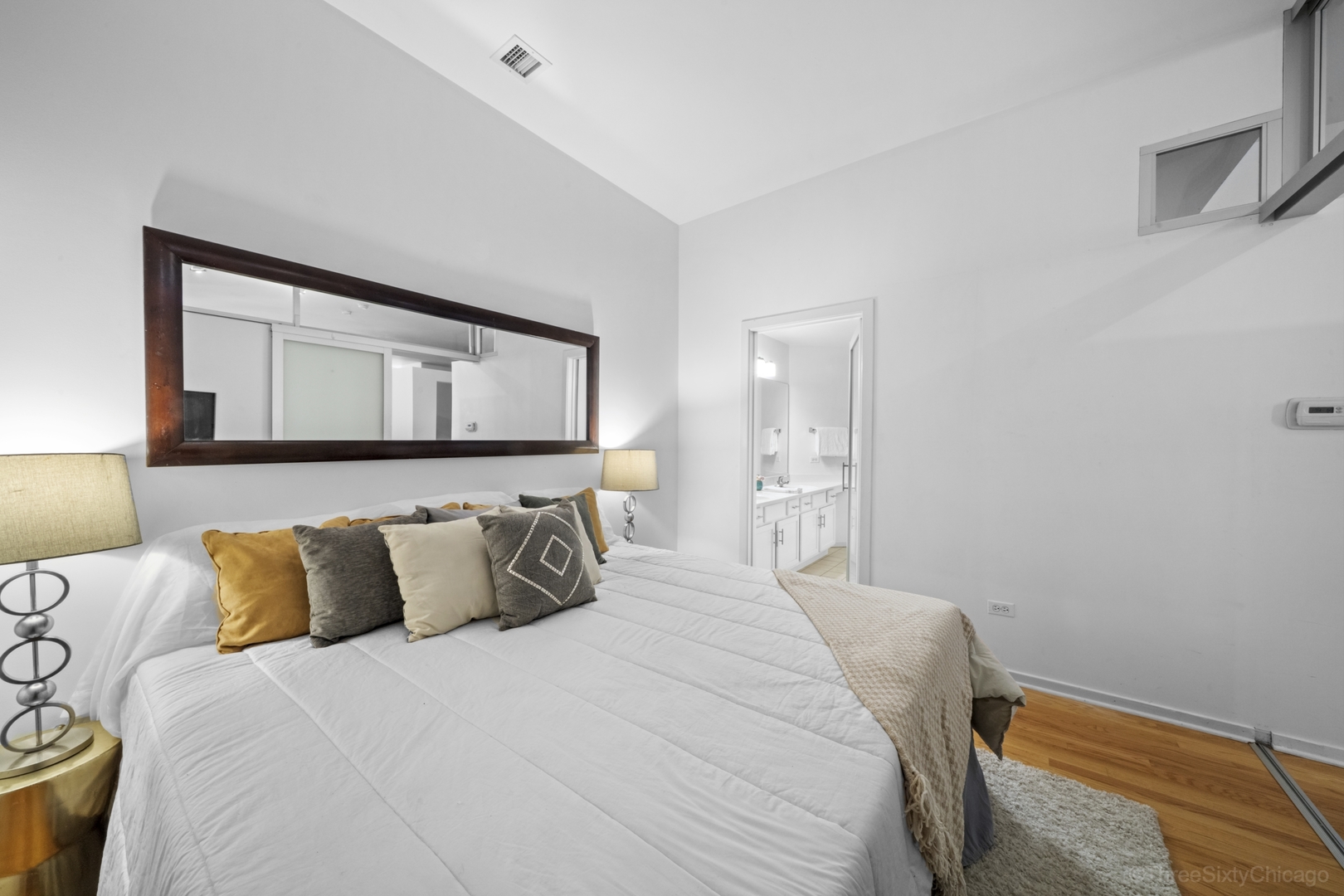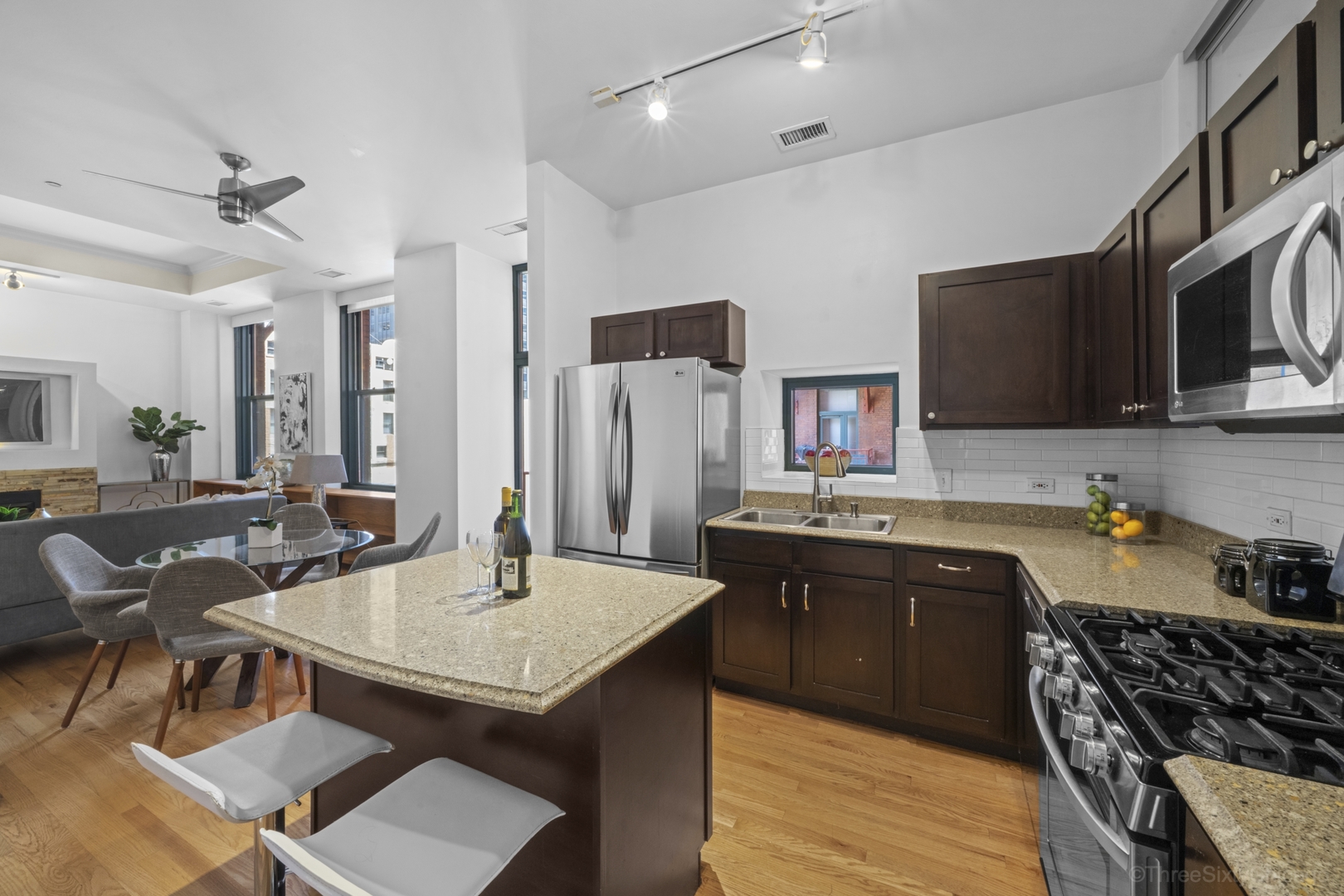 Beautiful, sunny 2 bedroom 2 bath with hardwood floors throughout. Open floor plan. Granite counters and stainless appliances in kitchen. Fireplace. South facing windows. In-unit laundry. Fully enclosed master bedroom suite. Full amenity building with 24hr door staff, roof deck, exercise room, business center. Walkable to the great city life of Chicago: restaurants, theatre, movies, libraries, shopping, parks, museums – and the great Lake. Go Home Happy!