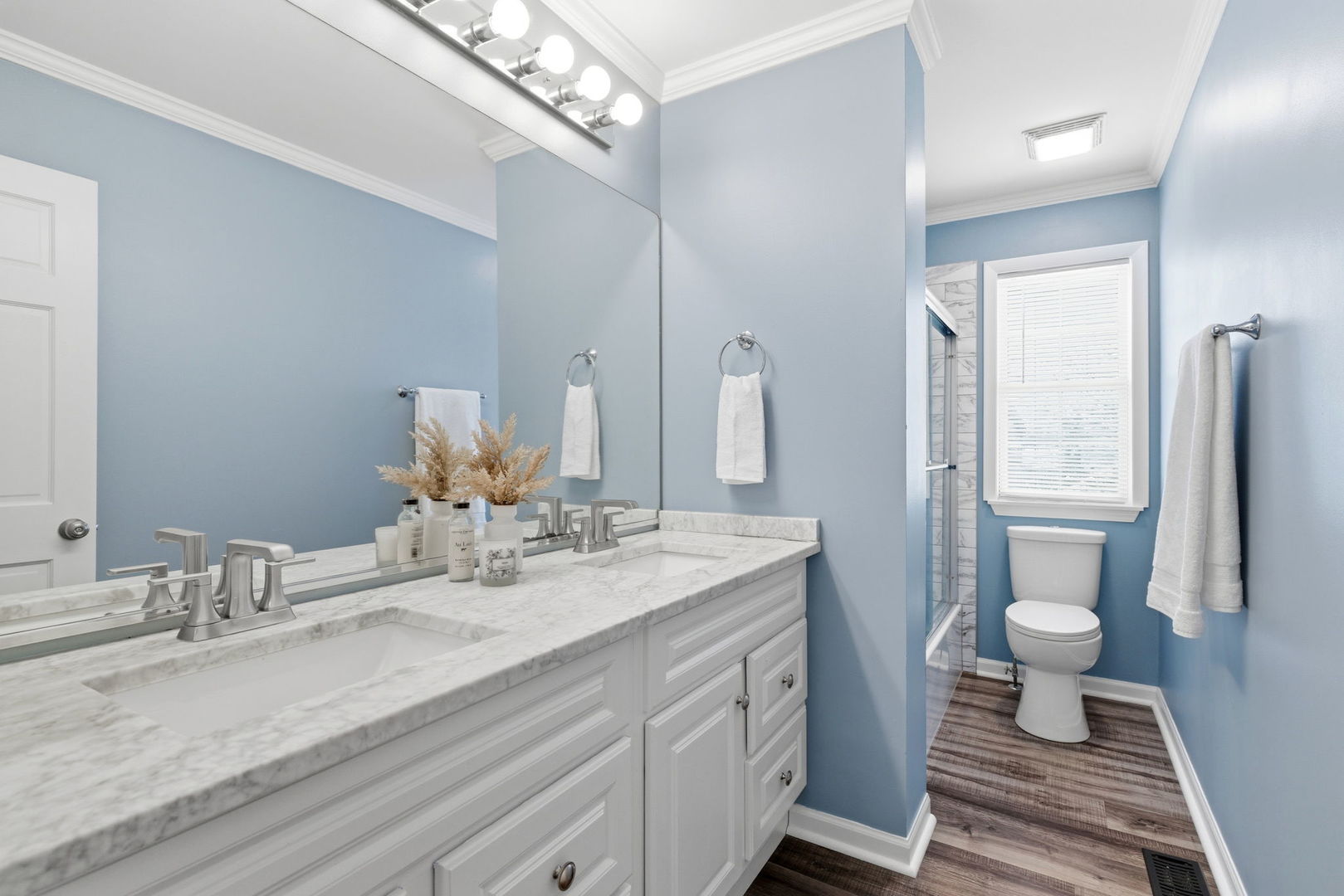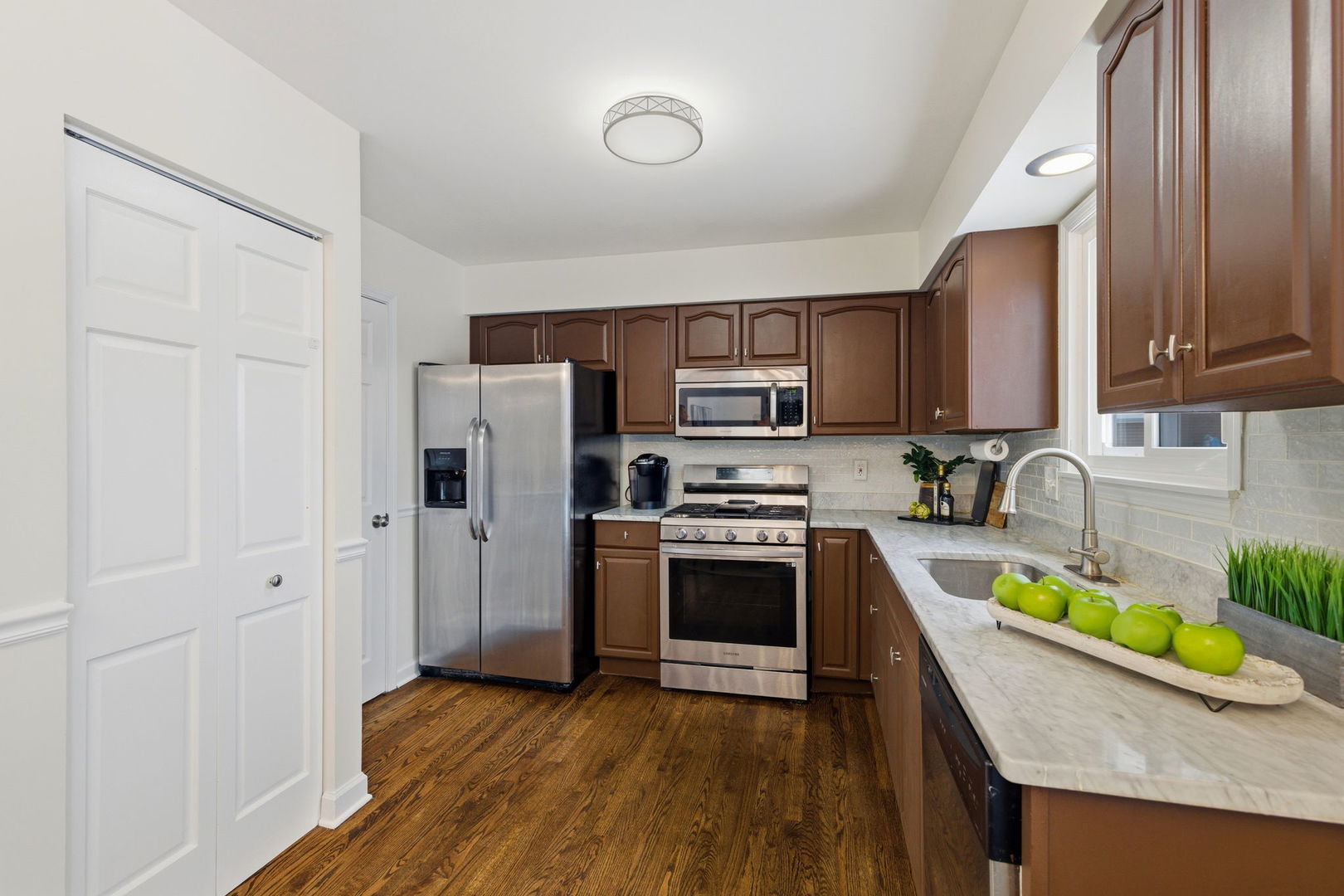 Welcome Home to a the most ideal combination of charming meets modern living. Perfectly positioned on a quiet cul-de-sac and backing to a serene open area, this absolutely gorgeous home will captivate you from the moment you arrive. Step inside to an inviting entryway with gleaming hardwood floors and generous living spaces filled with natural light. At the heart of the home is the spectacular kitchen and open-concept family room, an ideal layout for everyday living and effortless entertaining. The beautifully updated kitchen features stainless steel appliances, marble countertops, and an eat-in dining area that offers the best seat in the house for your morning coffee. Enjoy endless meals and memorable moments while taking in the picturesque views of the expansive backyard and newer patio. The family room provides a warm and comfortable gathering space, perfect for relaxation or hosting guests. The first floor is completed by a convenient half bath and an oversized laundry room. Retreat to the incredibly spacious Primary Bedroom, adjacent to a full, updated bath. Two additional generously sized bedrooms offer fabulous versatility and storage. The finished basement expands your living options even further, featuring a private workspace ideal for remote work, plus a recreation area that sets the stage for cozy movie nights and fun at-home activities. More than 2,000 sq. ft. of finished living space! Conveniently located in the desirable Lakewood Falls subdivision, you will appreciate the parks, walking paths, and close proximity to expressways, premier shopping, and an array of fabulous restaurants. This home truly checks all the boxes. Major mechanicals have been updated for peace of mind. A/C & Furnace (2025) Windows (2018*estimated date) Additional Features List available.