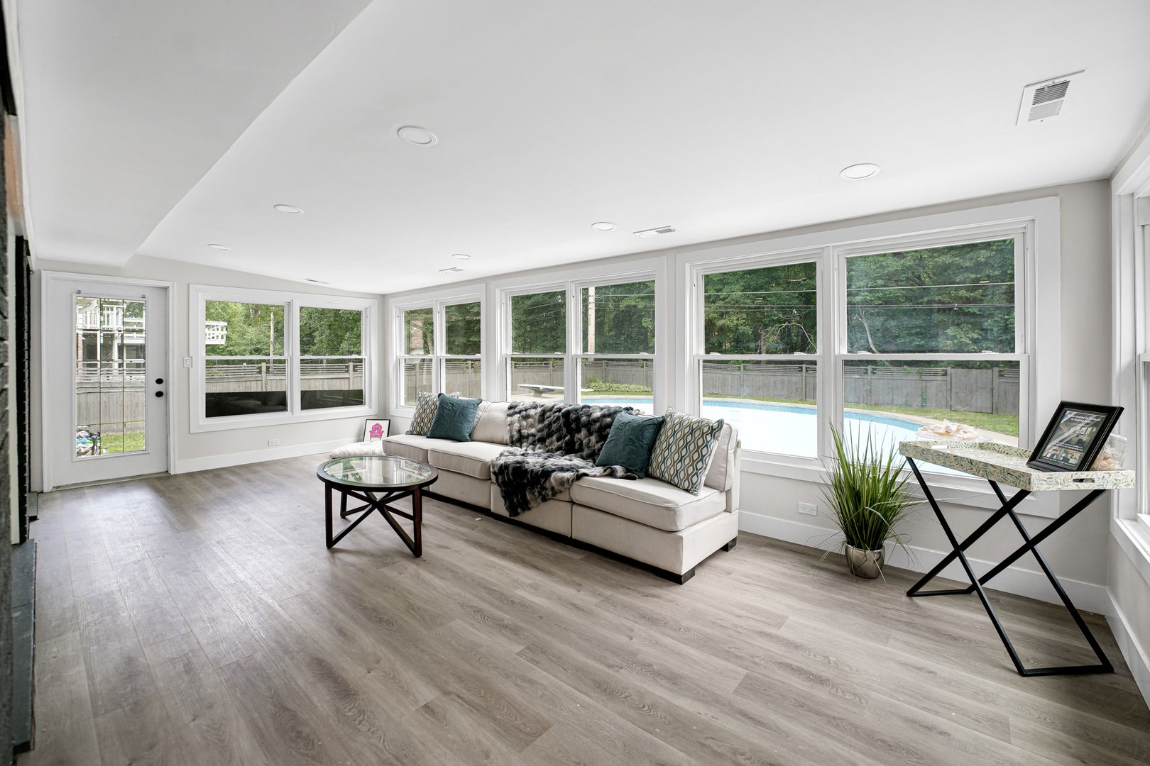 As close to new construction as you get…and on a large estate lot backing up to the forest preserve! Enjoy your large fenced in back yard with no neighbors behind you – only the occasional deer passing through…and do this while floating in your beautiful backyard pool! Perfect 4-season room with large windows facing your pool. Your floor plan is perfect with great flow for peaceful daily living and for when you’re enjoying friends and family over for a pool party! Brand new master suite has a closet that is soooo large that it doubles as lounge or exercise area within it! All finishes are luxurious and designer approved – from real hardwood floors with designer herringbone layout and custom stain to beautiful New York Ink designer Quartz countertops to high-end LG Stainless Steel Appliances. All new kitchen, baths, flooring, custom trim, doors, fixtures, hardware, appliances…AND it’s not just cosmetics – new furnaces/ACs (yes zoned HVAC!), new copper plumbing supply lines, new PVC lines, new pool pump and filter, new architectural shingle roof, new hot water heater, new insulated windows and more!
