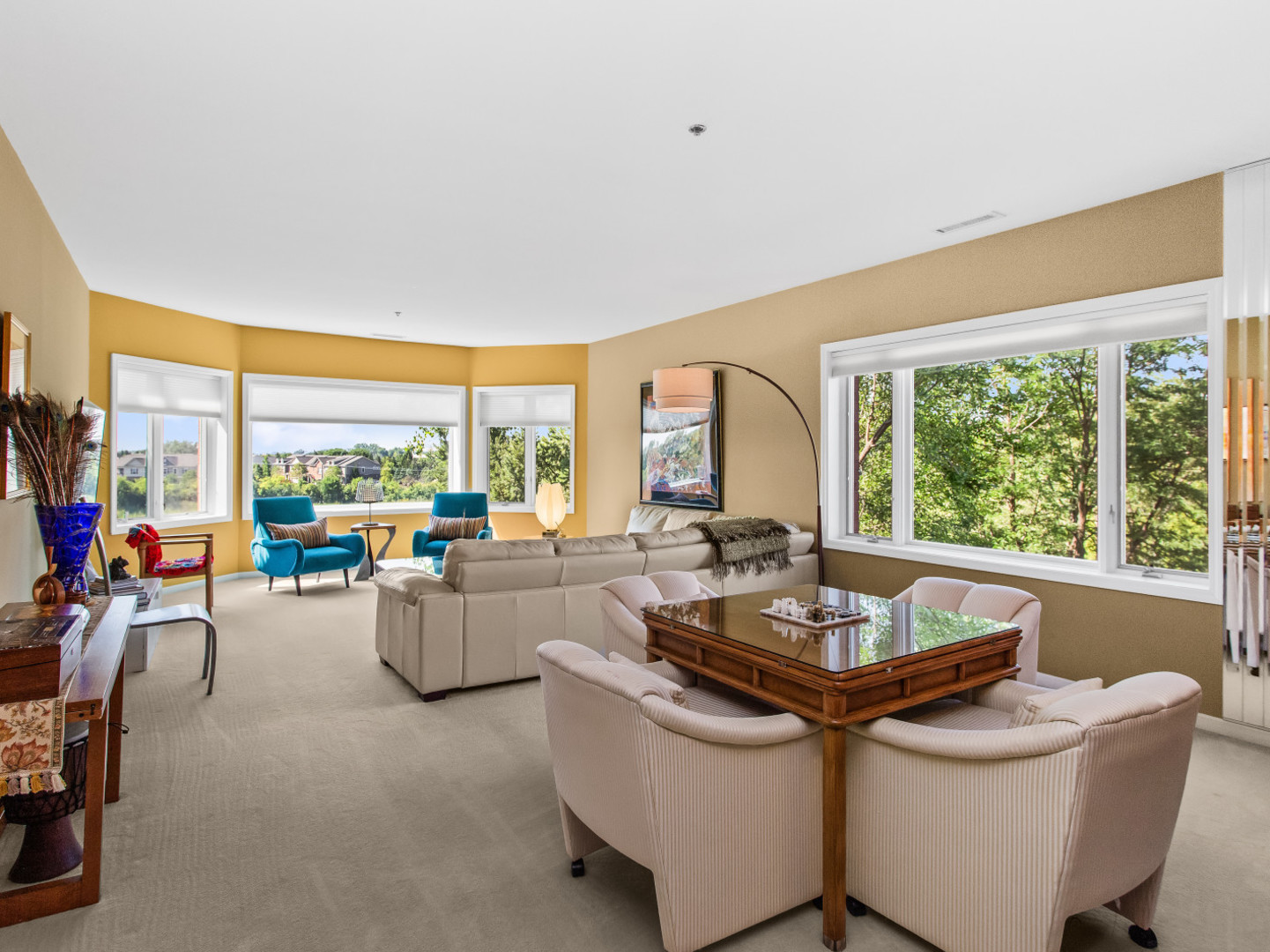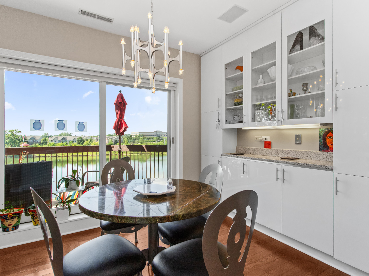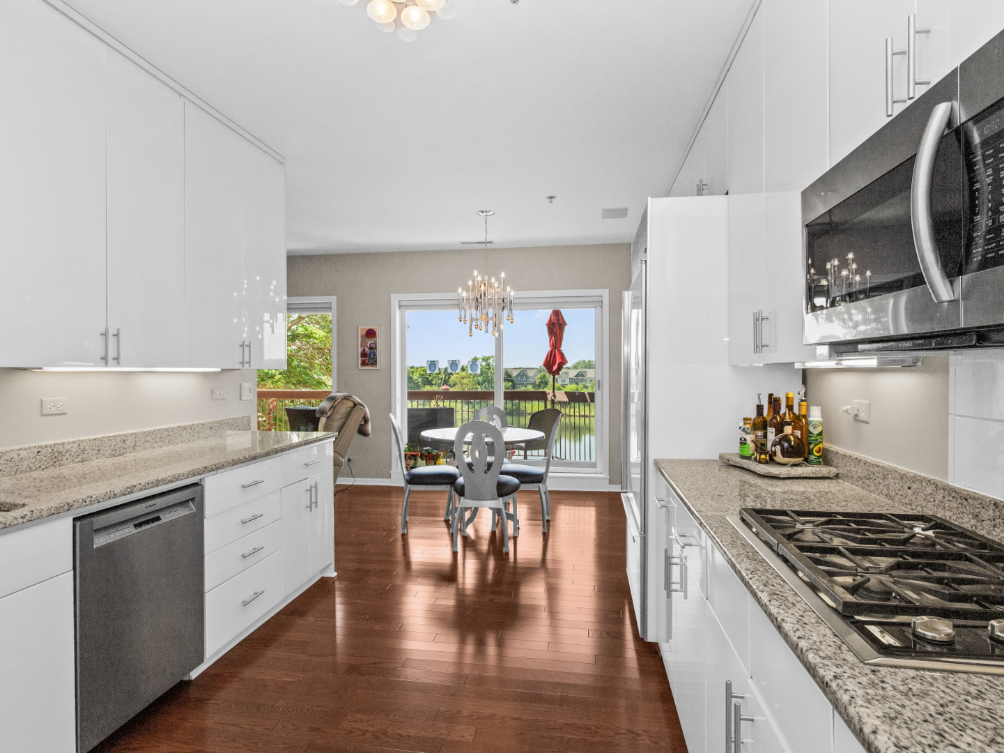 This refined 3-bedroom, 2.5-bath corner residence offers over 2,800 square feet of sophisticated living, where every room overlooks the lake and captures abundant southern light. The inviting living room, anchored by a stunning custom-built bar, is the perfect vantage point to enjoy spectacular sunsets framed by oversized windows. A gracious family room and expansive dining area provide an ideal setting for both intimate gatherings and large-scale entertaining, while a private balcony offers tranquil treetop and lake views.The chef’s kitchen is masterfully appointed with Sub-Zero refrigeration, a Bosch dishwasher, Thermador double ovens, and a Wolf gas cooktop-designed to delight the most discerning culinary enthusiast. The serene primary suite includes a spa-like bath and generous closet space, while two additional bedrooms, all finished with plush carpeting, provide versatility for guests, a home office, or a den. Additional conveniences include a full-size washer and dryer, an individual HVAC system, heated garage parking, and a same-floor storage unit.Set within Rivershire’s coveted gated community, residents enjoy an exceptional lifestyle complete with a sparkling outdoor pool, tennis courts, fitness center, and sauna. Located within award-winning District 103 and Stevenson High School-among the most highly regarded in the nation-this home combines luxury, comfort, and convenience,with parks, premier shopping, dining, and scenic walking paths just moments away.