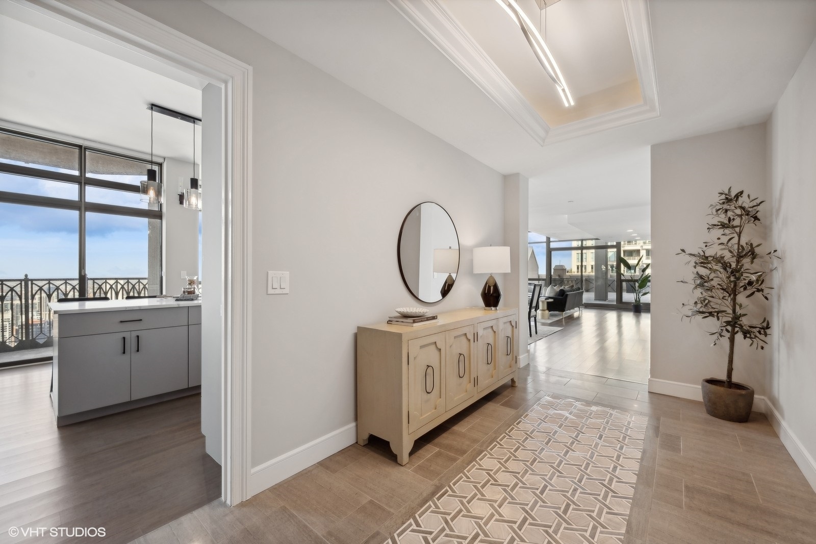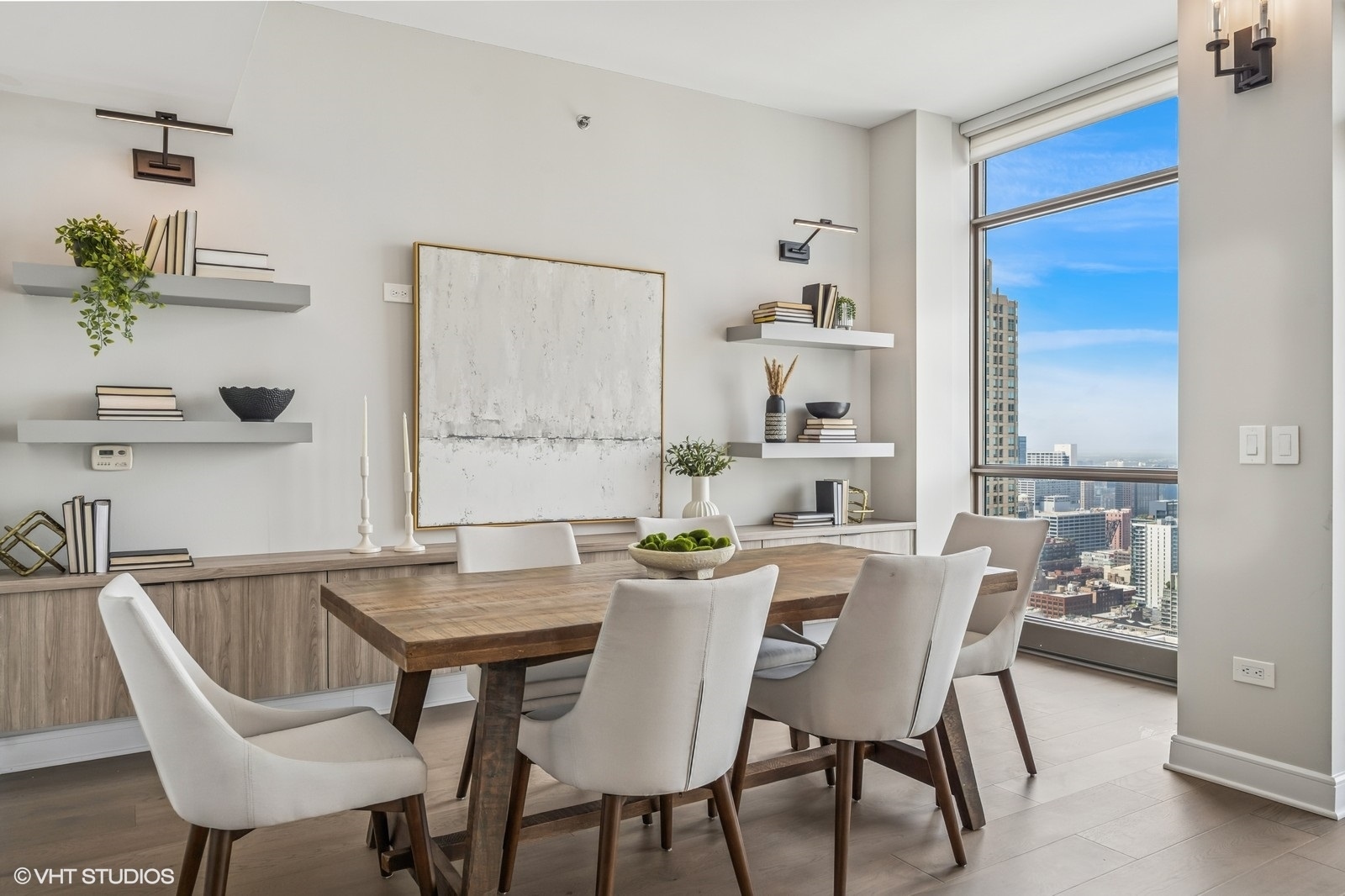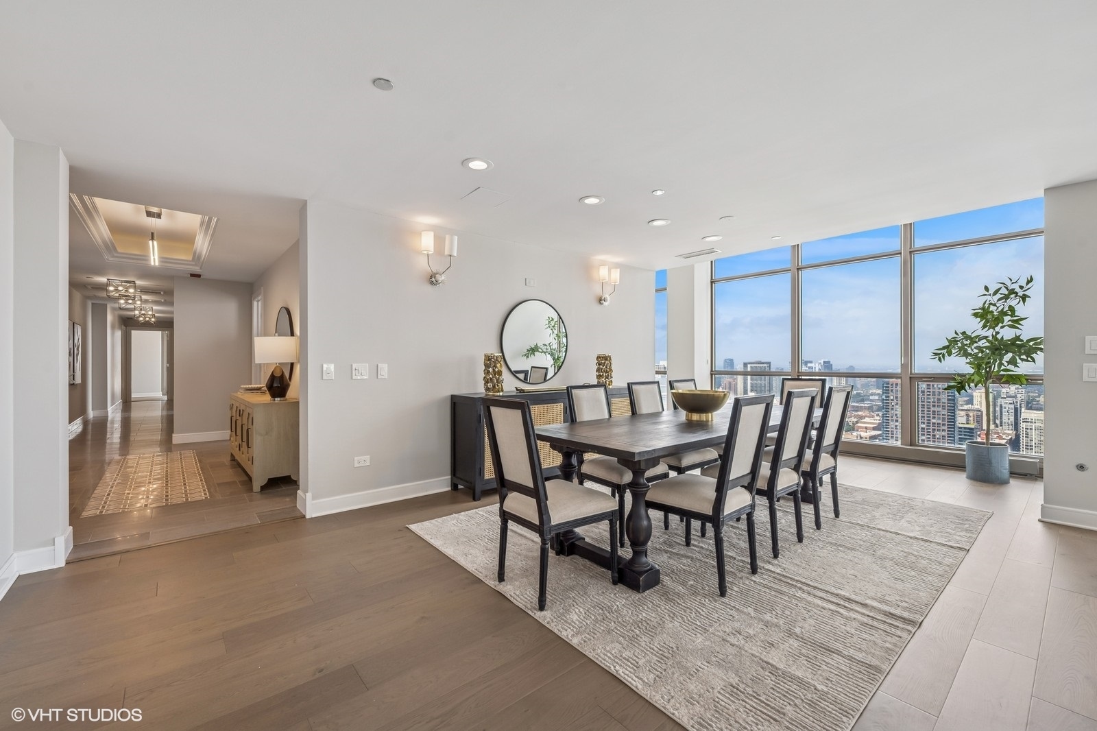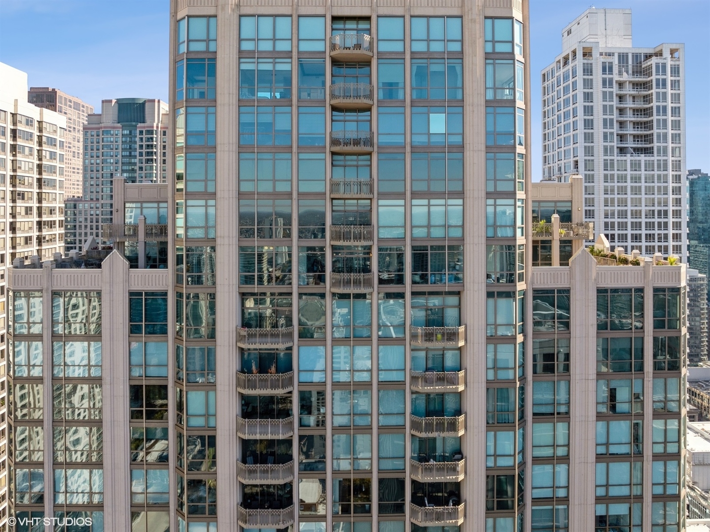 Unmatched LUXURY in the Heart of the Cathedral District. Welcome to an extraordinary PENTHOUSE RESIDENCE in the prestigious PINNACLE BUILDING-a half-floor home that blends sophisticated design with sweeping, unobstructed skyline views. This ONE-OF-A-KIND property offers TWO EXPANSIVE TERRACES AND A PRIVATE BALCONY, creating over 1,900 SQUARE FEET OF OUTDOOR LIVING SPACE, 43 floors above the city. A Grand First Impression as you enter through a gracious foyer with CUSTOM INLAY TILE and an elegant tray ceiling, setting the stage for the LIGHT FILLED, open-concept interiors. The dining and family rooms feature FLOOR-TO-CEILING WINDOWS, soaring 10′ ceilings, and a GAS FIREPLACE. From here, step onto the sprawling 41′ x 39′ MAIN TERRACE-complete with IRRIGATION AND ELECTRICAL-ideal for an elevated garden retreat, private entertaining, or simply taking in the panoramic views. The PRIMARY BEDROOM is a sanctuary, featuring two walk-in closets and a spa-inspired ensuite with radiant heated floors, a heated towel rack, soaking tub, and walk-in shower. Direct access to the main terrace allows you to start and end your day surrounded by breathtaking views. The designer CHEF KITCHEN is equipped with sleek light-gray cabinetry, quartz countertops, and a large center island. HIGH-END APPLIANCES include a Wolf oven, Sub-Zero refrigerator, and Miele dishwasher. A sunny breakfast room and beverage bar with wine fridge provide casual elegance, while the SEMI-CIRCLE BALCONY offers a serene spot for morning coffee above the city. Two additional ensuite bedrooms, each with 10′ ceilings and stunning views, ensure privacy and comfort. One suite opens directly to the 21′ x 18′ SECOND TERRACE, perfect for hosting guests or creating a private outdoor escape. Living at the Pinnacle means enjoying a wealth of world-class amenities. Residents have access to an indoor pool and whirlpool, fully renovated cardio and strength-training gyms, and relaxing steam and sauna rooms. An expansive outdoor sundeck is equipped with grills and a fire pit, perfect for gatherings under the city lights. For pet lovers, there’s a PRIVATE DOG WALK AND PLAY AREA, while entertainment options include a theater room, a hospitality suite with terrace, and private wine lockers. Additional conveniences include bike storage, a personal storage room, and two deeded parking spaces, with the option to purchase a third. PRIME LOCATION-Just blocks from Northwestern Memorial Hospital, Northwestern Law & Medical School, Lurie Children’s Hospital, Michigan Avenue shopping, Ohio Street Beach, and acclaimed dining. This penthouse delivers UNPARALLELED INDOOR-OUTDOOR LIVING in one of the city’s most sought-after addresses. Opportunities like this are rare-experience the Pinnacle lifestyle today.