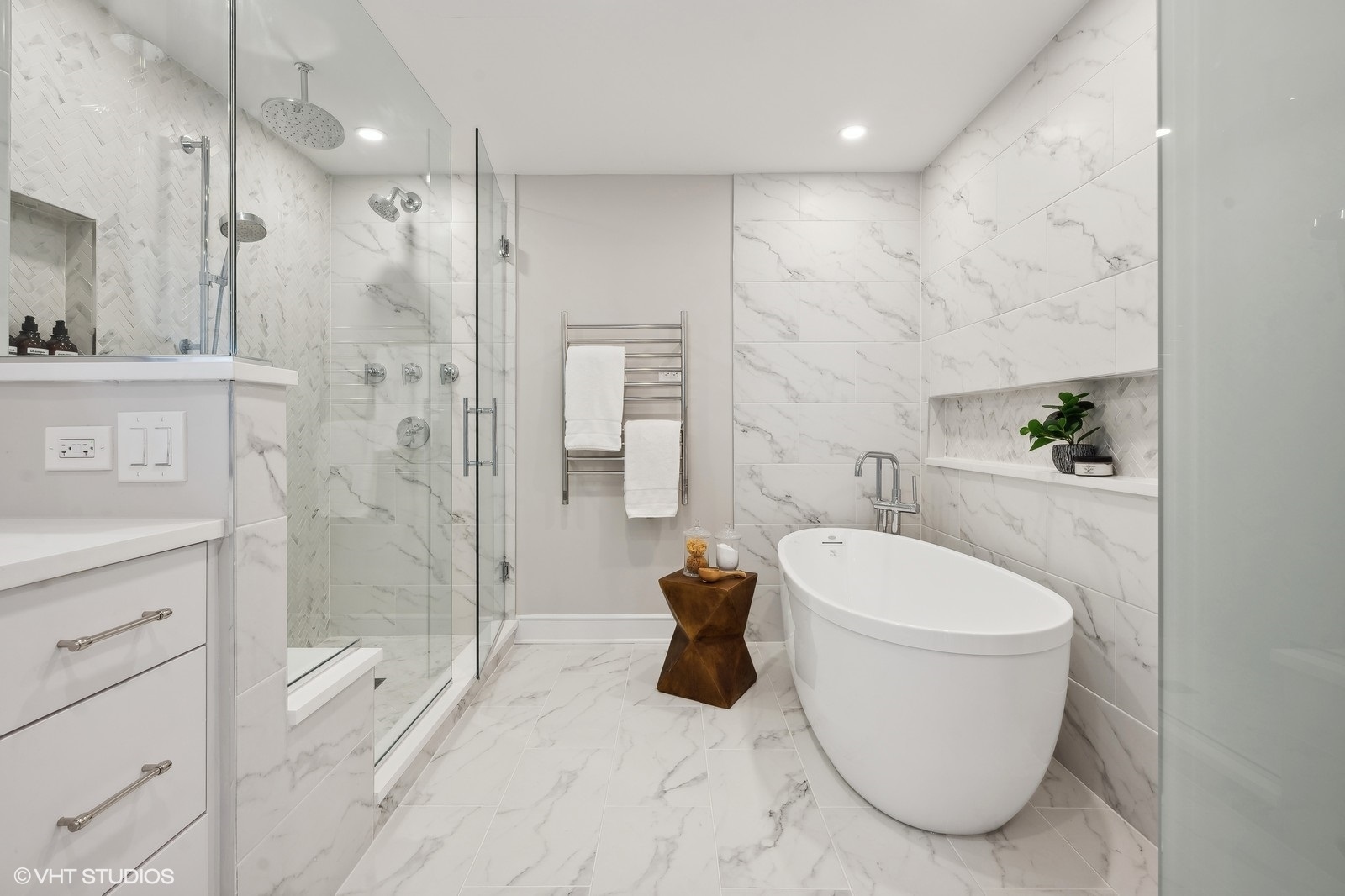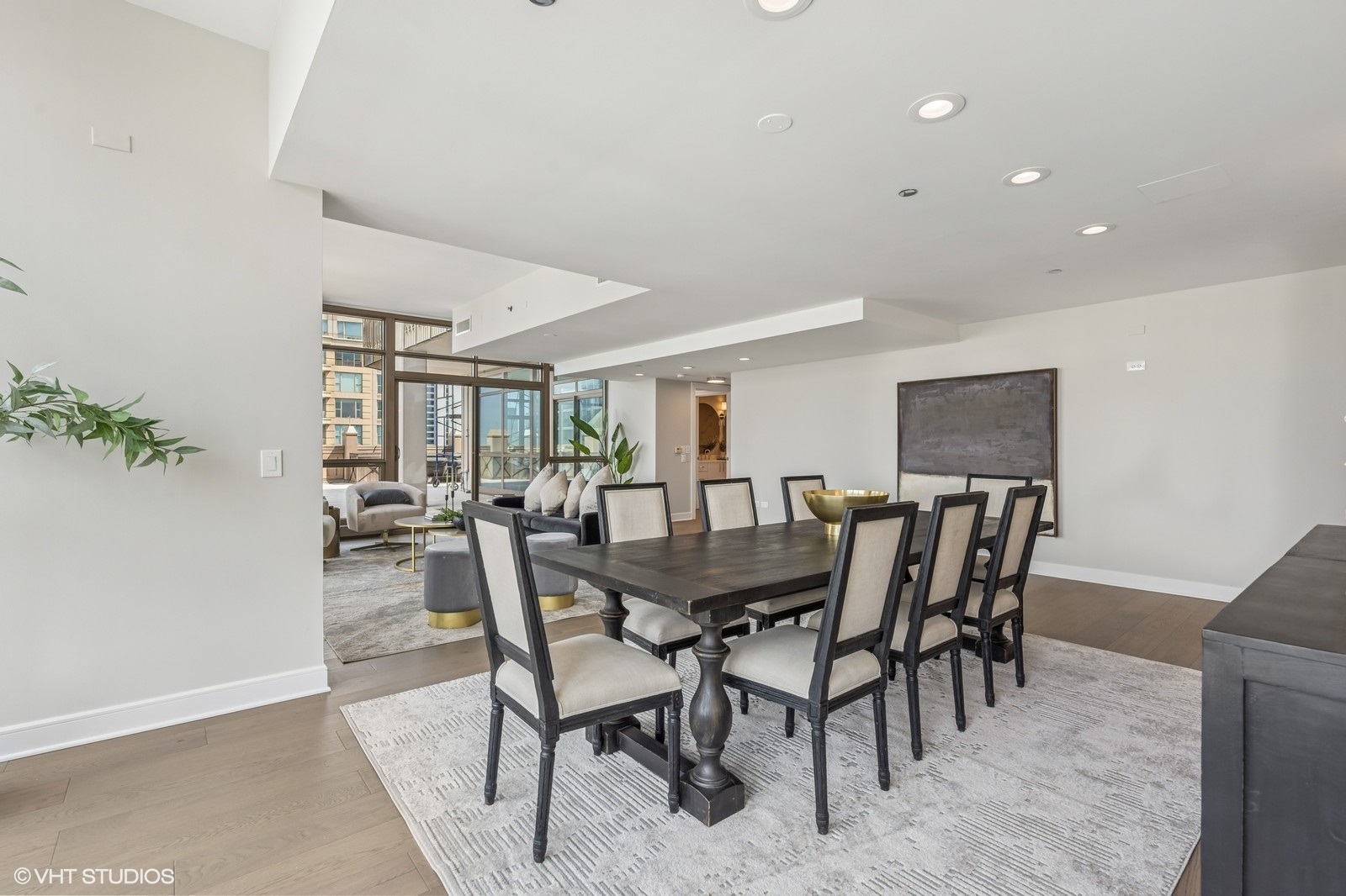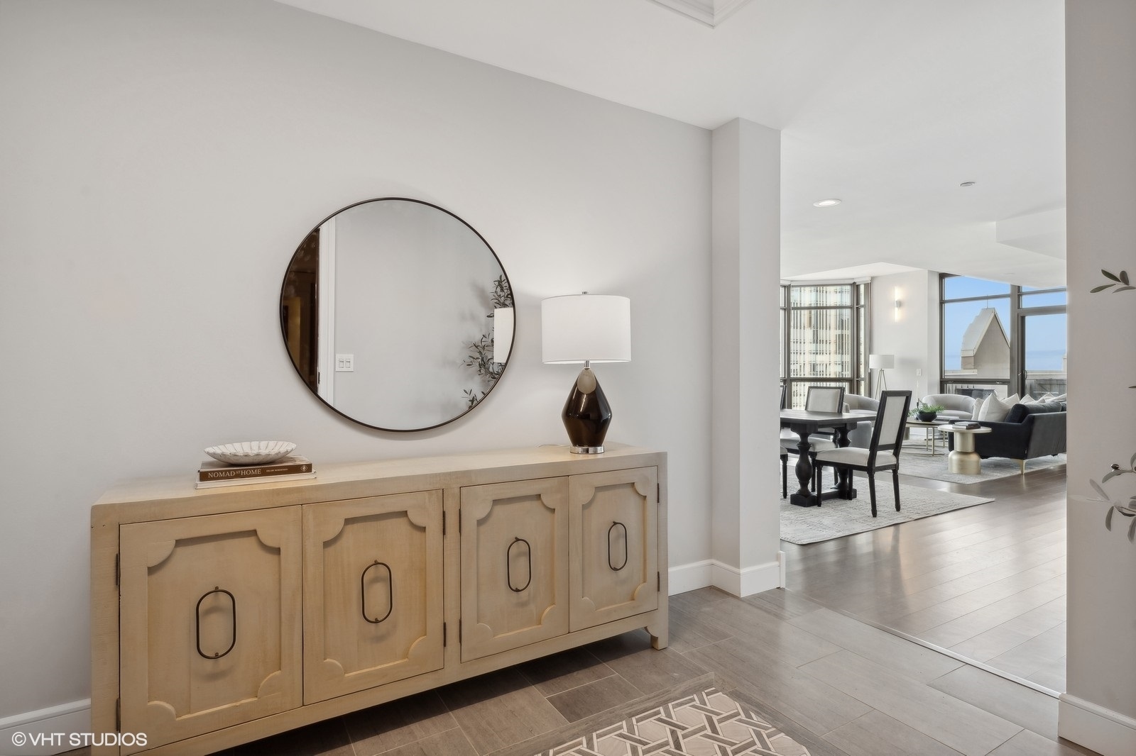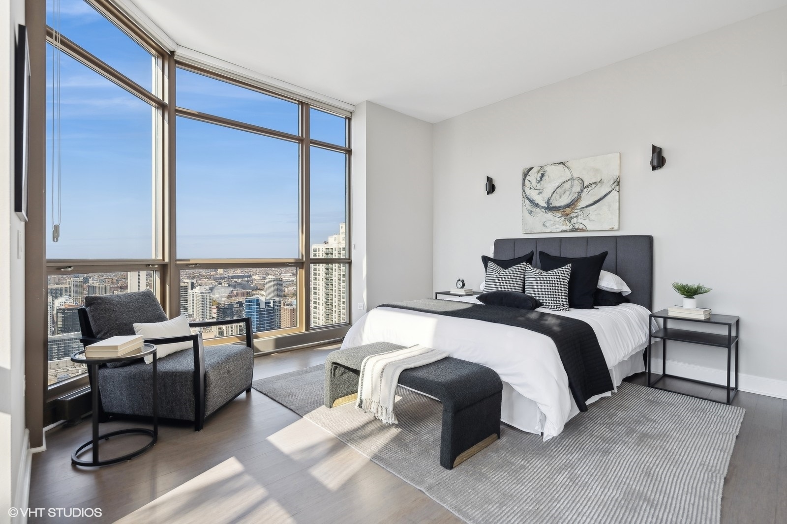 Unmatched LUXURY in the Heart of the Cathedral District. Welcome to an extraordinary PENTHOUSE RESIDENCE in the prestigious PINNACLE BUILDING-a half-floor home that blends sophisticated design with sweeping, unobstructed skyline views. This ONE-OF-A-KIND property offers TWO EXPANSIVE TERRACES AND A PRIVATE BALCONY, creating over 1,900 SQUARE FEET OF OUTDOOR LIVING SPACE, 43 floors above the city. A Grand First Impression as you enter through a gracious foyer with CUSTOM INLAY TILE and an elegant tray ceiling, setting the stage for the LIGHT FILLED, open-concept interiors. The dining and family rooms feature FLOOR-TO-CEILING WINDOWS, soaring 10′ ceilings, and a GAS FIREPLACE. From here, step onto the sprawling 41′ x 39′ MAIN TERRACE-complete with IRRIGATION AND ELECTRICAL-ideal for an elevated garden retreat, private entertaining, or simply taking in the panoramic views. The PRIMARY BEDROOM is a sanctuary, featuring two walk-in closets and a spa-inspired ensuite with radiant heated floors, a heated towel rack, soaking tub, and walk-in shower. Direct access to the main terrace allows you to start and end your day surrounded by breathtaking views. The designer CHEF KITCHEN is equipped with sleek light-gray cabinetry, quartz countertops, and a large center island. HIGH-END APPLIANCES include a Wolf oven, Sub-Zero refrigerator, and Miele dishwasher. A sunny breakfast room and beverage bar with wine fridge provide casual elegance, while the SEMI-CIRCLE BALCONY offers a serene spot for morning coffee above the city. Two additional ensuite bedrooms, each with 10′ ceilings and stunning views, ensure privacy and comfort. One suite opens directly to the 21′ x 18′ SECOND TERRACE, perfect for hosting guests or creating a private outdoor escape. Living at the Pinnacle means enjoying a wealth of world-class amenities. Residents have access to an indoor pool and whirlpool, fully renovated cardio and strength-training gyms, and relaxing steam and sauna rooms. An expansive outdoor sundeck is equipped with grills and a fire pit, perfect for gatherings under the city lights. For pet lovers, there’s a PRIVATE DOG WALK AND PLAY AREA, while entertainment options include a theater room, a hospitality suite with terrace, and private wine lockers. Additional conveniences include bike storage, a personal storage room, and two deeded parking spaces, with the option to purchase a third. PRIME LOCATION-Just blocks from Northwestern Memorial Hospital, Northwestern Law & Medical School, Lurie Children’s Hospital, Michigan Avenue shopping, Ohio Street Beach, and acclaimed dining. This penthouse delivers UNPARALLELED INDOOR-OUTDOOR LIVING in one of the city’s most sought-after addresses. Opportunities like this are rare-experience the Pinnacle lifestyle today.