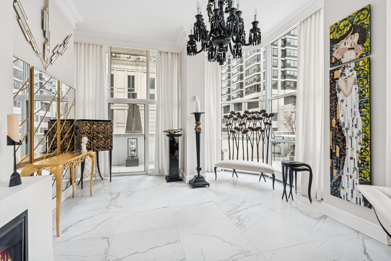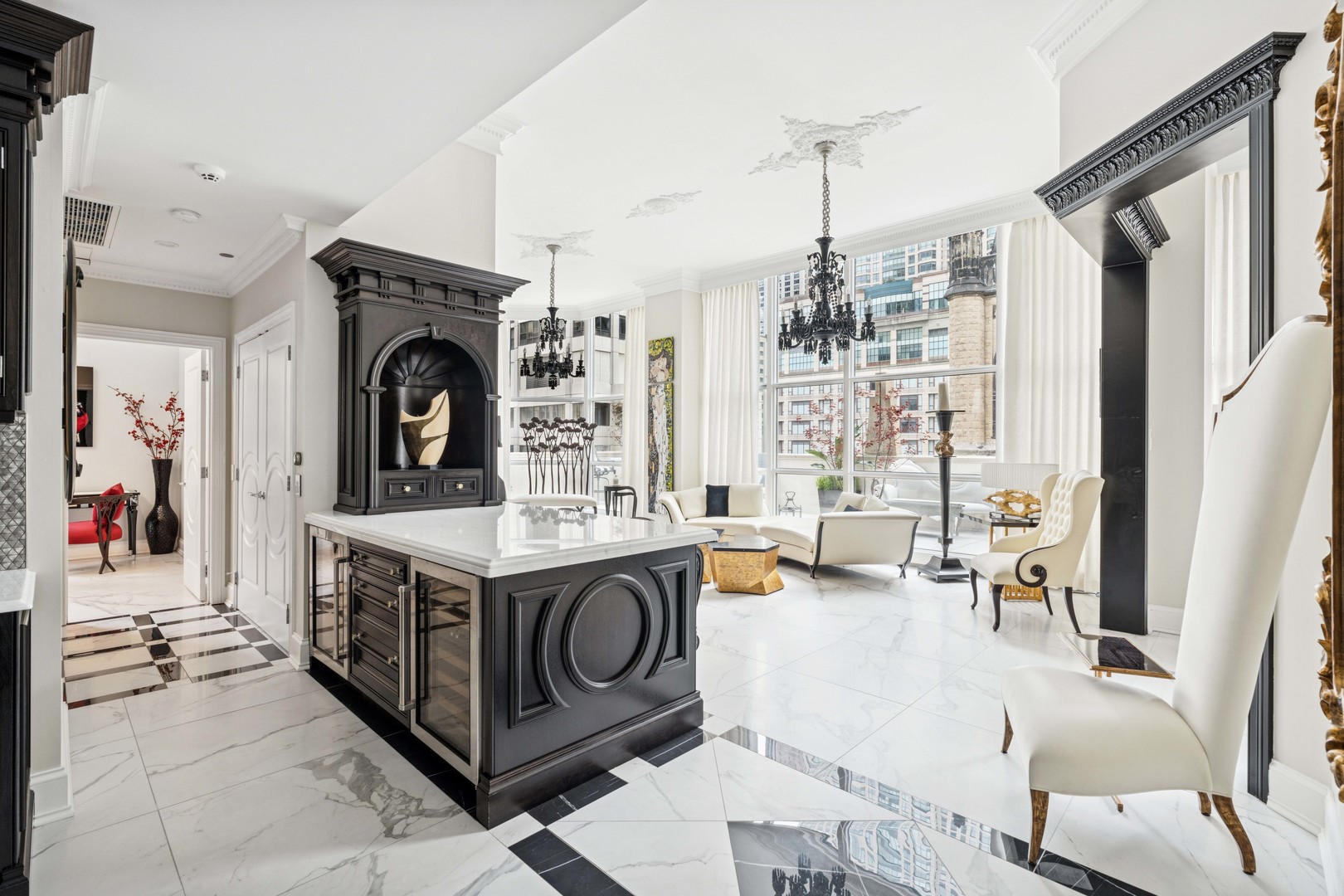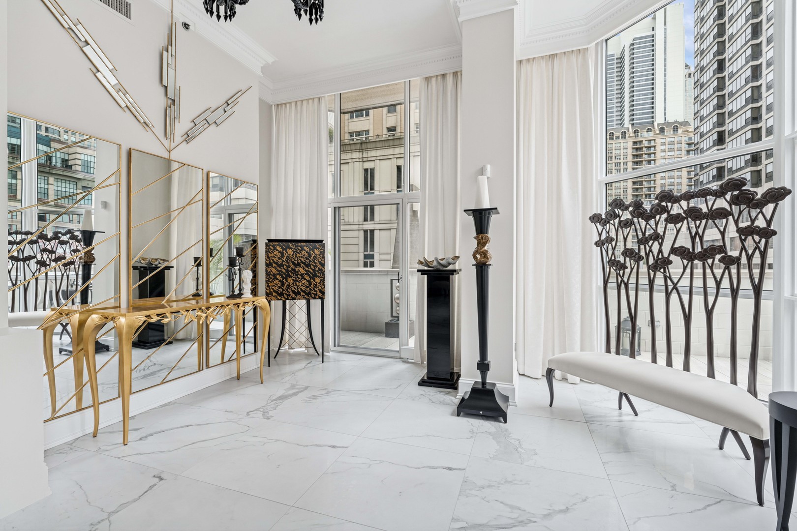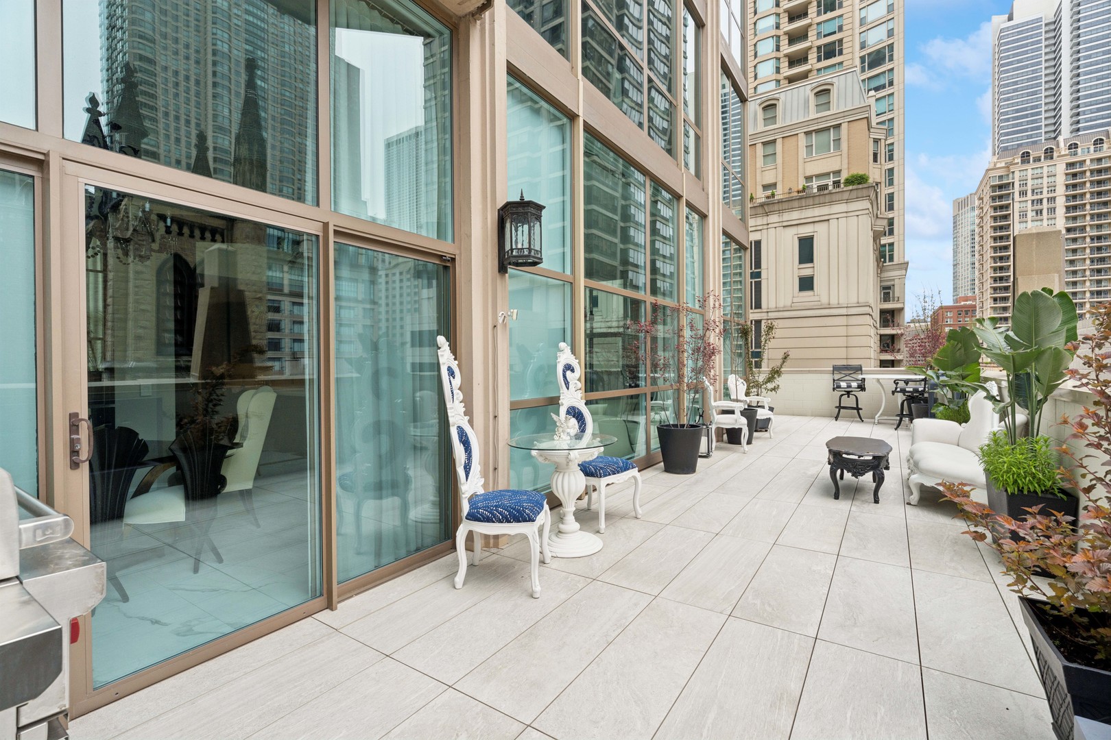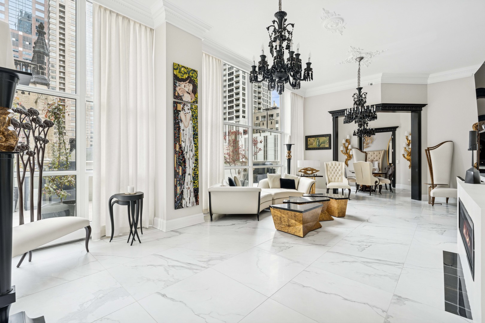 When Parisian charm meets New York Edge in the heart of Chicago – Unlike Anything You’ve Seen Before!!! Rarely available luxury 2 bed | 2 bath residence in the ICONIC Pinnacle building featuring a PRIVATE wraparound balcony. This UNBELIEVABLE 1770 sqft home with soaring 13″ ceilings offers a desired open kitchen/living room/dining room layout with exquisite timeless finishes, a meticulously Parisian-inspired ceiling medallion and breathtaking crown molding, elegant French-style doors with custom boiserie detailing, oversized floor-to-ceiling windows, imported Monte Carlo tiles throughout and Lutron shades in every room. The ENORMOUS private terrace with stunning views features a Parisian/Italian inspired design, and makes this ONE-OF-A-KIND home even more perfect for indoor/outdoor entertaining. Breathtaking chef’s kitchen boasts top of the line Subzero and Wolf appliances, custom built CEILING HEIGHT Clive cabinetry, expansive DUAL ISLANDS with double-thick Cove Dupont-edge countertops, artisan-crafted backsplash, two beverage fridge and generous storage. The main living area includes a cozy fireplace and a designated dining space ideal for both relaxing and hosting. The OVERSIZED luxurious primary suite, showcasing the same exclusive finishes offering a dedicated seating area complete with Lavish spa-like primary bathroom with curated monochrome tilework, dual vanity, massive rain shower, separate SHOW-STOPPING soaking tub, ample storage. An additional spacious bedroom and a second bathroom are thoughtfully designed with the same cohesive and elevated finishes. World class 5-star amenities at the Pinnacle include 24-hour door staff, onsite manager, concierge services, indoor pool, state-of-the-art gym, steam/sauna facilities, outdoor sundeck and grills, private dog walk and play area, theater room, hospitality suite with terrace, and wine locker. Just steps from Magnificent Mile, upscale shopping, the best restaurants Chicago has to offer, entertainment, cultural attractions, cafes, Lake Michigan, Whole Foods, Lifetime Fitness and so much more. Luxurious living at its best! TWO PREMIUM SIDE BY SIDE PARKING available for an additional $50K per space.
