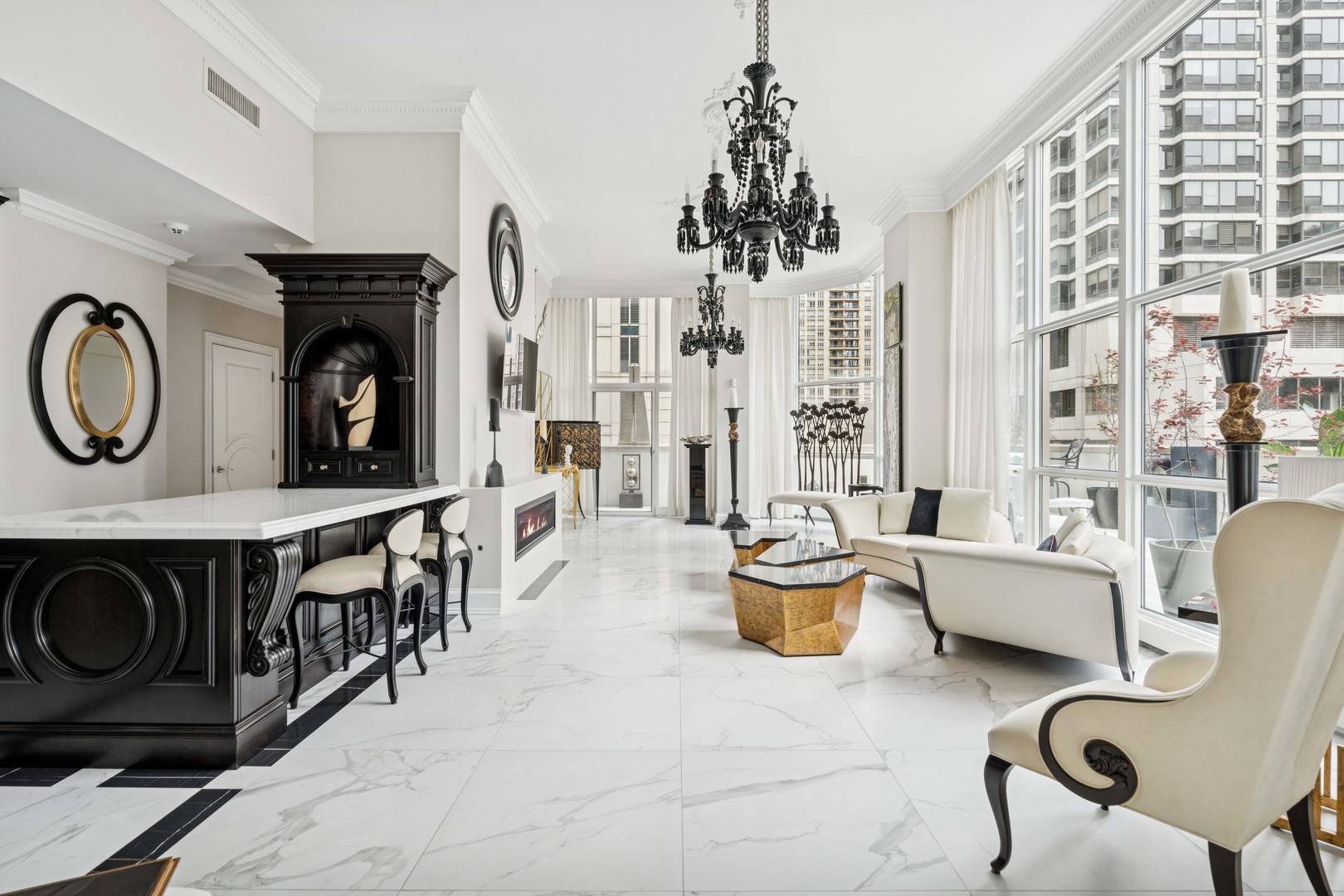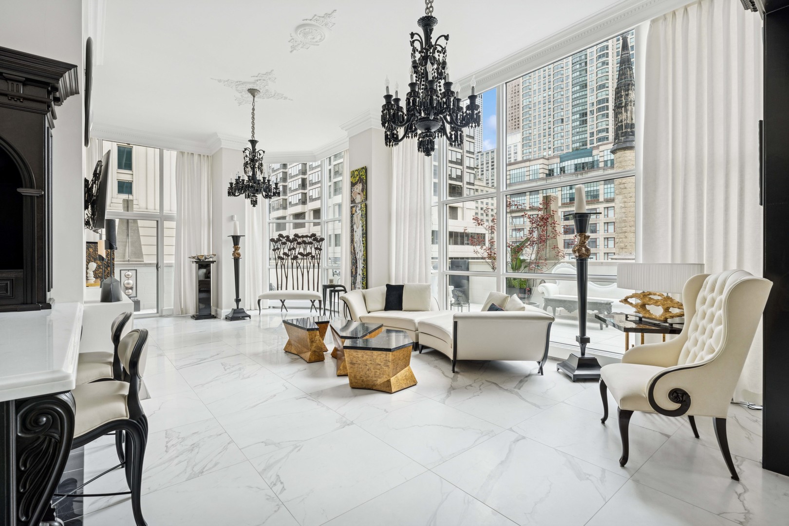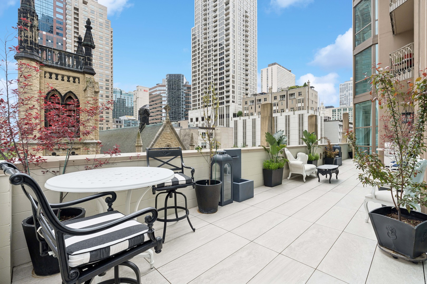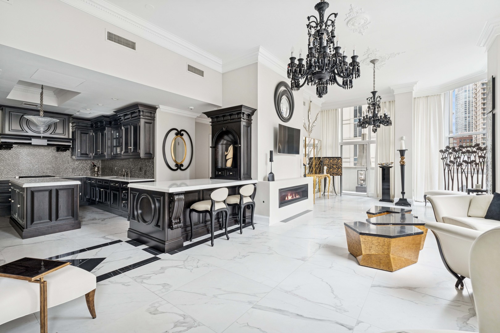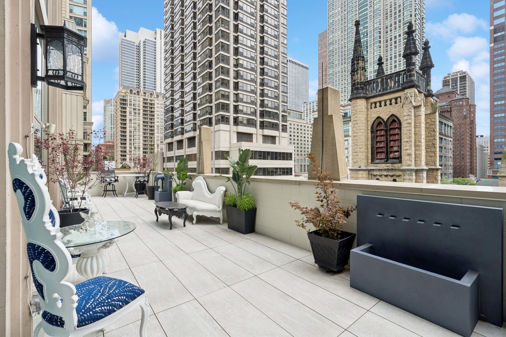 When Parisian charm meets New York Edge in the heart of Chicago – Unlike Anything You’ve Seen Before!!! Rarely available luxury 2 bed | 2 bath residence in the ICONIC Pinnacle building featuring a PRIVATE wraparound balcony. This UNBELIEVABLE 1770 sqft home with soaring 13″ ceilings offers a desired open kitchen/living room/dining room layout with exquisite timeless finishes, a meticulously Parisian-inspired ceiling medallion and breathtaking crown molding, elegant French-style doors with custom boiserie detailing, oversized floor-to-ceiling windows, imported Monte Carlo tiles throughout and Lutron shades in every room. The ENORMOUS private terrace with stunning views features a Parisian/Italian inspired design, and makes this ONE-OF-A-KIND home even more perfect for indoor/outdoor entertaining. Breathtaking chef’s kitchen boasts top of the line Subzero and Wolf appliances, custom built CEILING HEIGHT Clive cabinetry, expansive DUAL ISLANDS with double-thick Cove Dupont-edge countertops, artisan-crafted backsplash, two beverage fridge and generous storage. The main living area includes a cozy fireplace and a designated dining space ideal for both relaxing and hosting. The OVERSIZED luxurious primary suite, showcasing the same exclusive finishes offering a dedicated seating area complete with Lavish spa-like primary bathroom with curated monochrome tilework, dual vanity, massive rain shower, separate SHOW-STOPPING soaking tub, ample storage. An additional spacious bedroom and a second bathroom are thoughtfully designed with the same cohesive and elevated finishes. World class 5-star amenities at the Pinnacle include 24-hour door staff, onsite manager, concierge services, indoor pool, state-of-the-art gym, steam/sauna facilities, outdoor sundeck and grills, private dog walk and play area, theater room, hospitality suite with terrace, and wine locker. Just steps from Magnificent Mile, upscale shopping, the best restaurants Chicago has to offer, entertainment, cultural attractions, cafes, Lake Michigan, Whole Foods, Lifetime Fitness and so much more. Luxurious living at its best! TWO PREMIUM SIDE BY SIDE PARKING available for an additional $50K per space.