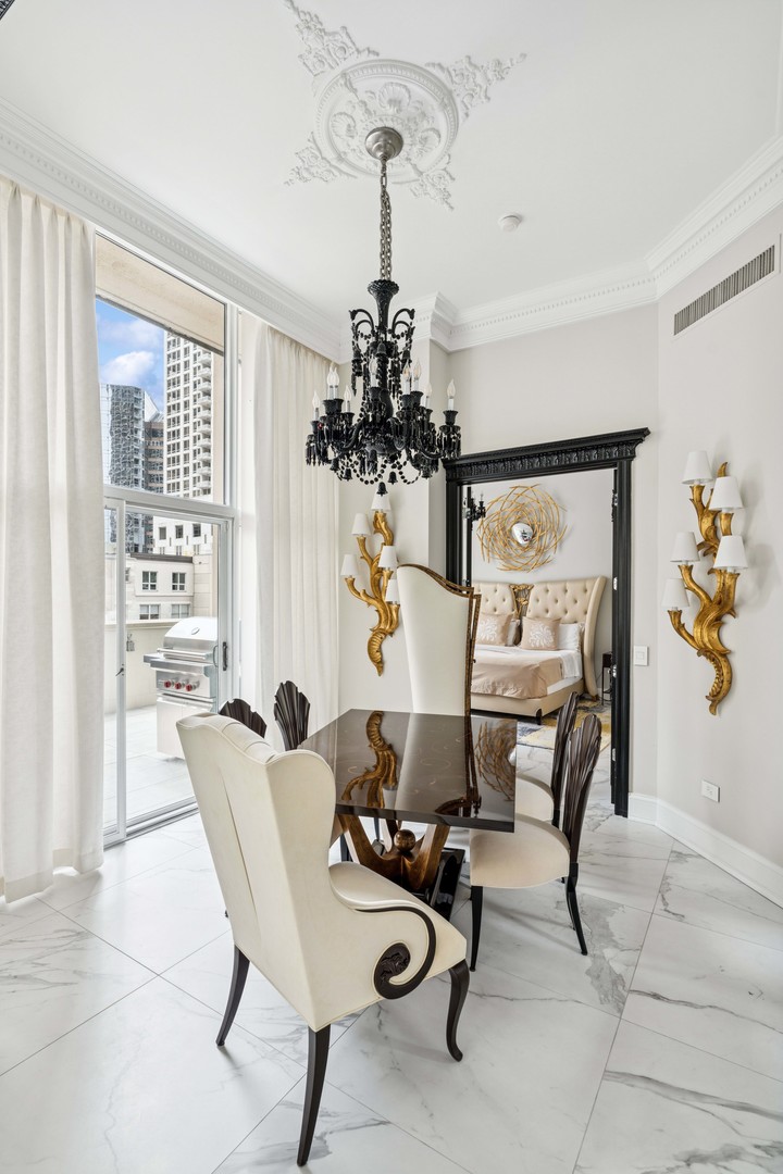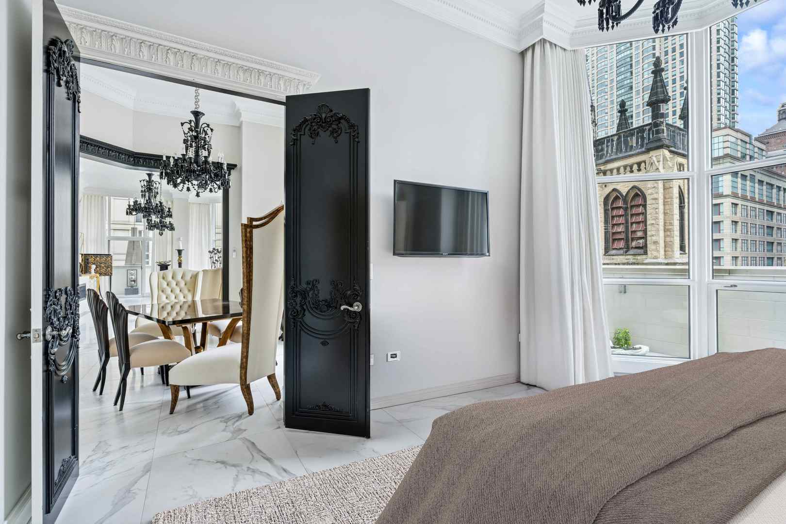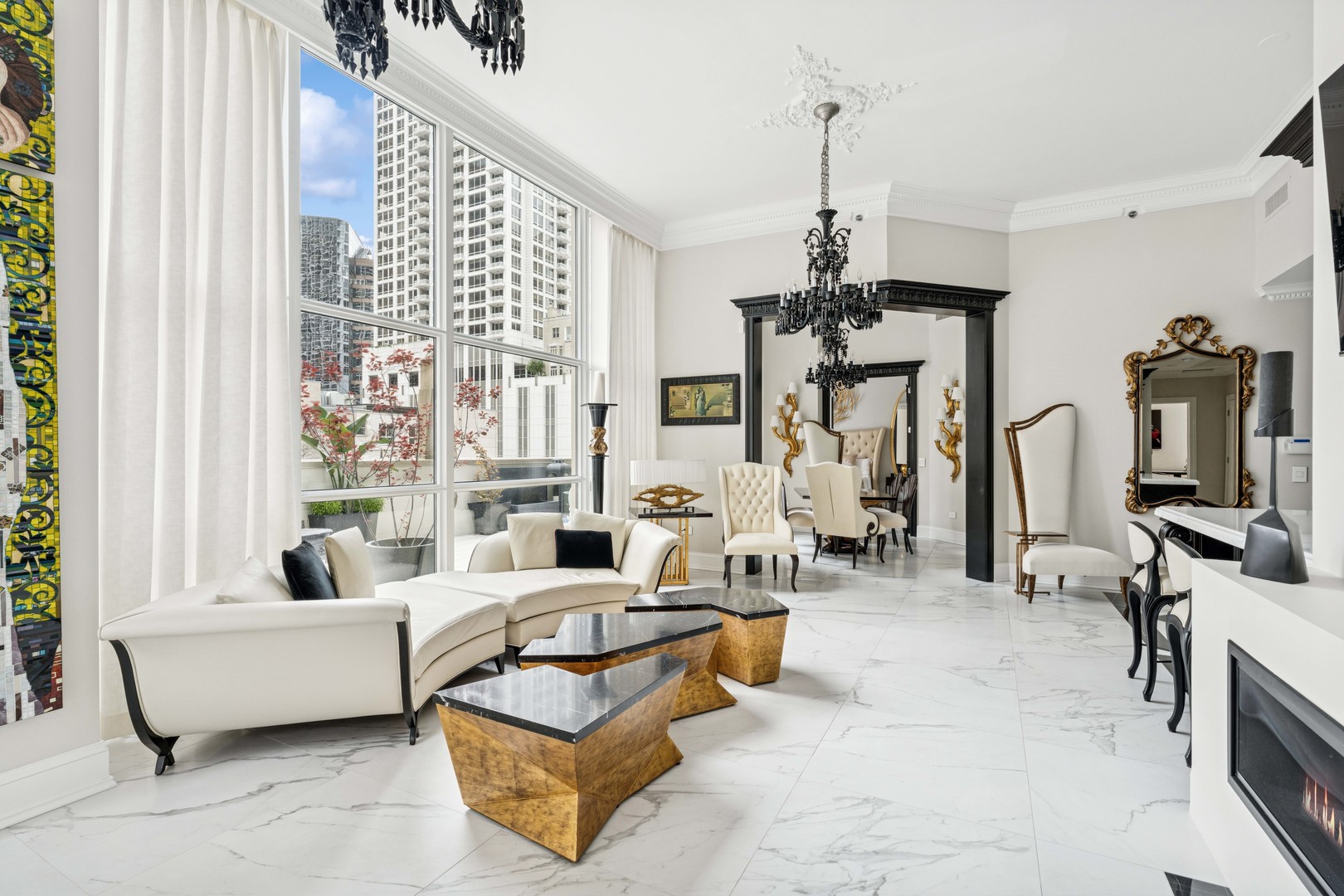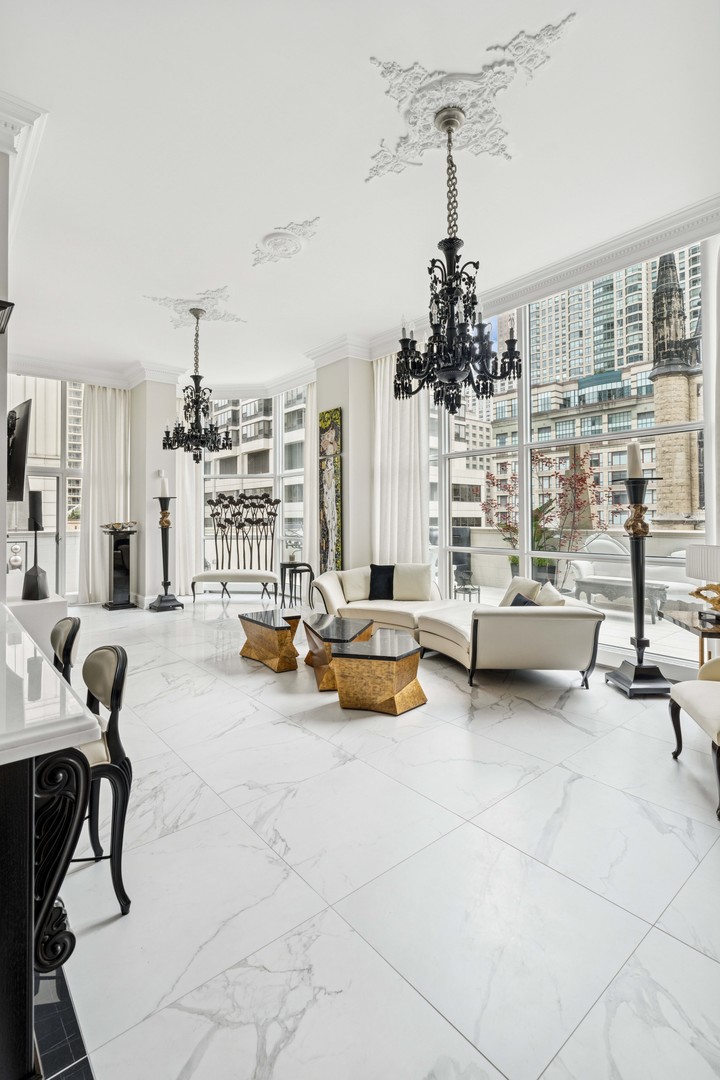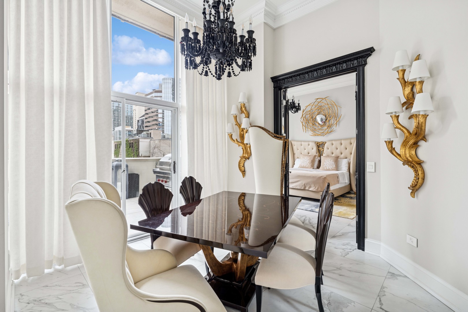 When Parisian charm meets New York Edge in the heart of Chicago – Unlike Anything You’ve Seen Before!!! Rarely available luxury 2 bed | 2 bath residence in the ICONIC Pinnacle building featuring a PRIVATE wraparound balcony. This UNBELIEVABLE 1770 sqft home with soaring 13″ ceilings offers a desired open kitchen/living room/dining room layout with exquisite timeless finishes, a meticulously Parisian-inspired ceiling medallion and breathtaking crown molding, elegant French-style doors with custom boiserie detailing, oversized floor-to-ceiling windows, imported Monte Carlo tiles throughout and Lutron shades in every room. The ENORMOUS private terrace with stunning views features a Parisian/Italian inspired design, and makes this ONE-OF-A-KIND home even more perfect for indoor/outdoor entertaining. Breathtaking chef’s kitchen boasts top of the line Subzero and Wolf appliances, custom built CEILING HEIGHT Clive cabinetry, expansive DUAL ISLANDS with double-thick Cove Dupont-edge countertops, artisan-crafted backsplash, two beverage fridge and generous storage. The main living area includes a cozy fireplace and a designated dining space ideal for both relaxing and hosting. The OVERSIZED luxurious primary suite, showcasing the same exclusive finishes offering a dedicated seating area complete with Lavish spa-like primary bathroom with curated monochrome tilework, dual vanity, massive rain shower, separate SHOW-STOPPING soaking tub, ample storage. An additional spacious bedroom and a second bathroom are thoughtfully designed with the same cohesive and elevated finishes. World class 5-star amenities at the Pinnacle include 24-hour door staff, onsite manager, concierge services, indoor pool, state-of-the-art gym, steam/sauna facilities, outdoor sundeck and grills, private dog walk and play area, theater room, hospitality suite with terrace, and wine locker. Just steps from Magnificent Mile, upscale shopping, the best restaurants Chicago has to offer, entertainment, cultural attractions, cafes, Lake Michigan, Whole Foods, Lifetime Fitness and so much more. Luxurious living at its best! TWO PREMIUM SIDE BY SIDE PARKING available for an additional $50K per space.