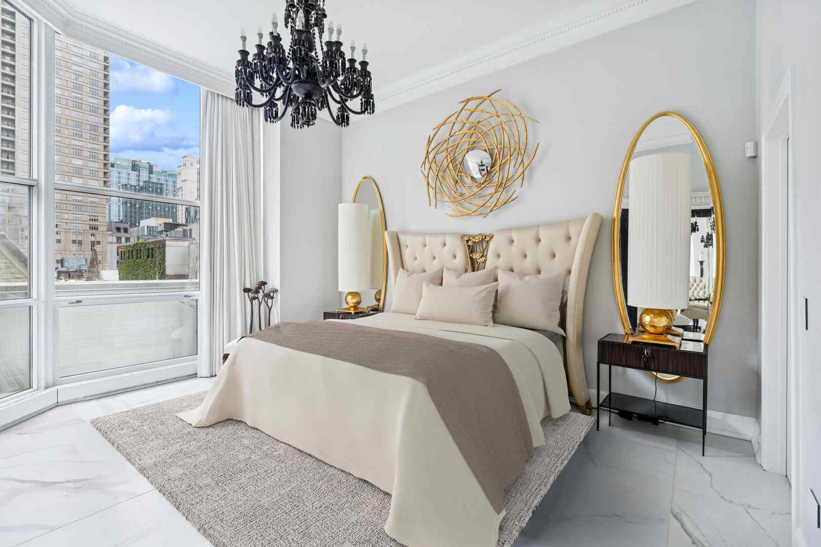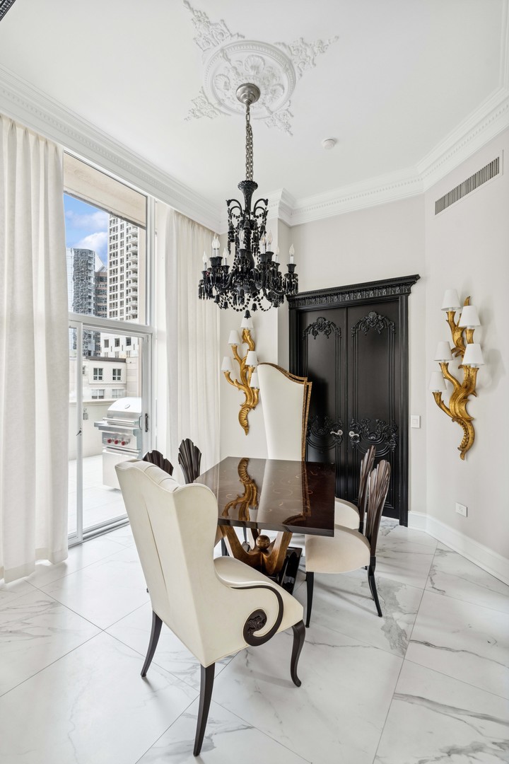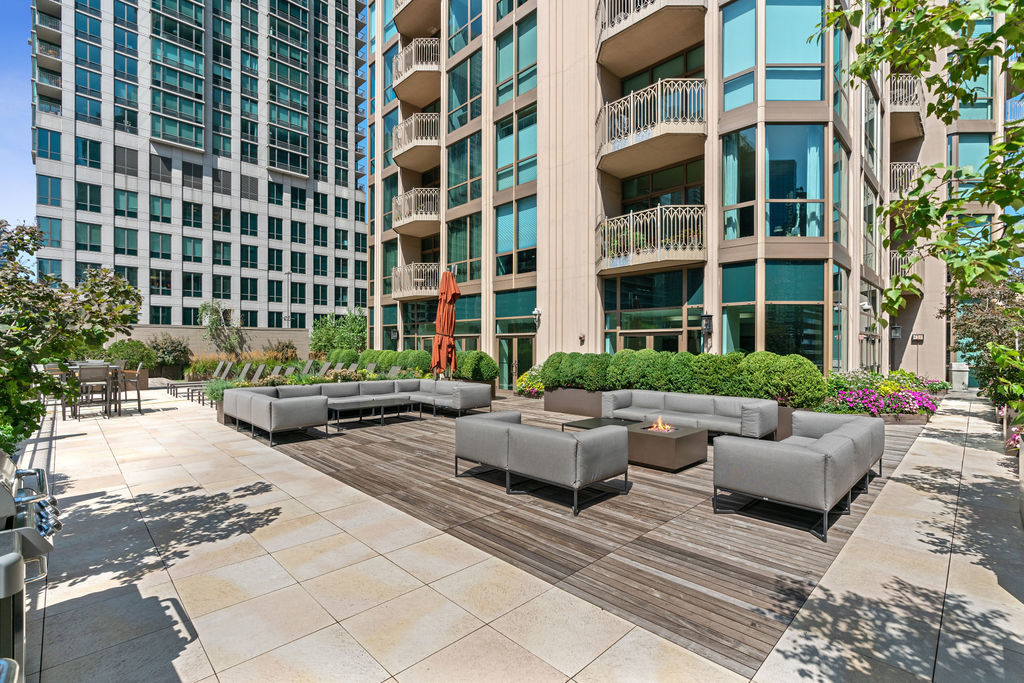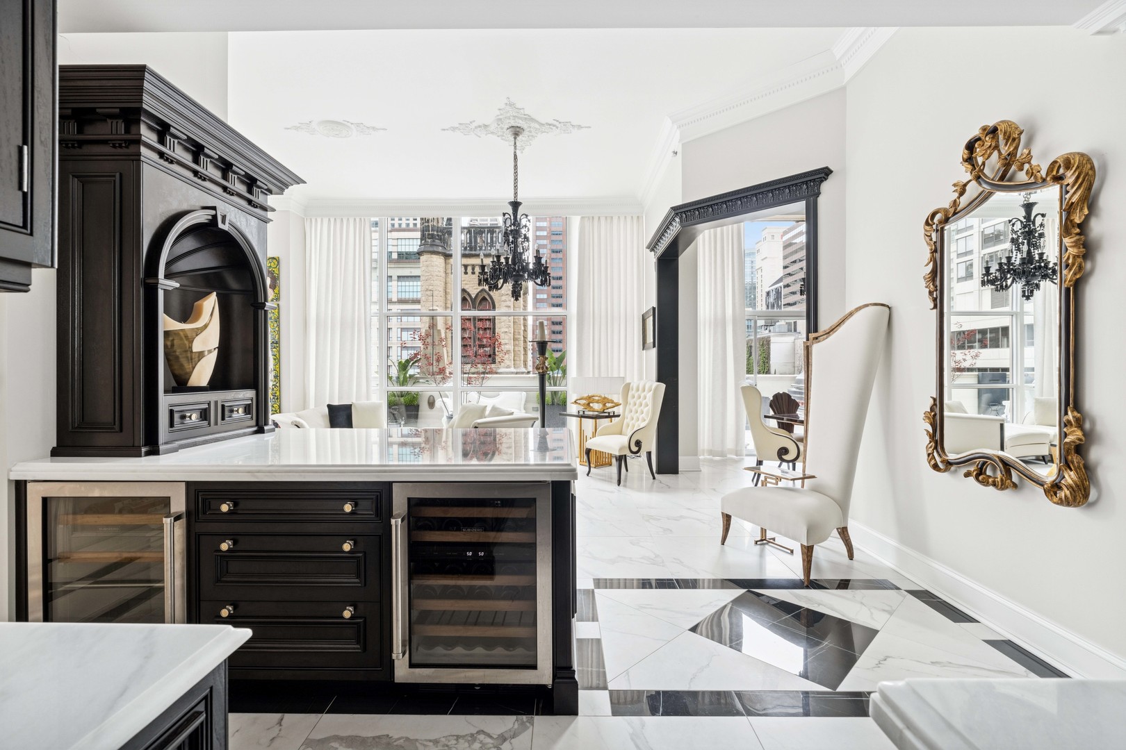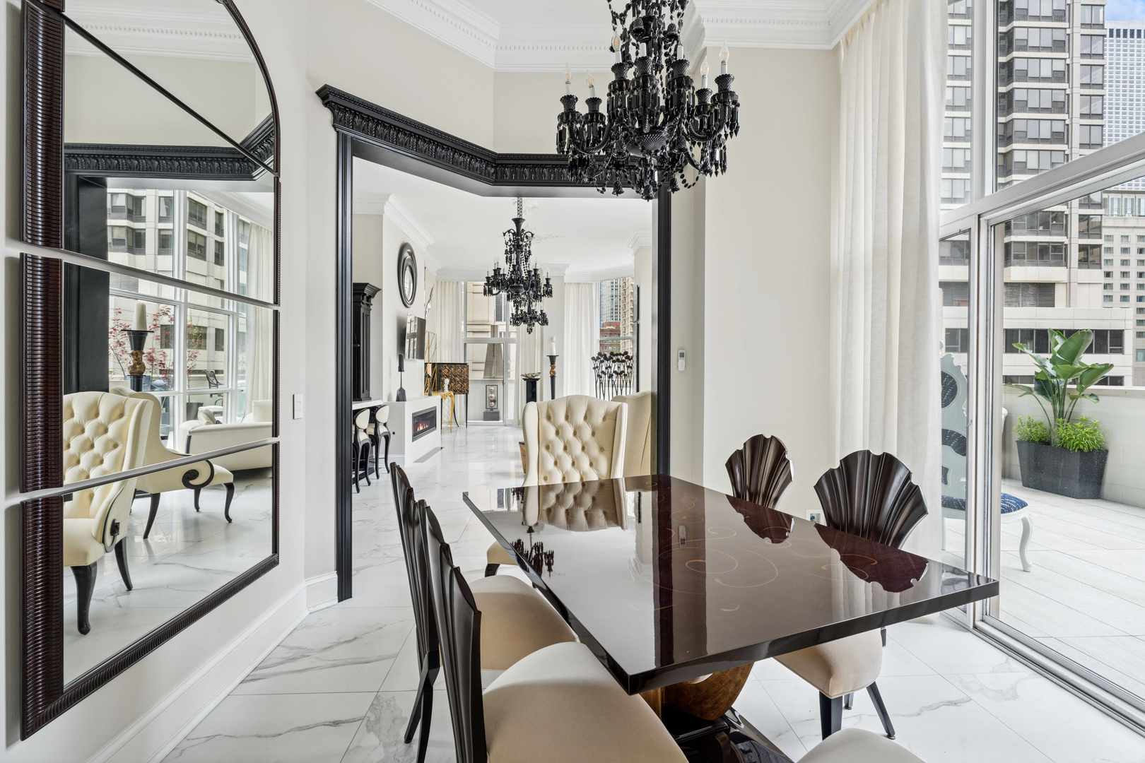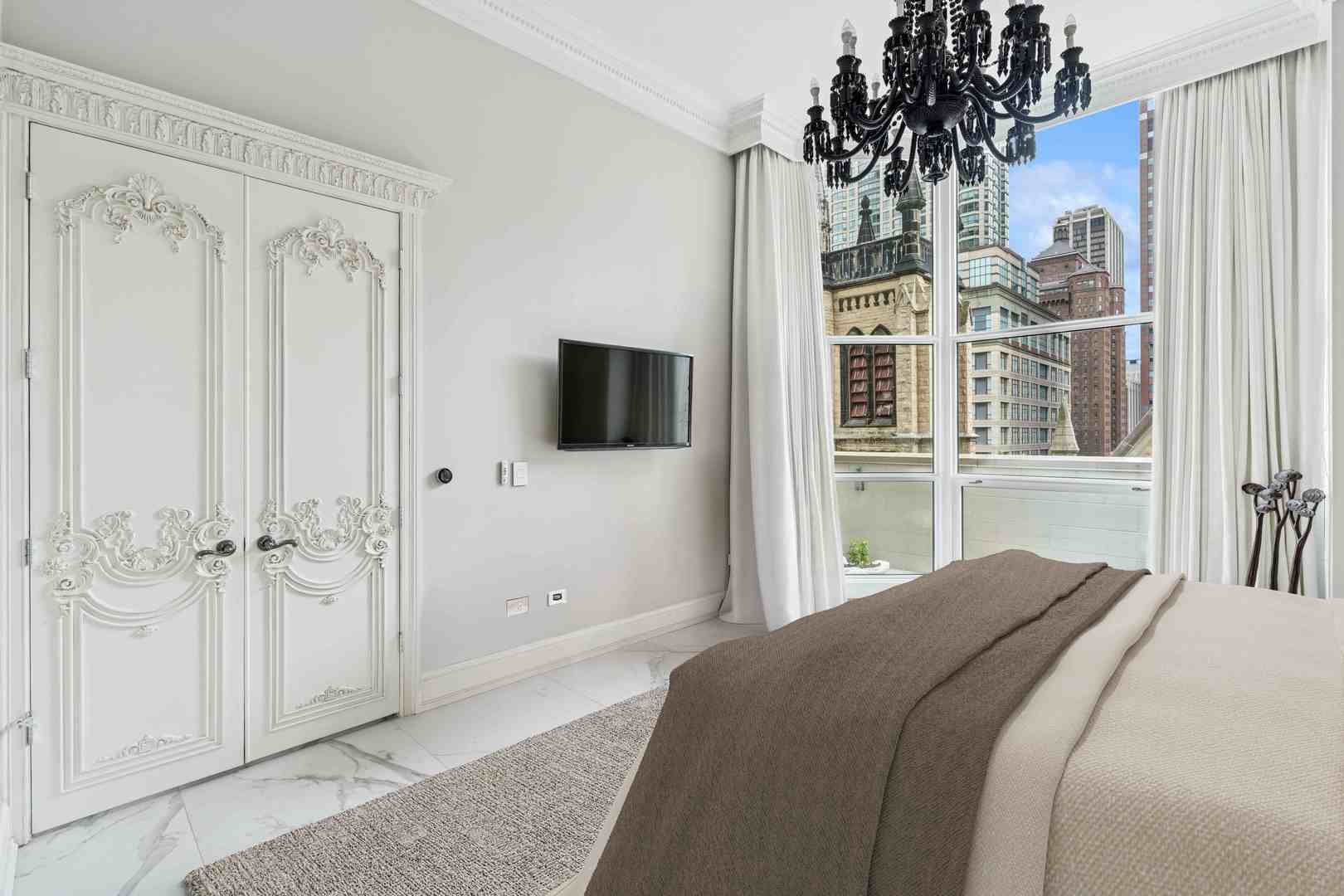 When Parisian charm meets New York Edge in the heart of Chicago – Unlike Anything You’ve Seen Before!!! Rarely available luxury 2 bed | 2 bath residence in the ICONIC Pinnacle building featuring a PRIVATE wraparound balcony. This UNBELIEVABLE 1770 sqft home with soaring 13″ ceilings offers a desired open kitchen/living room/dining room layout with exquisite timeless finishes, a meticulously Parisian-inspired ceiling medallion and breathtaking crown molding, elegant French-style doors with custom boiserie detailing, oversized floor-to-ceiling windows, imported Monte Carlo tiles throughout and Lutron shades in every room. The ENORMOUS private terrace with stunning views features a Parisian/Italian inspired design, and makes this ONE-OF-A-KIND home even more perfect for indoor/outdoor entertaining. Breathtaking chef’s kitchen boasts top of the line Subzero and Wolf appliances, custom built CEILING HEIGHT Clive cabinetry, expansive DUAL ISLANDS with double-thick Cove Dupont-edge countertops, artisan-crafted backsplash, two beverage fridge and generous storage. The main living area includes a cozy fireplace and a designated dining space ideal for both relaxing and hosting. The OVERSIZED luxurious primary suite, showcasing the same exclusive finishes offering a dedicated seating area complete with Lavish spa-like primary bathroom with curated monochrome tilework, dual vanity, massive rain shower, separate SHOW-STOPPING soaking tub, ample storage. An additional spacious bedroom and a second bathroom are thoughtfully designed with the same cohesive and elevated finishes. World class 5-star amenities at the Pinnacle include 24-hour door staff, onsite manager, concierge services, indoor pool, state-of-the-art gym, steam/sauna facilities, outdoor sundeck and grills, private dog walk and play area, theater room, hospitality suite with terrace, and wine locker. Just steps from Magnificent Mile, upscale shopping, the best restaurants Chicago has to offer, entertainment, cultural attractions, cafes, Lake Michigan, Whole Foods, Lifetime Fitness and so much more. Luxurious living at its best! TWO PREMIUM SIDE BY SIDE PARKING available for an additional $50K per space.