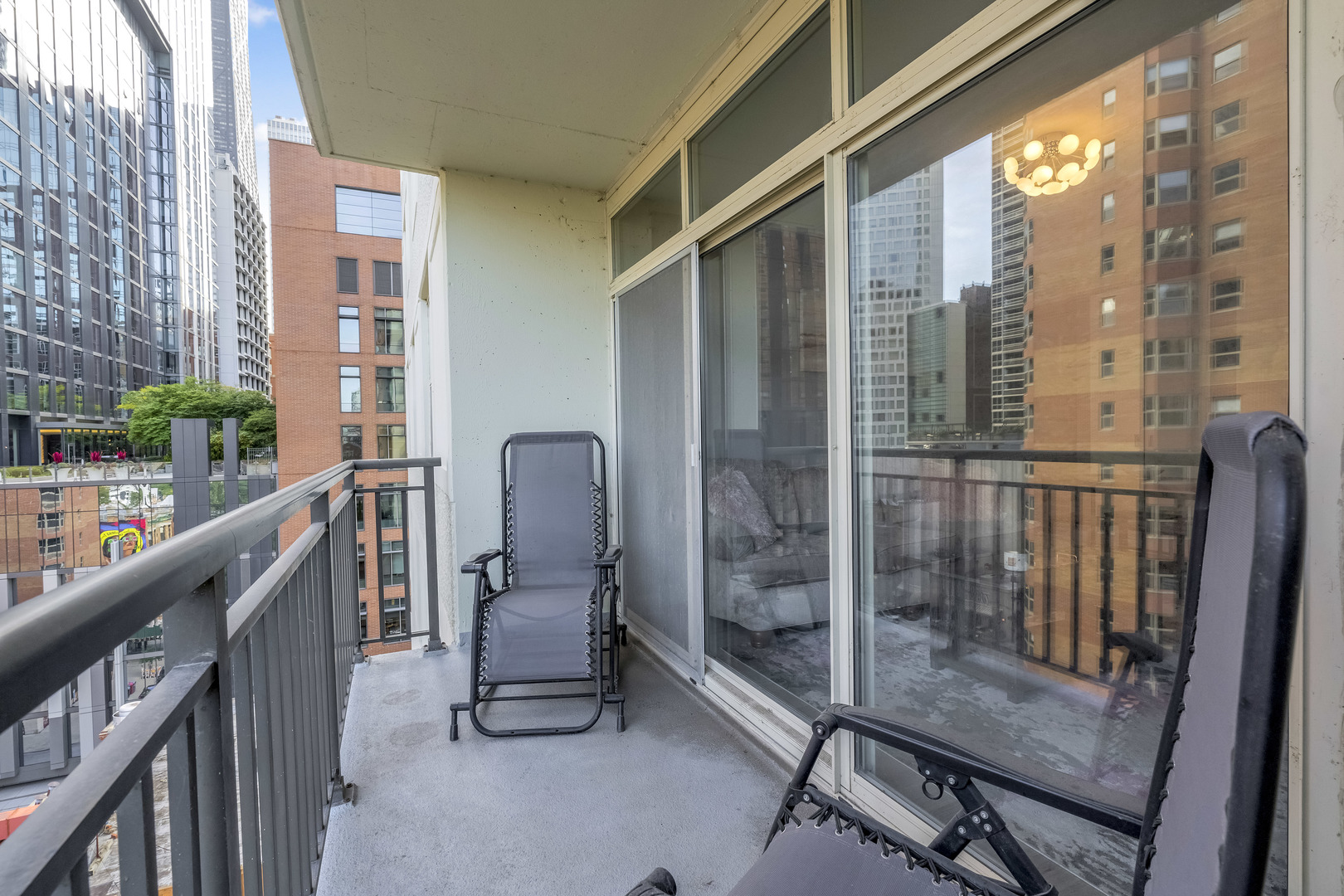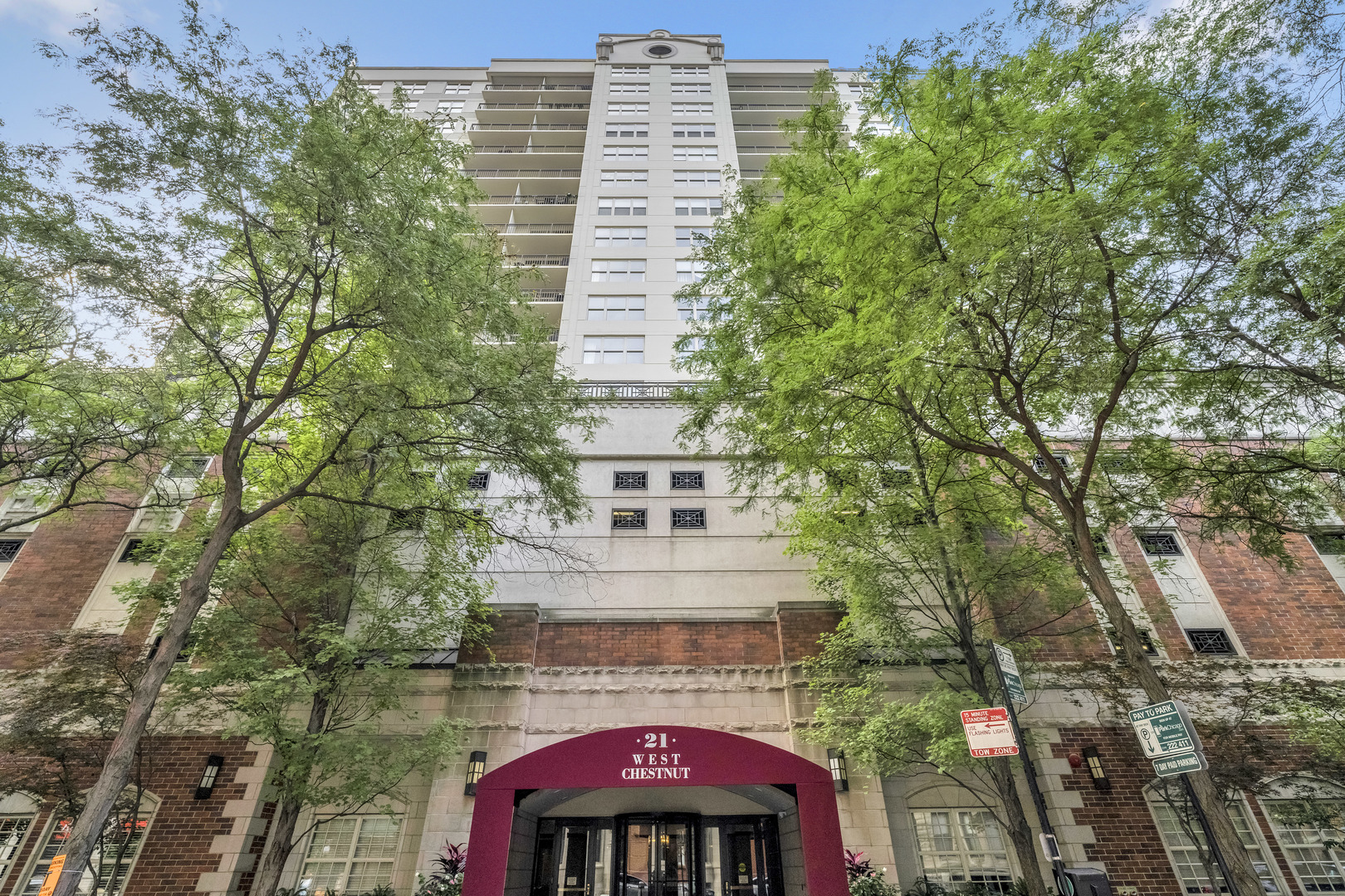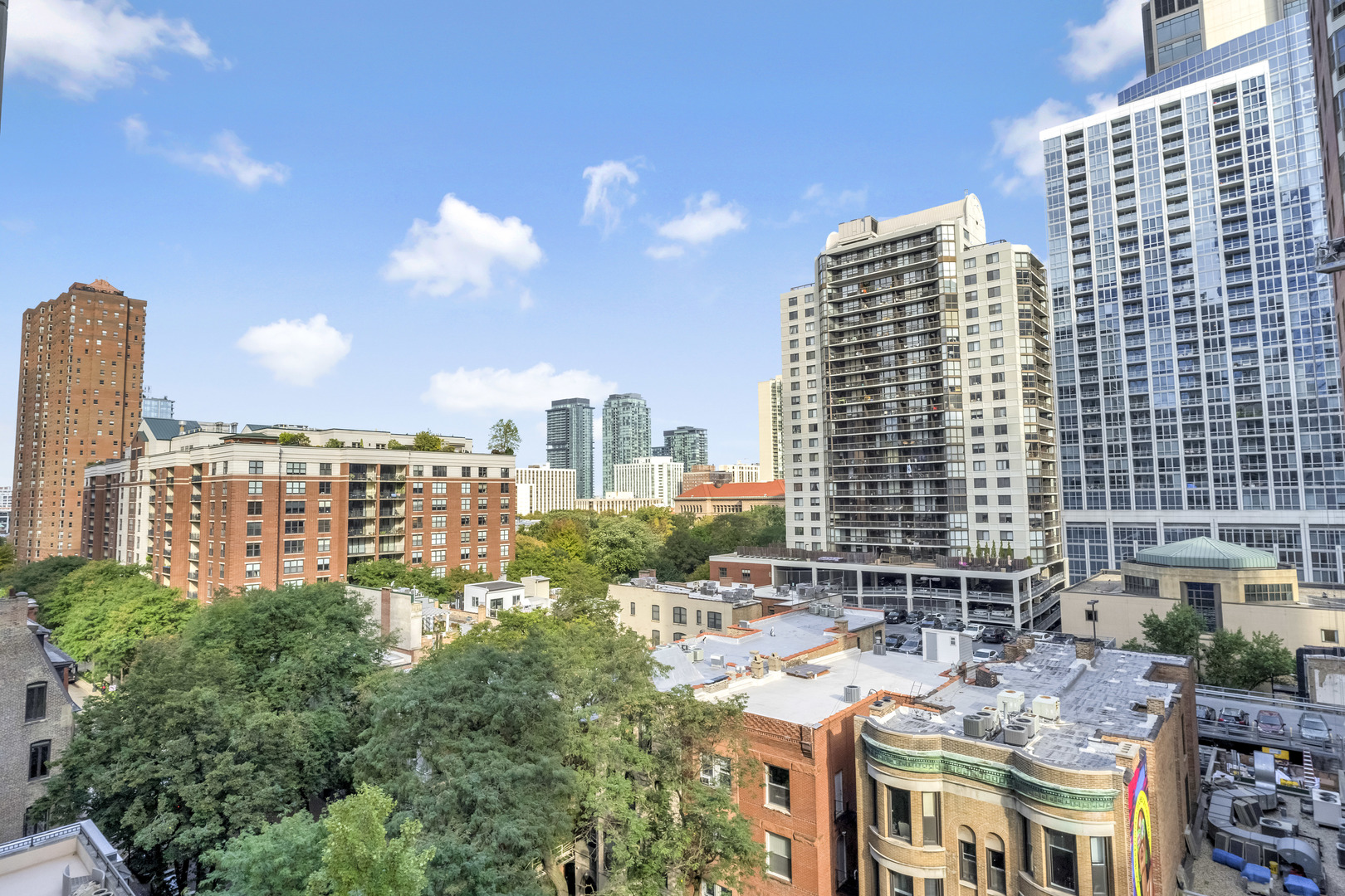 A stylish, updated one bedroom home nestled in a boutique building on a serene, tree lined street in Chicago’s coveted Gold Coast. This bright and inviting condo combines modern finishes with everyday convenience. The open living area features wood laminated flooring, and expansive floor to ceiling windows that lead to a private balcony, perfect for enjoying sweeping city views. The kitchen is thoughtfully designed, offering granite counters, stainless steel appliances, and a chic tile backsplash, thoughtful built-ins-including an armoire and pantry, added to the exceptional storage options throughout. The spa inspired bathroom boasts a floor to ceiling tiled shower, contemporary lighting, a stone backsplash, and a spacious modern vanity. The bedroom, tucked away without exterior windows, creates a quiet, restful retreat perfect for uninterrupted sleep. Additional highlights include in-unit washer & dryer, excellent closet space, smart Nest Thermostat, and a layout that maximizes comfort and usability. Building amenities include 24-hour door staff, a spacious fitness center, business center, community party room with full kitchen, bike storage, Tide dry-cleaning lockers, package receiving room, vending machines, on-site management, and maintenance services. While deeded parking spaces are not available for purchase, rental options are almost always available within the building. Just outside your door, enjoy world-class restaurants, boutique shopping, Whole Foods, Oak Street Beach, the lakefront, Washington Square Park, the Riverwalk, and easy access to the Brown and Purple lines. Experience elevated city living at its finest, schedule your private showing today!!