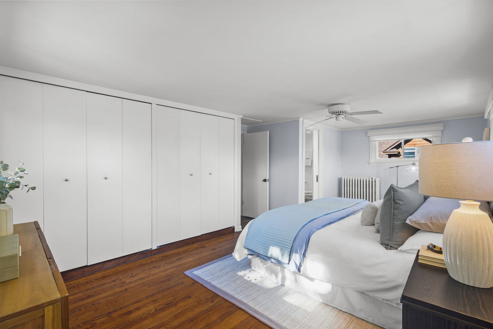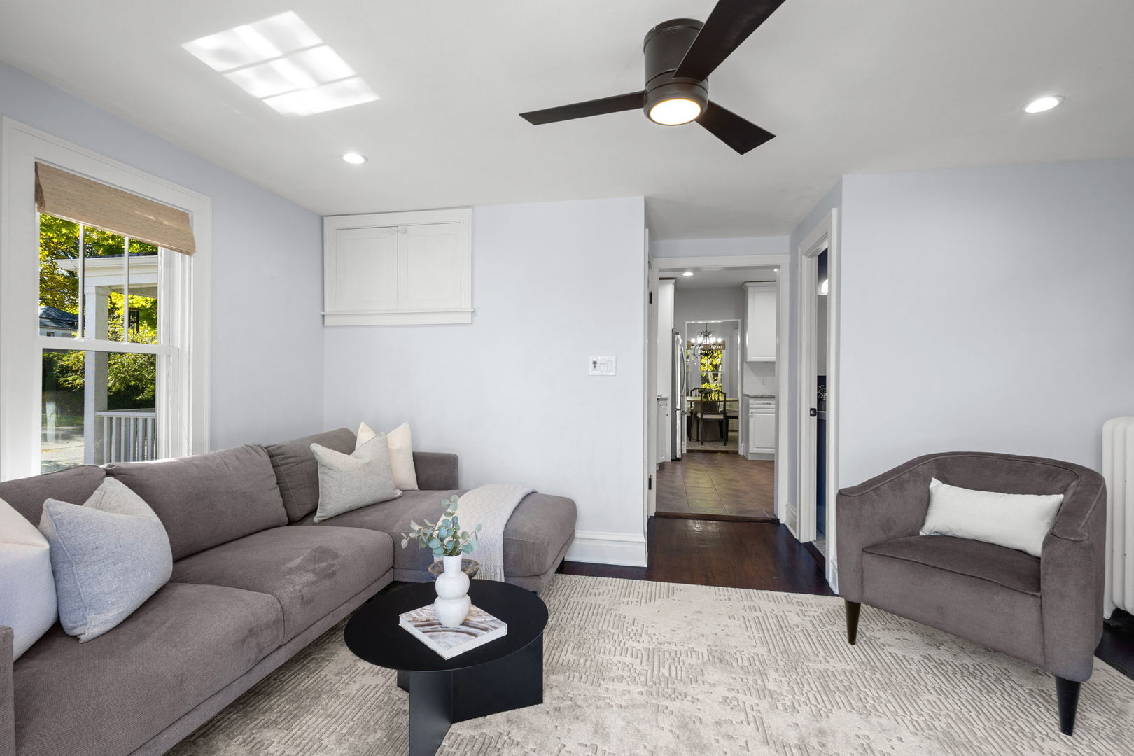 Welcome home to the corner lot everyone wishes they had. This beautifully renovated 4-bedroom, 2.5-bath sits on a peaceful, tree-lined block and truly checks every box-starting with all four bedrooms conveniently located upstairs, including a serene primary suite with its own en-suite bath. You’ll love the crisp white kitchen with granite countertops and stainless steel appliances, which opens seamlessly to the family room-perfect for everyday living or casual entertaining. A nearby powder room adds convenience, while sliding doors lead to a spacious deck and large fenced backyard-ideal for grilling, hosting, or simply relaxing outdoors. Upstairs, the primary suite shines with privacy and comfort, while three additional bedrooms share a full bath-plenty of space for family or guests. The finished basement adds versatility-create a playroom, media space, or quiet home office. Recent upgrades include a new boiler for radiators and hot water, plus wall-unit air conditioning on both the main and second floors. You’ll love the unbeatable location: close to schools, parks, restaurants, coffee shops, and boutiques on Central Street-with easy Metra access for commuters.