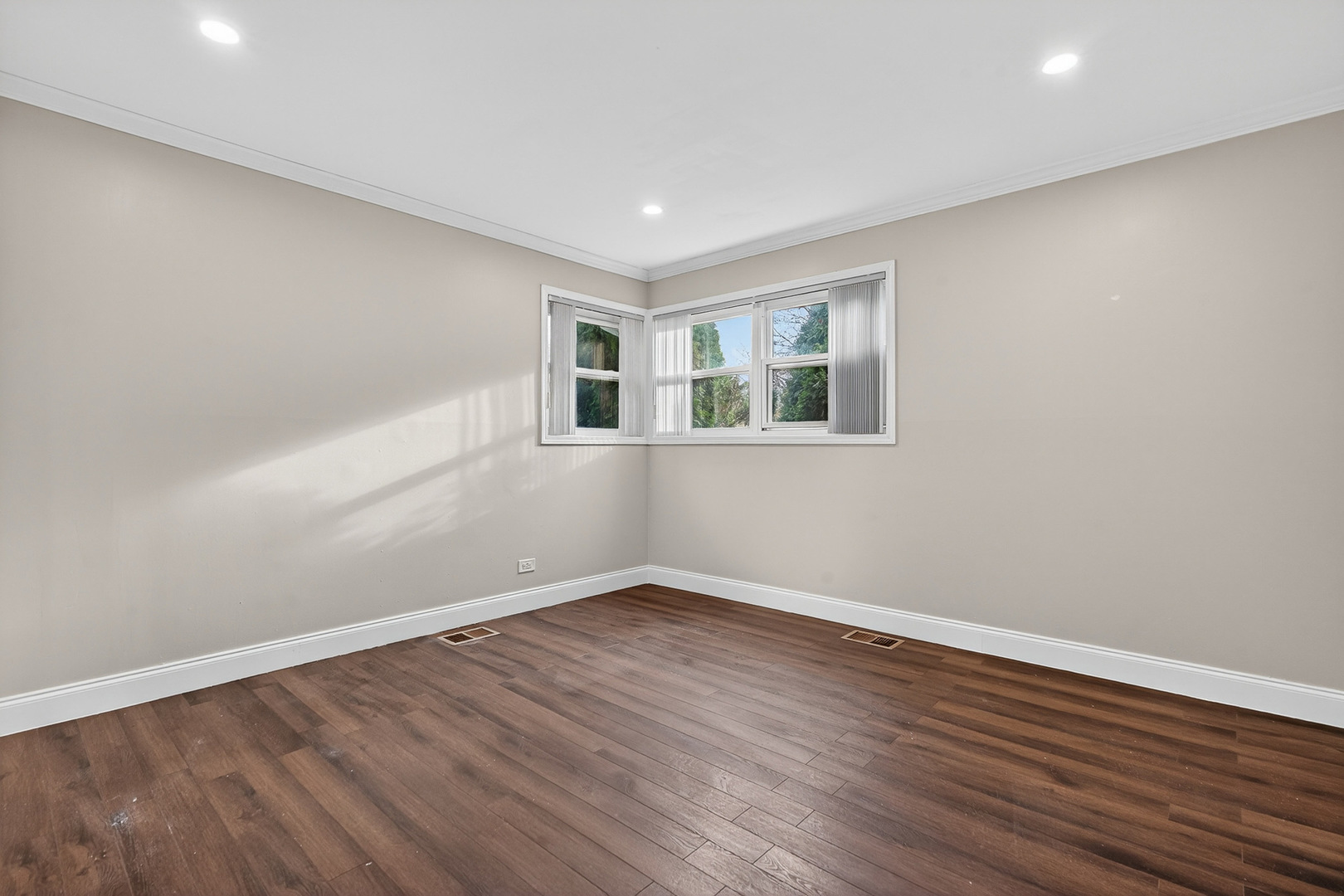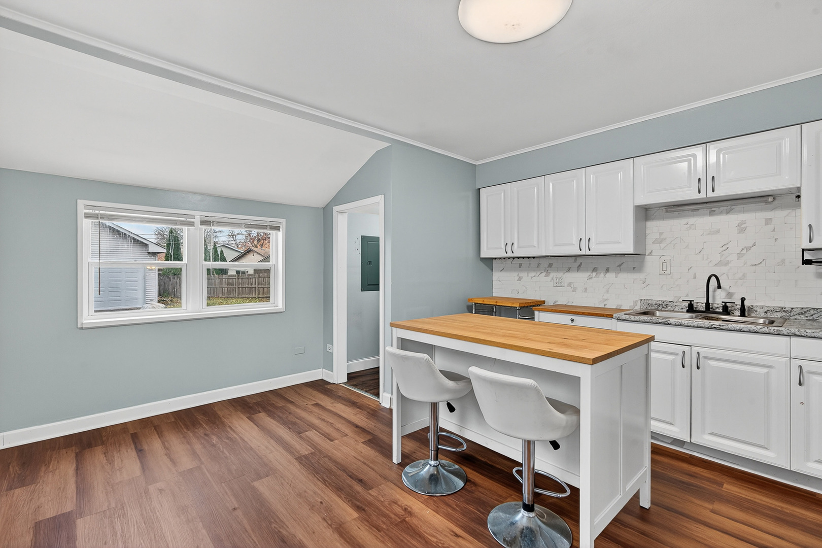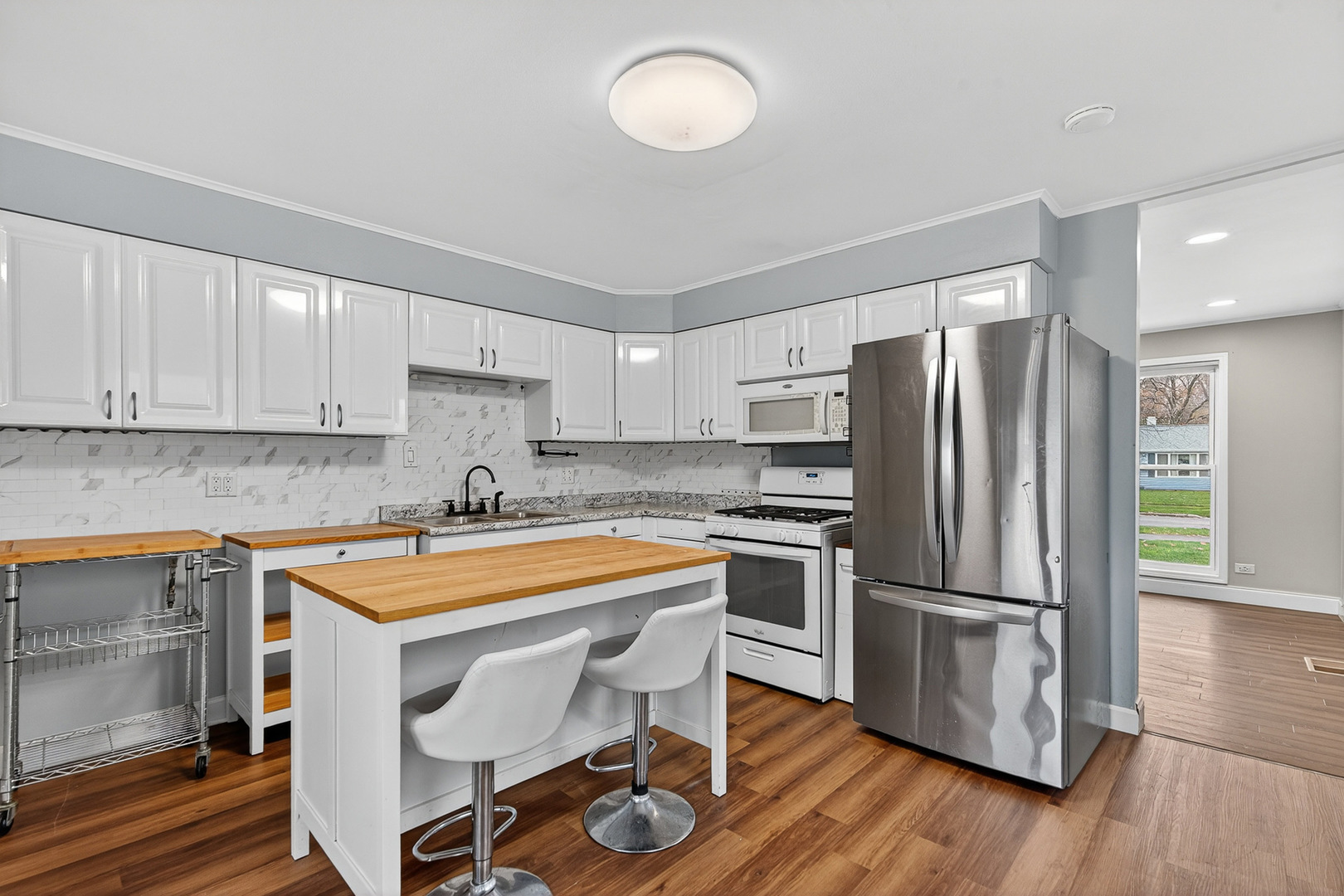 Beautifully updated 3-bedroom home offering 1,042 sq ft of living space on a generous 12,303 sq ft lot in the heart of Rolling Meadows. Step inside to find modern vinyl flooring throughout, spacious bedrooms, and a fully remodeled tiled bathroom. The home features an updated kitchen with a stainless steel refrigerator (2022), a full-sized stacked washer/dryer (2022), and modern updates throughout. A large unfinished attic provides excellent storage or potential for future expansion. Outside, enjoy a detached 3-car garage with a second floor, plus ample driveway parking-a rare find in the area. Major recent improvements include: new flooring, circuit breaker, recessed lighting, fully remodeled bathroom, and updated kitchen (2020); new washer/dryer and fridge (2022); new water heater, air ducts, and A/C condenser (2023). Ideal location just steps from multiple parks and within walking distance to downtown Rolling Meadows shopping and dining. Quick access to the highway (3 minutes) and only 3 minutes from the future Chicago Bears (Beats) stadium, making this home perfect for convenience, recreation, and long-term value. Move-in ready with outstanding upgrades-don’t miss it!