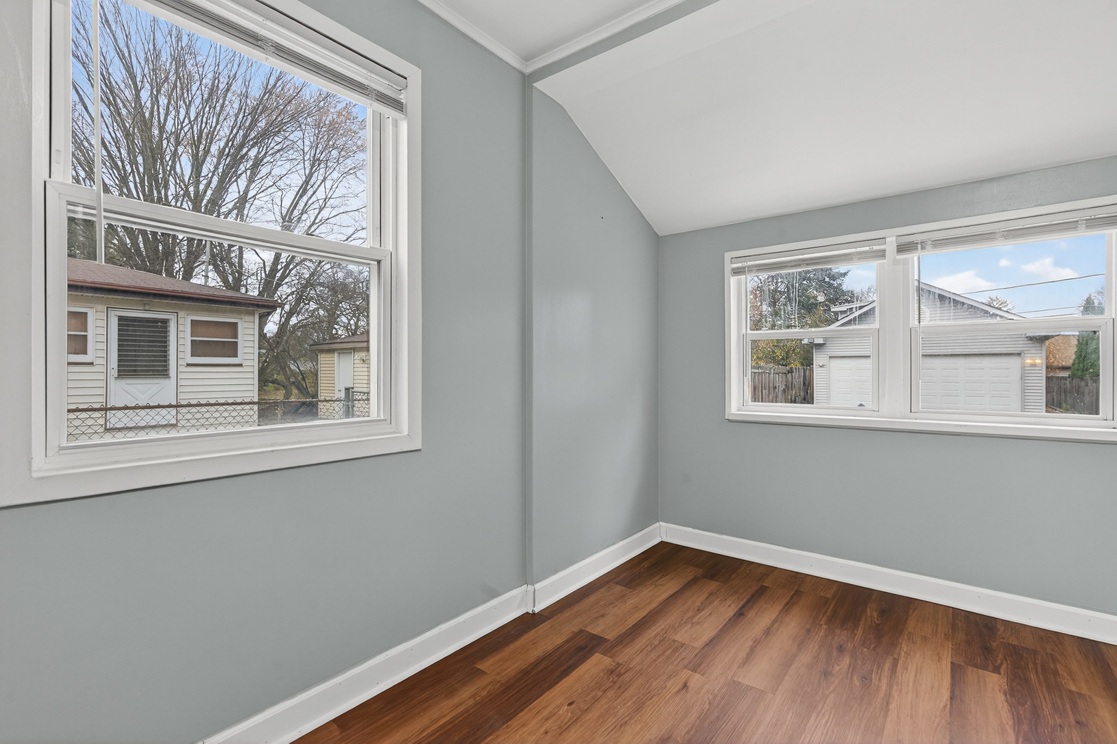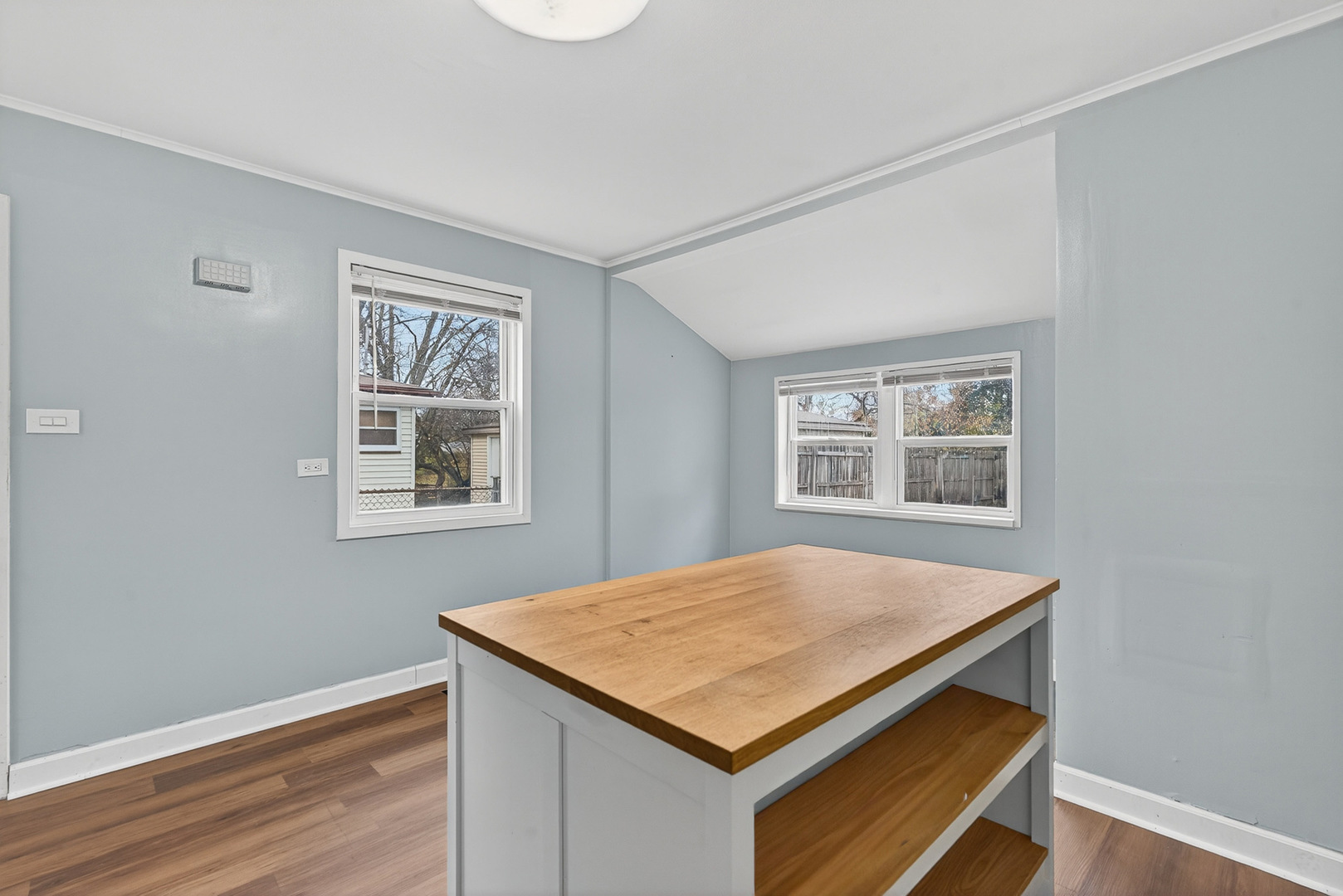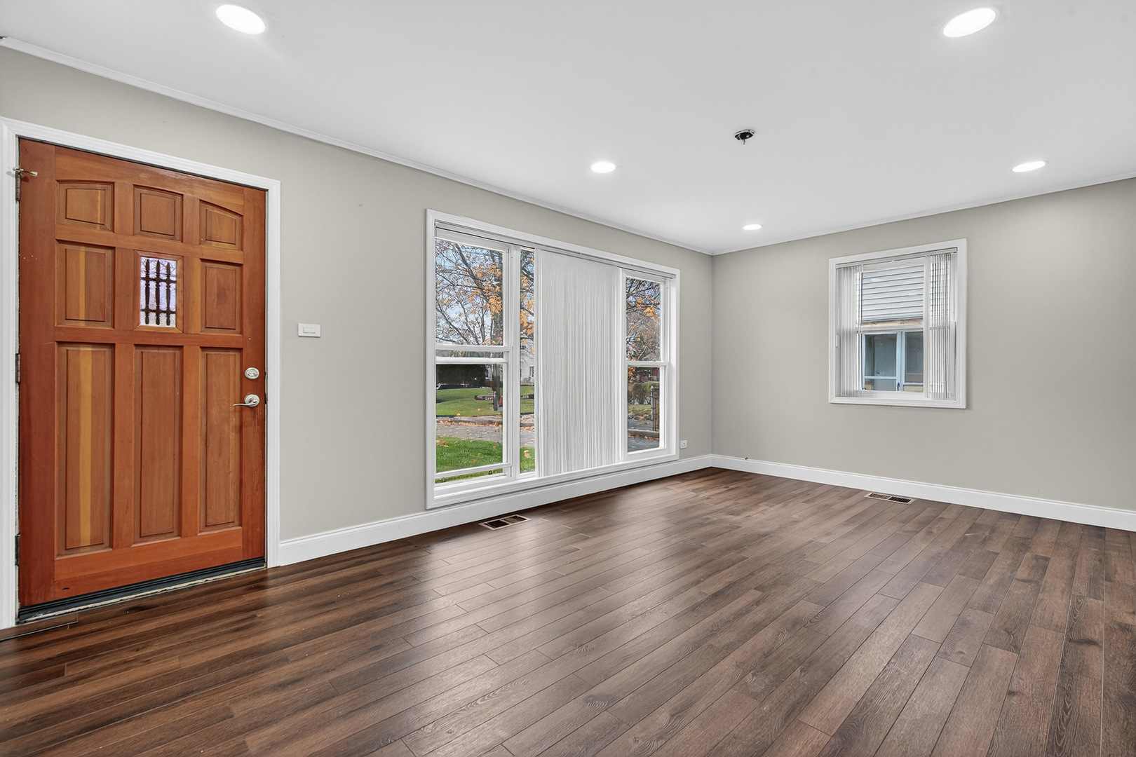 Beautifully updated 3-bedroom home offering 1,042 sq ft of living space on a generous 12,303 sq ft lot in the heart of Rolling Meadows. Step inside to find modern vinyl flooring throughout, spacious bedrooms, and a fully remodeled tiled bathroom. The home features an updated kitchen with a stainless steel refrigerator (2022), a full-sized stacked washer/dryer (2022), and modern updates throughout. A large unfinished attic provides excellent storage or potential for future expansion. Outside, enjoy a detached 3-car garage with a second floor, plus ample driveway parking-a rare find in the area. Major recent improvements include: new flooring, circuit breaker, recessed lighting, fully remodeled bathroom, and updated kitchen (2020); new washer/dryer and fridge (2022); new water heater, air ducts, and A/C condenser (2023). Ideal location just steps from multiple parks and within walking distance to downtown Rolling Meadows shopping and dining. Quick access to the highway (3 minutes) and only 3 minutes from the future Chicago Bears (Beats) stadium, making this home perfect for convenience, recreation, and long-term value. Move-in ready with outstanding upgrades-don’t miss it!