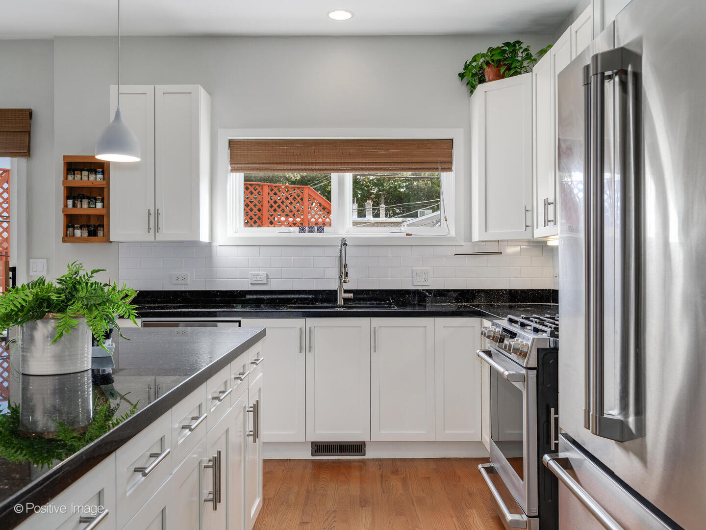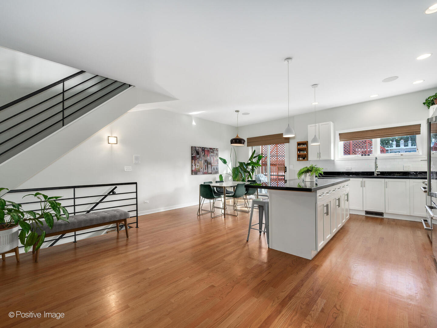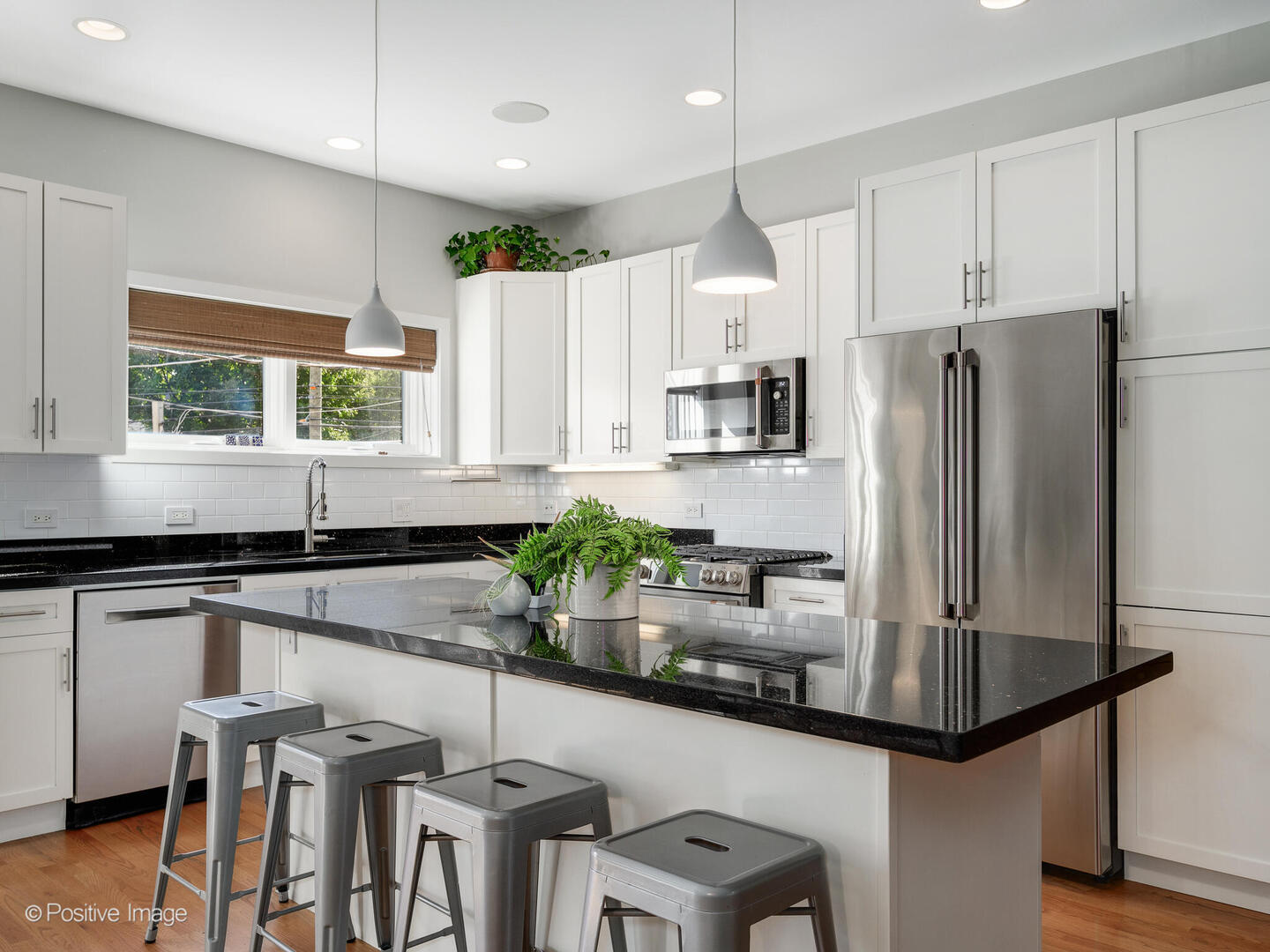 Massive Fee-Simple Townhome in the Coonley School District. This rare property offers the feel of a single-family home in an unbeatable North Center location. The first floor welcomes you with a spacious foyer, an office/bedroom, a half bath, and convenient access to the attached two-car garage. On the second floor, enjoy an open-concept layout featuring a large living room with a cozy gas fireplace, a dedicated dining area, and a generously sized kitchen. Recent updates include all new upgraded appliances (2021), professionally painted cabinetry (2022), and stylish lighting upgrades (2020). The third floor hosts the sunlit primary suite with an en-suite bath showcasing a double vanity and oversized shower. A second spacious bedroom, full bath with tub, and laundry on the same level add comfort and convenience. But we’re not done yet! The fourth floor is a versatile bonus space-perfect as a family room, playroom, home office, or even a fourth bedroom. Entertaining is effortless with a built-in wet bar and direct access to your private roof deck with low-maintenance composite decking (new flat roof in 2023). Walkability to everything the neighborhood offers-dining, retail, grocery stores, the L, Welles Park, and Sulzer Library. Families will love being just two blocks from Coonley and St. Ben’s Schools.