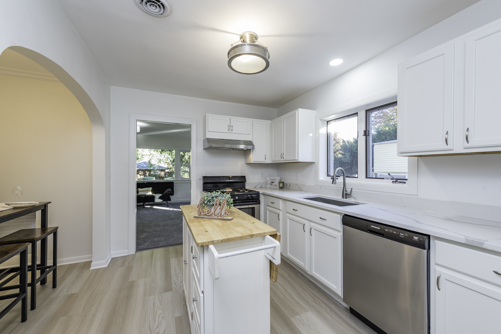 Charming Brick Ranch home. Don’t miss out on this beautifully updated 3-bedroom, 2-bath ranch nestled on a quiet tree-lined street. Step inside to find a spacious living room filled with natural light, featuring a large picture window and cozy fireplace; perfect for relaxing or entertaining. The bright, fully renovated kitchen offers white shaker cabinets, stainless steel appliances, quartz countertops, and a movable island for added workspace and flexibility. Two modern, refreshed bathrooms showcase stylish finishes and neutral tones. Enjoy the comfort of new flooring throughout, fresh paint, and plenty of storage space. The large laundry/mudroom area adds extra functionality for today’s busy lifestyle. Outside, the home sits on a double lot with mature trees, an attached oversized 1-car garage, and a private backyard ready for summer gatherings. Conveniently located near parks, shopping, and local amenities. Property taxes have been appealed.