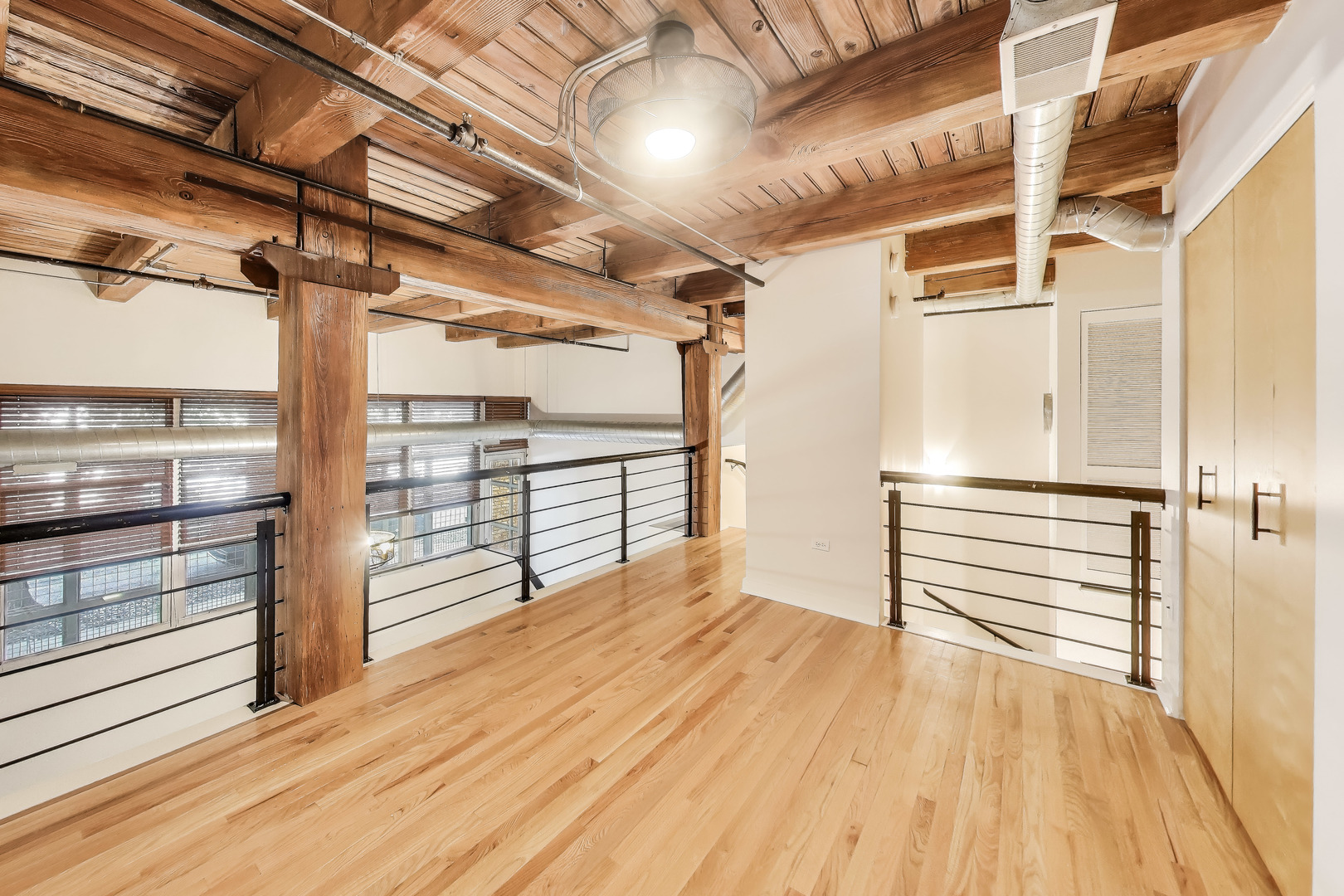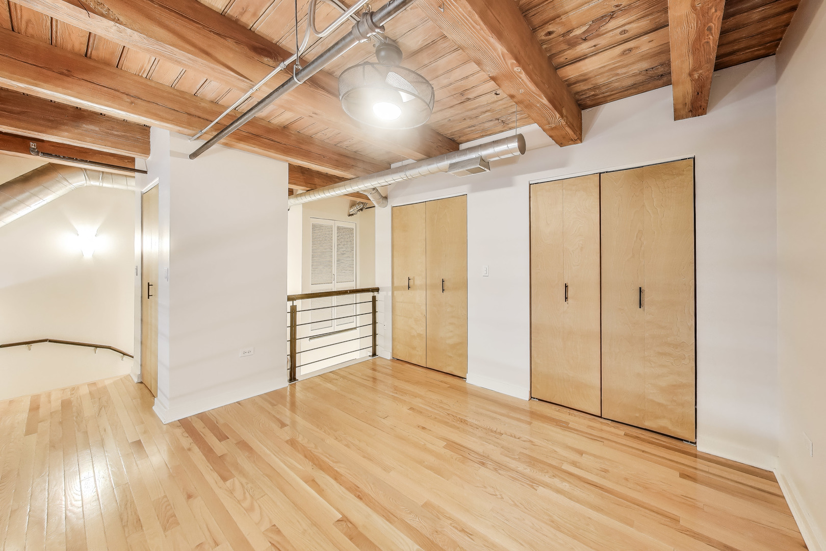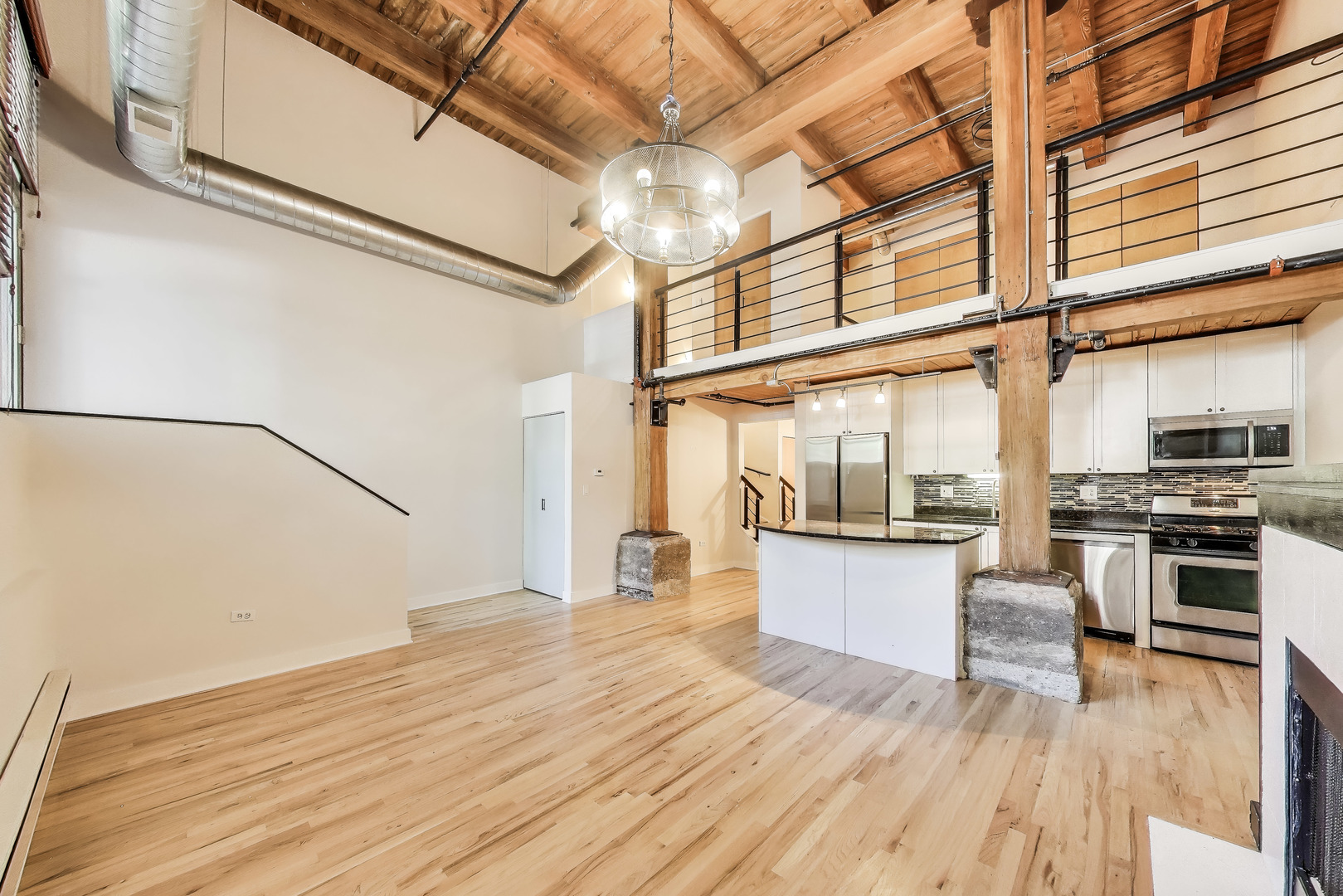 This fantastic two level loft is the larger one bedroom floor plan in the building which includes five closets. Located in the historic Churchill Row Lofts building on a quiet tree-lined street with luxury single family homes in the heart of Bucktown/Wicker. Just off the 606 Trail and very close to the bustling Damen & Milwaukee Corridors, night life, shopping & Blue Line. Enjoy the rustic and inviting charm of a true Chicago loft with its soaring 17′ timber ceiling, exposed wood beams & columns, ductwork, hardwood floors and a gas fireplace. The spacious bathroom was updated in 2023. The large lofted bedroom with three customized closets overlooks the living room with views to the outside through a full wall of 13′ tall windows which allows the sun in winter months and shade in the summer. The kitchen includes granite counters, SS appliances, solid wood white cabinetry, tiled backsplash and a three seat island. Access this unit through your own convenient gated and secured private patio entrance, through the garage or main lobby. New furnace in 2022. New in-unit washer/dryer and microwave 2023. New refrigerator 2025. Deeded indoor parking space and ample street parking. Storage locker also included! The architectural details make this property one you won’t forget!