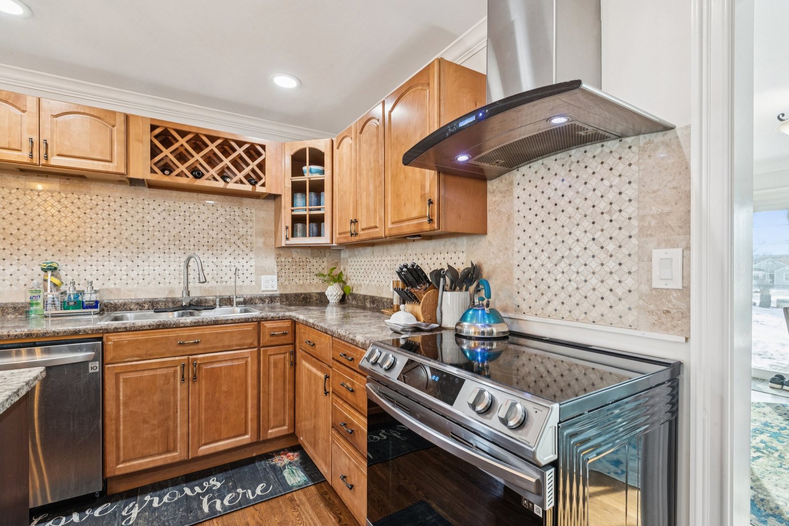 Welcome home to this beautifully renovated 4-bedroom, 3-full-bath home ideally located in desirable Hubbard Woods – Minutes to downtown Wauconda. Renovated in 2020, this home features a well-designed main floor with a spacious living room featuring a large bay window and electric fireplace that flows in to the kitchen with island and breakfast bar, pantry, and stainless steel appliances, plus a separate dining room ideal for entertaining. Three of the bedrooms are on the main floor including the primary bedroom that offers direct access to the backyard and includes a private en-suite bath with walk-in shower and heated floors. Two additional main-floor bedrooms share a hall bath with heated floors and a stacked washer and dryer for added convenience. The second floor features the fourth bedroom and a third full bath, offering a flexible layout perfect for a second primary suite, guest space, or in-law arrangement. The fully finished basement expands the living space with a large family room with a second electric fireplace, wet bar, wine storage, and exterior access-ideal for entertaining or relaxing. The large backyard with patio provides plenty of space to enjoy summer evenings. The attached 1.5 car garage features a newer heater. Major updates include a new roof (2020), new siding (2016), new windows (2022), and added attic and siding insulation (2016). Additionally there are hookups for a hot tub and roof de-icer. Enjoy lake living with Bangs Lake just a few blocks away providing easy access to Phil’s Beach, Lindy’s Landing, the marina & access. Tucked away in a quiet neighborhood this property is near Wauconda Middle School, shopping & dining making it the perfect place to start your next chapter.