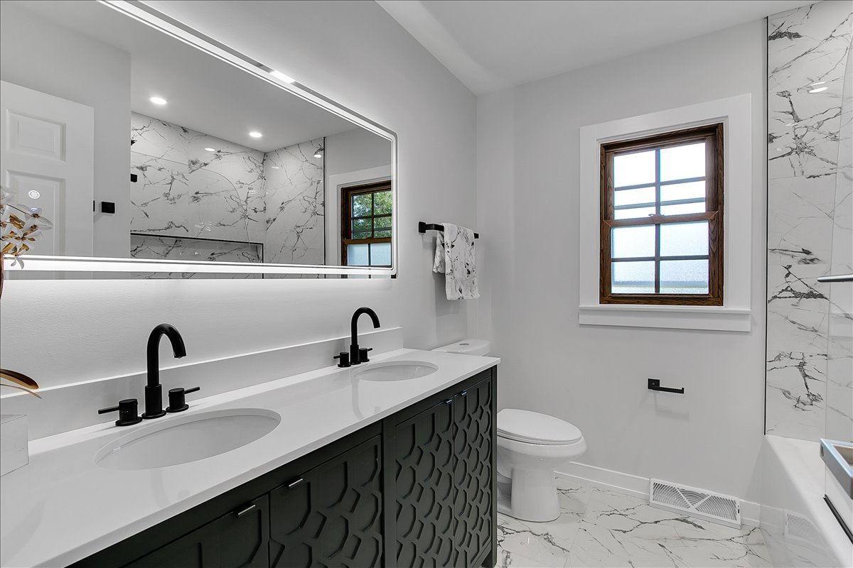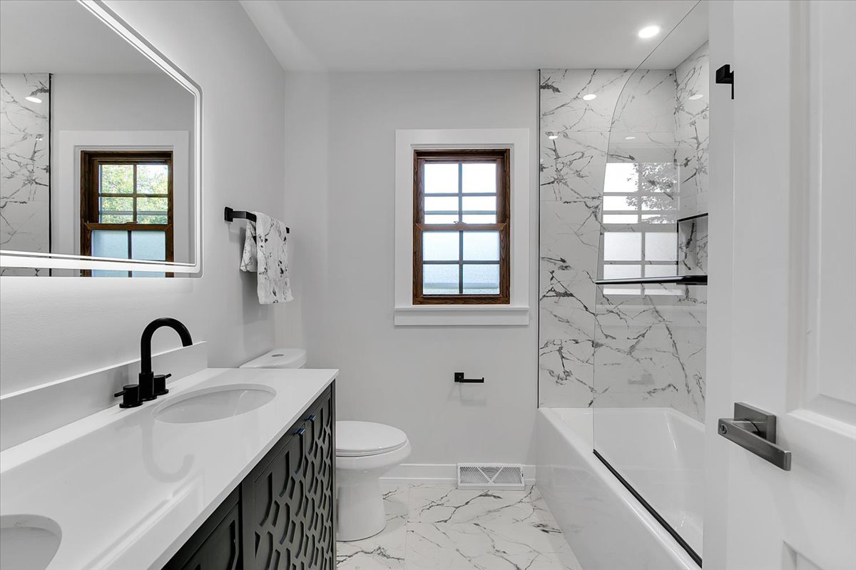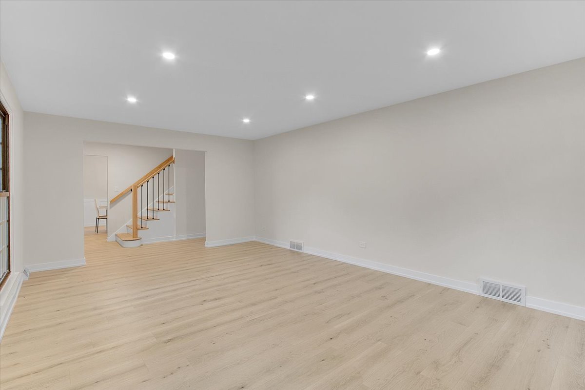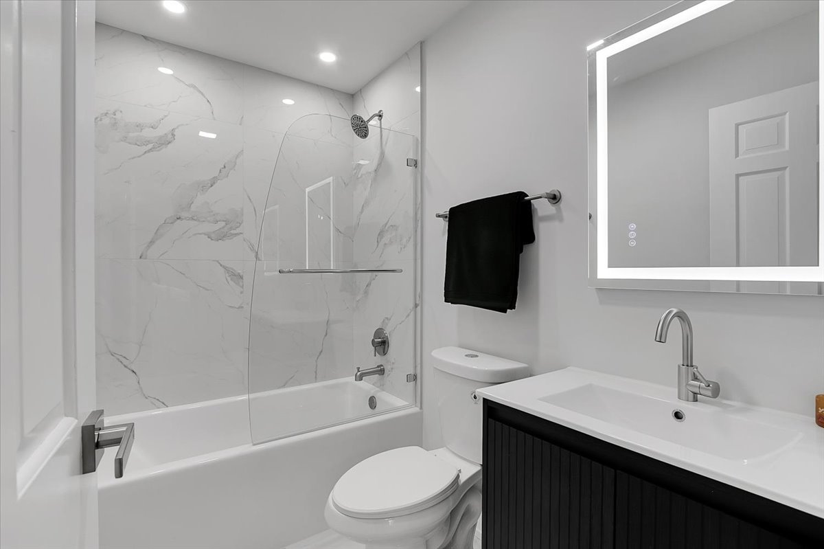 Discover refined comfort in this stunning two-story home offering 5 bedrooms,. 2,5 bathrooms, and over 3,400 sgft of elegant living space. Step inside to a bright, open-concept main level featuring designer finishes, including hardwood laminate floors and a gourmet kitchen with custom white shaker cabinetry, sleek quartz countertops, and brand-new stainless steal appliances. The upper level showcases four spacious bedrooms with walk in closets including a serene primary suite, and two modern full bathrooms.Gleaming hardwood floors add timeless sophistication throughout. personal retreat. Finished basement provides an additional bedroom and flexible living space for work or leisure. Outdoors, an oversized deck invites you to relax or entertain in style, surrounded by ample space for gathering This move-in ready house combines modern design, thoughtful details, and luxurious comfort -a rare opportunity you won’t want to miss.
