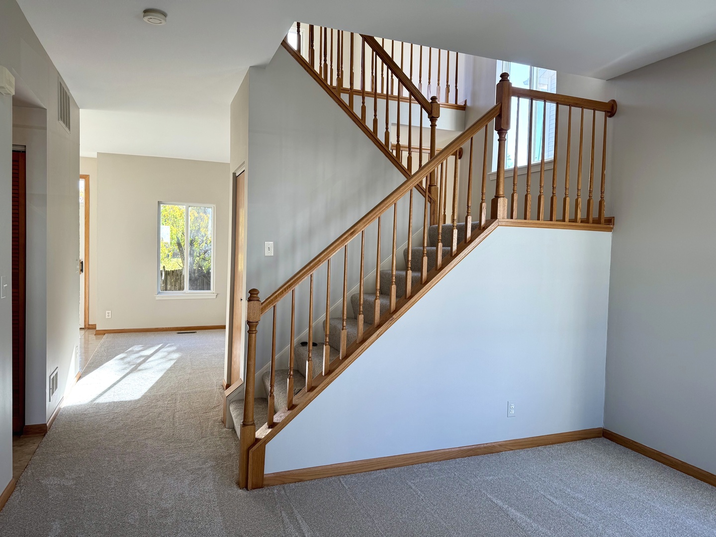 Perfectly situated near open greenspace, this rarely available Camden Model townhome in Lakewood Falls is move-in ready. A charming front porch welcomes you into this well-maintained home, where major improvements have already been completed – including a new roof (2024) and new mechanicals: furnace, A/C, and water heater (2023). The interior has been freshly painted with new carpeting installed throughout. This 2-bedroom, 2.1-bath home offers approximately 1,400 sq ft of comfortable living space, plus a bright, sun-filled loft-perfect for an office, flex area, or easily enclosed for a third bedroom. The spacious primary suite features a walk-in closet and private en-suite bath, while a second full bath serves the additional bedroom. Convenient second-floor laundry adds everyday ease. The main level includes an inviting living room, a half bath, and direct access to the attached one-car garage. Off the spacious kitchen is an additional family room or den, creating an open and flexible layout with seamless access to the lush, fully fenced backyard-complete with a large stamped concrete patio perfect for outdoor enjoyment. Located in an unincorporated area within the desirable Lakewood Falls community, this duplex offers low taxes and convenient access to parks, schools, shopping, walking paths, and open space.