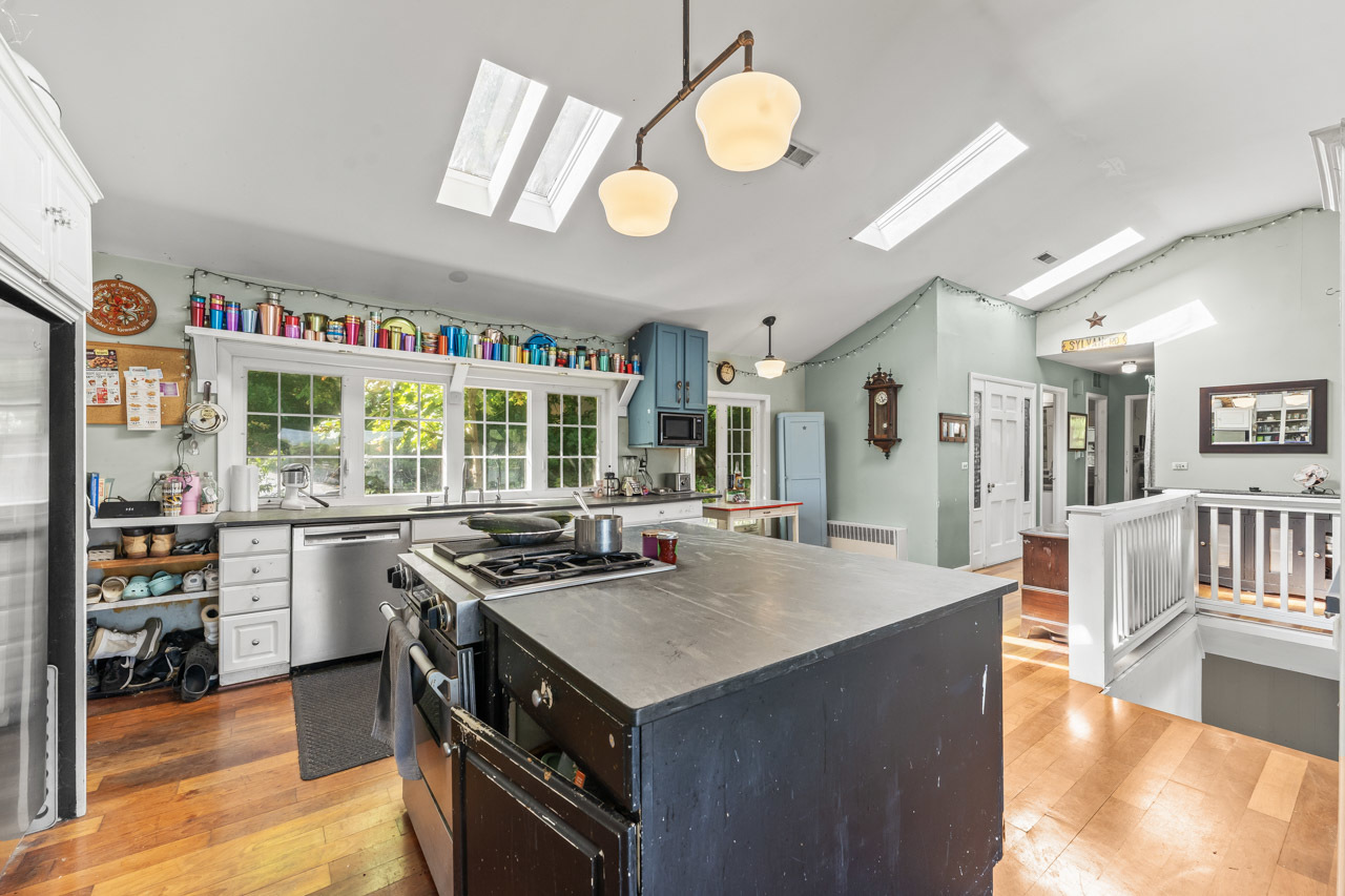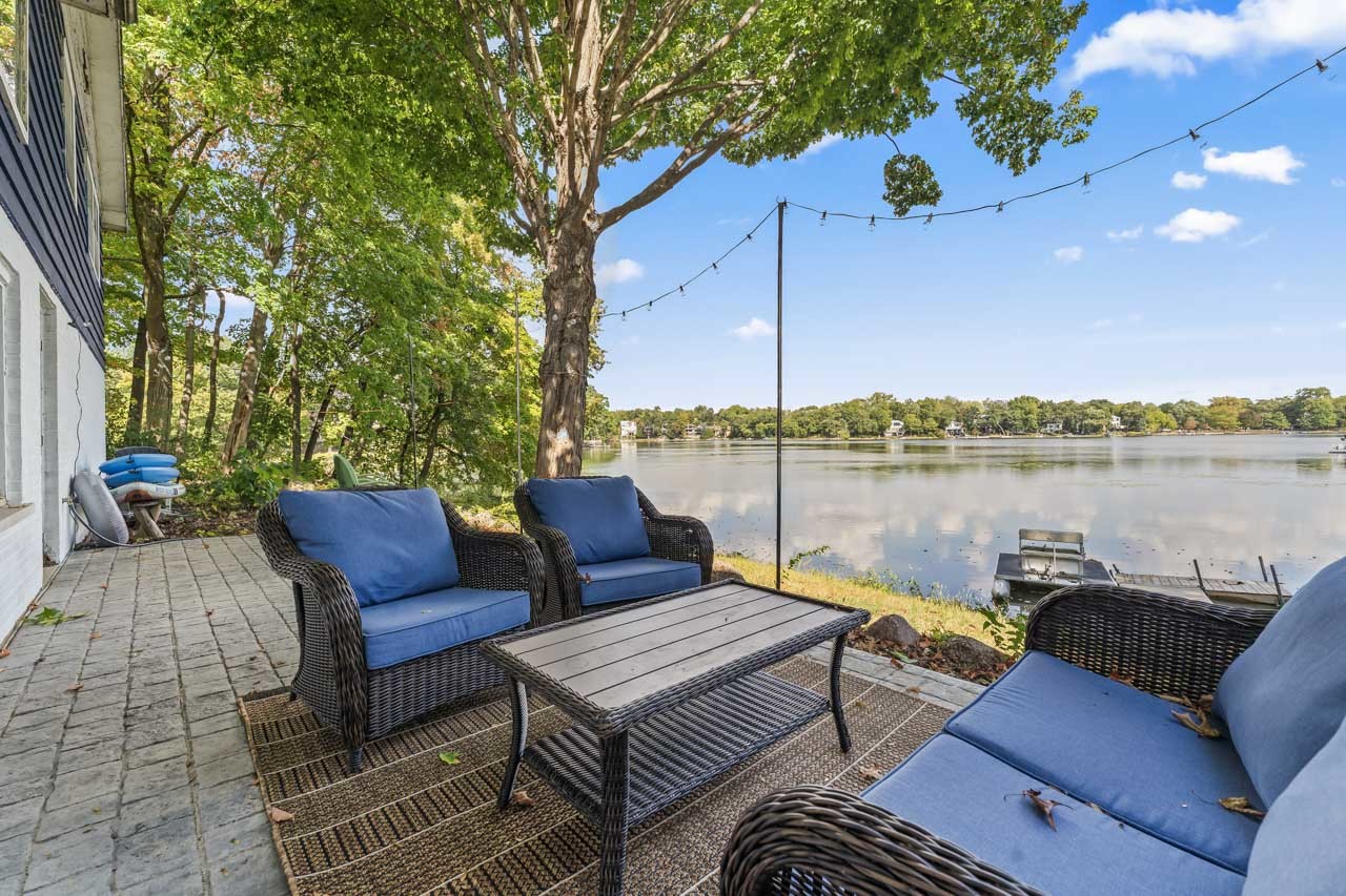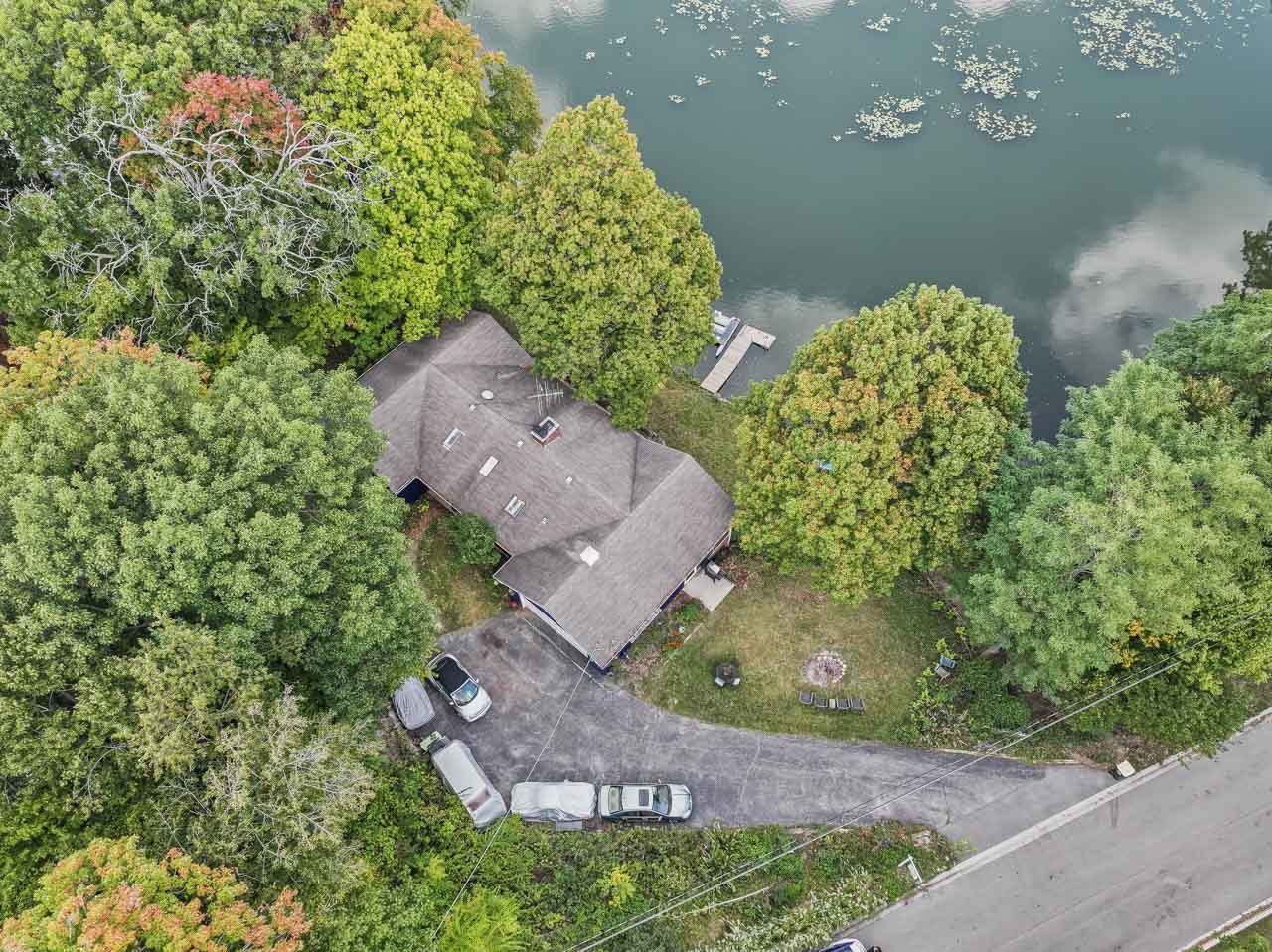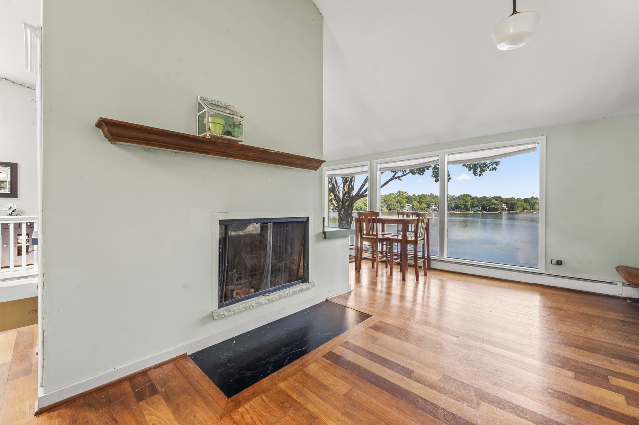 Waterfront on Sylvan Lake! Experience lakefront living with this ranch home featuring a walk-out basement, set on nearly an acre (.85 acres) in the highly sought-after Sylvan Lake community. From the moment you enter, you’re welcomed by a dramatic wall of windows framing serene lake views. The open-concept kitchen, living room, and dining room boast cathedral ceilings, skylights, Brazilian Cherry floors, and a double-sided fireplace. The kitchen offers soapstone counters, a spacious island perfect for gatherings, and direct access to the garage for easy grocery unloading. Off the dining room, a screened-in porch overlooks the pier-an ideal spot to relax and enjoy the outdoors. The primary suite features lake views, a walk-in closet, and an ensuite bathroom ready for your finishing touches. Two additional bedrooms, each with hardwood floors and wall closets, share the hall bath. The walk-out lower level expands your living space with heated floors, a wood-burning fireplace, another wall of windows, a family room, full bath with shower, laundry area, and a large unfinished storage/workshop. Step outside to the stamped concrete patio for lakeside enjoyment. Additional highlights include: Oversized lot extending from the neighbor’s pier to an association-owned parcel. Long driveway with parking for 6+ cars, plus a 2-car garage. Fremont School District. Boiler heat and central air. This home does require some work-yet it’s a rare chance to own nearly an acre of waterfront property with tremendous potential in one of the area’s most desirable communities.