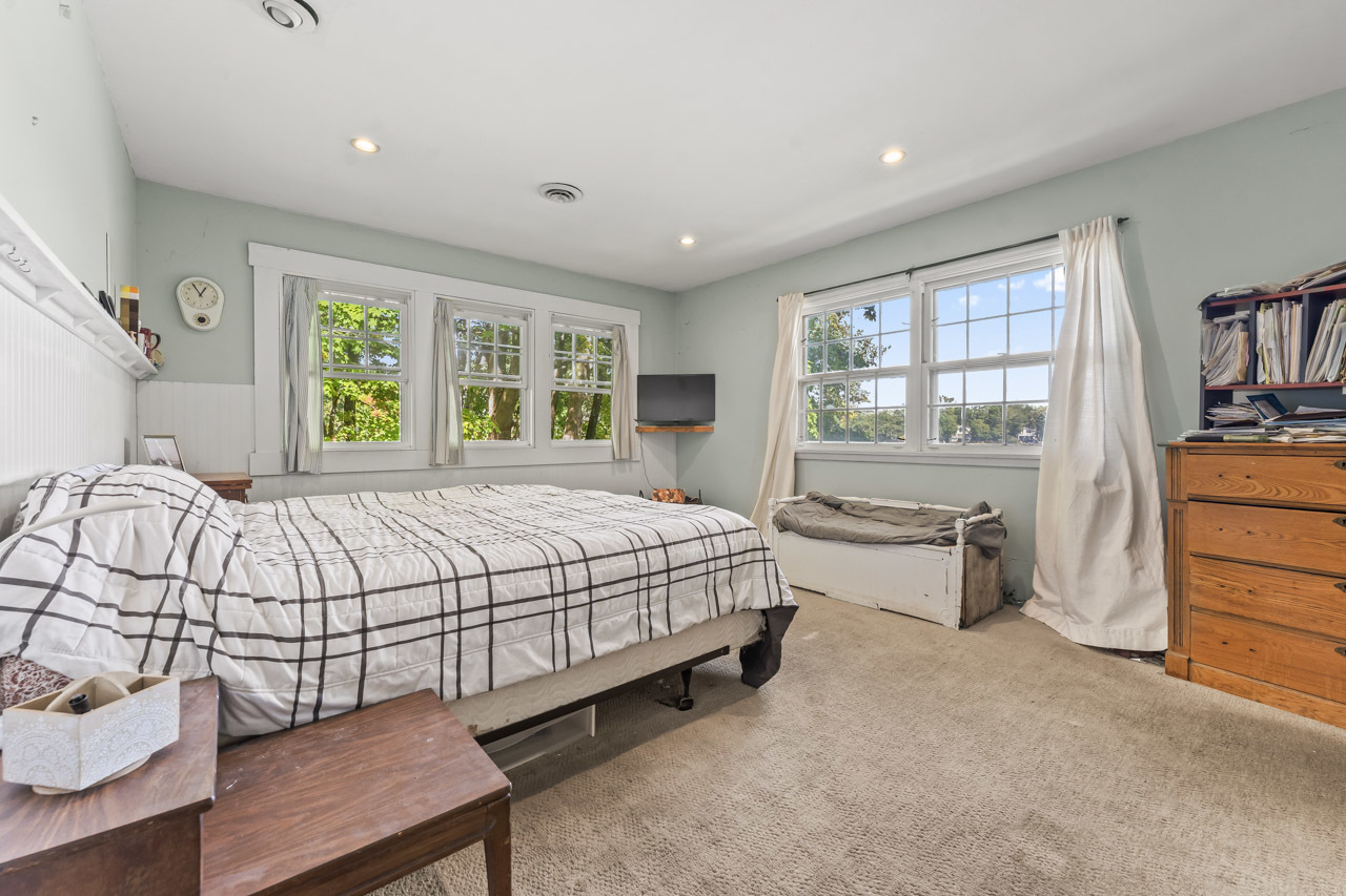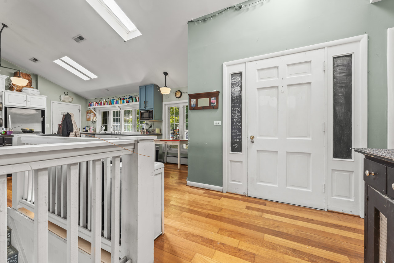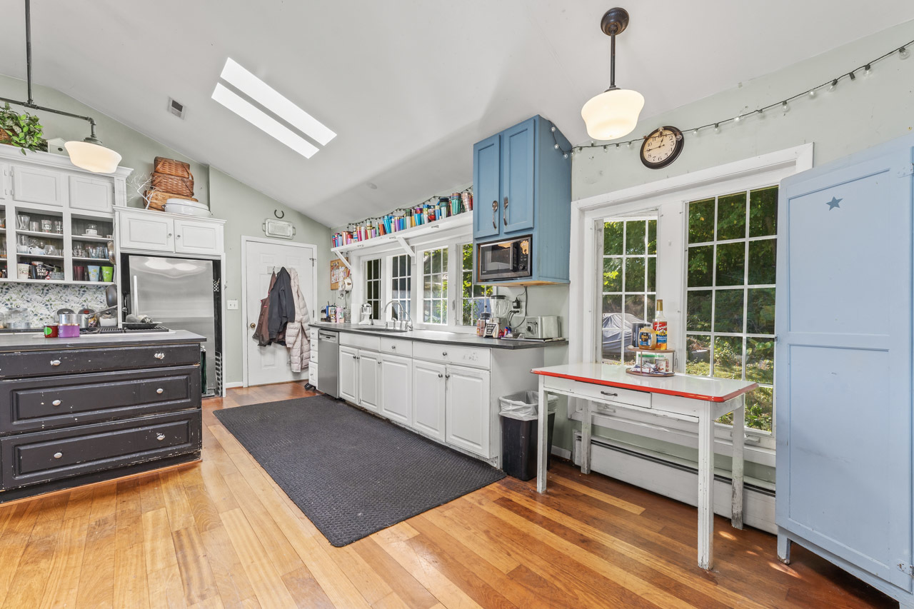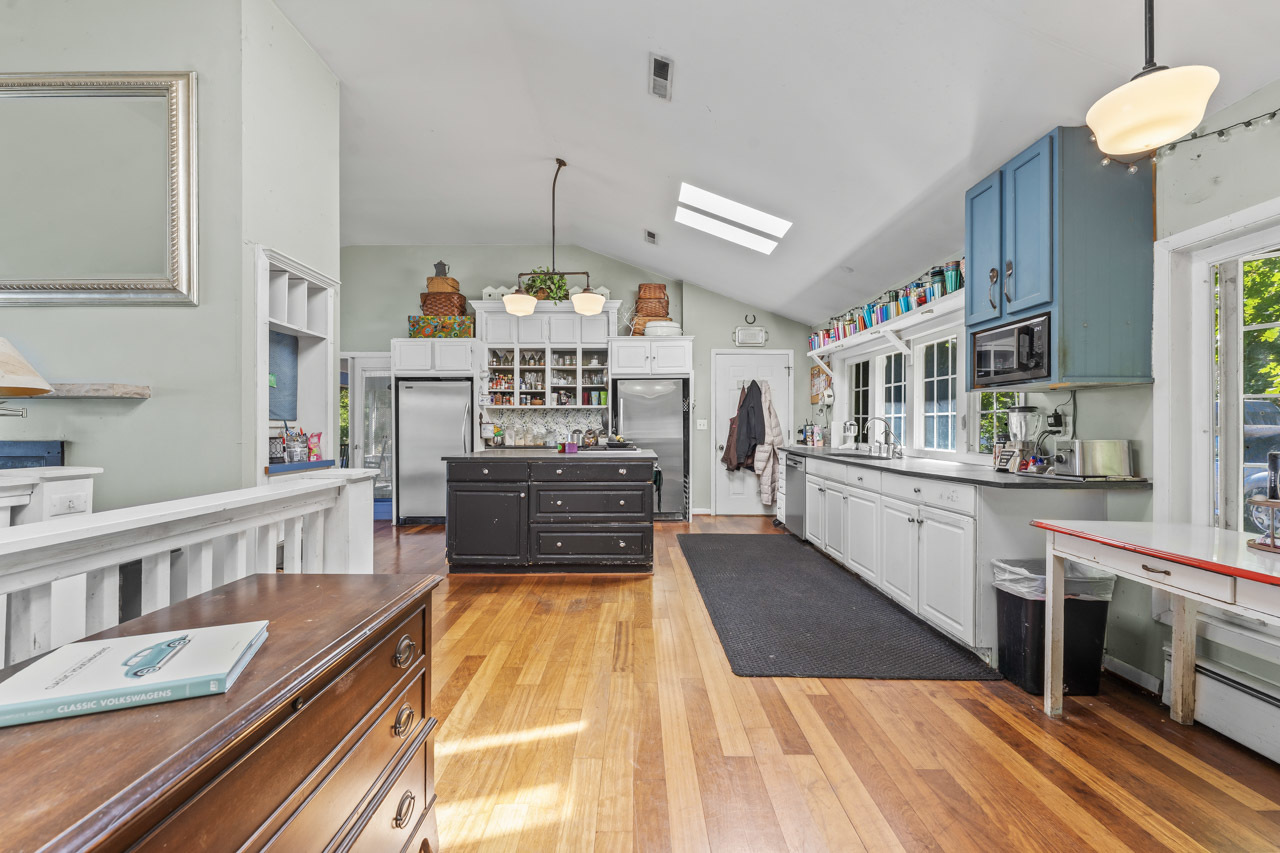 Waterfront on Sylvan Lake! Experience lakefront living with this ranch home featuring a walk-out basement, set on nearly an acre (.85 acres) in the highly sought-after Sylvan Lake community. From the moment you enter, you’re welcomed by a dramatic wall of windows framing serene lake views. The open-concept kitchen, living room, and dining room boast cathedral ceilings, skylights, Brazilian Cherry floors, and a double-sided fireplace. The kitchen offers soapstone counters, a spacious island perfect for gatherings, and direct access to the garage for easy grocery unloading. Off the dining room, a screened-in porch overlooks the pier-an ideal spot to relax and enjoy the outdoors. The primary suite features lake views, a walk-in closet, and an ensuite bathroom ready for your finishing touches. Two additional bedrooms, each with hardwood floors and wall closets, share the hall bath. The walk-out lower level expands your living space with heated floors, a wood-burning fireplace, another wall of windows, a family room, full bath with shower, laundry area, and a large unfinished storage/workshop. Step outside to the stamped concrete patio for lakeside enjoyment. Additional highlights include: Oversized lot extending from the neighbor’s pier to an association-owned parcel. Long driveway with parking for 6+ cars, plus a 2-car garage. Fremont School District. Boiler heat and central air. This home does require some work-yet it’s a rare chance to own nearly an acre of waterfront property with tremendous potential in one of the area’s most desirable communities.