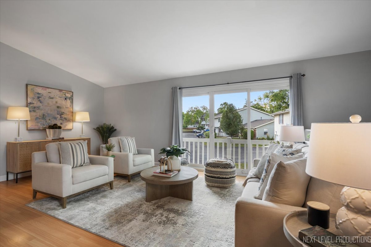 This beautifully updated 2-bedroom condo welcomes you with an open floor plan, vaulted ceilings, and abundant natural light. The kitchen offers plenty of space for cooking and gathering, complete with an eat-in area for casual dining. The spacious primary suite features a walk-in closet, while the second bedroom and full bath provide comfort and versatility. Enjoy the convenience of in-unit laundry, an attached 1-car garage, and sliding doors off the living room that bring the outdoors in. Nestled on a quiet cul-de-sac near schools and parks, with shopping, dining, and easy access to I-355 and I-290 just minutes away, this home blends comfort with convenience.