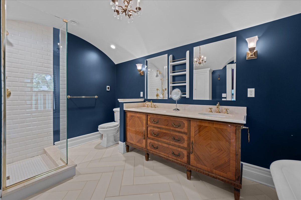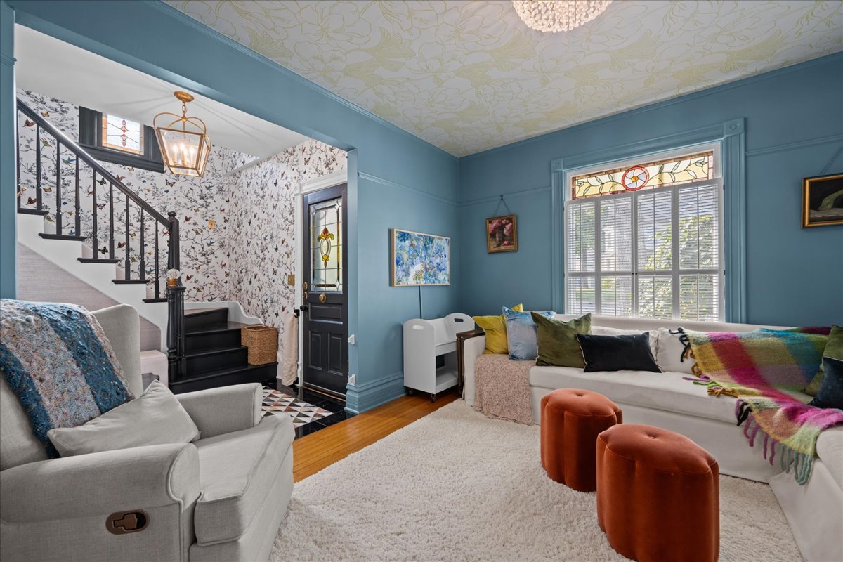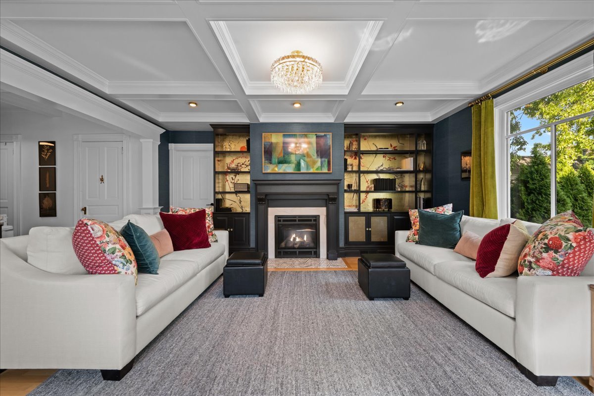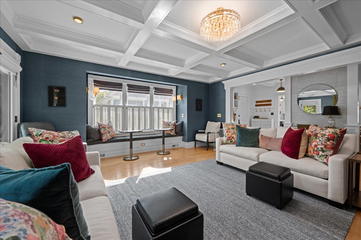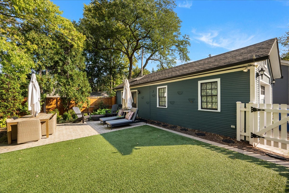 Location and Lifestyle-Step inside and fall in love! Experience downtown Geneva living at its finest in this designer-curated home. Every detail has been thoughtfully tailored, blending modern elegance with an effortless ‘happy living’ design. With its striking interiors and unparalleled location, this residence is as much a showpiece as it is a retreat – all just steps from the heart of Geneva’s dining, shopping, and vibrant city energy. A welcoming front porch invites you inside, where hardwood floors throughout the first and second levels (many original) and 9-foot ceilings in the living and dining rooms create an open, elegant feel. A plaque featuring the original owner’s signature adds a historic touch, while designer lighting throughout brings polished, contemporary flair. The bright, inviting kitchen features soapstone countertops, Carrara marble backsplash, high-end appliances, and a spacious walk-in pantry. An addition expanded the home to include a breathtaking, light-filled family room with a coffered ceiling, custom cabinetry and bookcases, banquette seating, and a wall of windows that flood the space with natural light. At its heart, a gas fireplace with Artistic tile surround adds warmth and charm. Upstairs, the spacious primary suite, part of the newer addition, features vaulted ceilings, a custom walk-in closet, and a spa-like bath with a clawfoot tub, separate shower, heated floors, a gorgeous vintage vanity, and a striking barrel ceiling. A stylish hall bath and convenient second-level laundry serve the additional three bedrooms. Altogether, the home offers five bedrooms and four full baths. The main house includes four bedrooms and three full baths (one on the main level), while the adorable coach house adds a fifth bedroom and fourth bath with skylight and built-in dresser-perfect for a guest suite, home office, or studio. Outdoor spaces are equally enchanting, with recent updates including a brick paver patio, turf yard, privacy landscaping, cedar fence, and sprinkler system. The ribbon driveway leads to the detached one-car garage. Other recent improvements include a partially finished basement and cedar privacy fence (2025), water heater-coach house , HVAC (2024), AC, exterior paint, brick patio, landscaping, and kitchen updates (2023), designer lighting, wallpaper, and tile (2022), main house roof, addition windows (2016). Don’t miss this rare opportunity to own this stunning historic home in an unbeatable downtown location just steps away from dining, shopping and the Metra.
