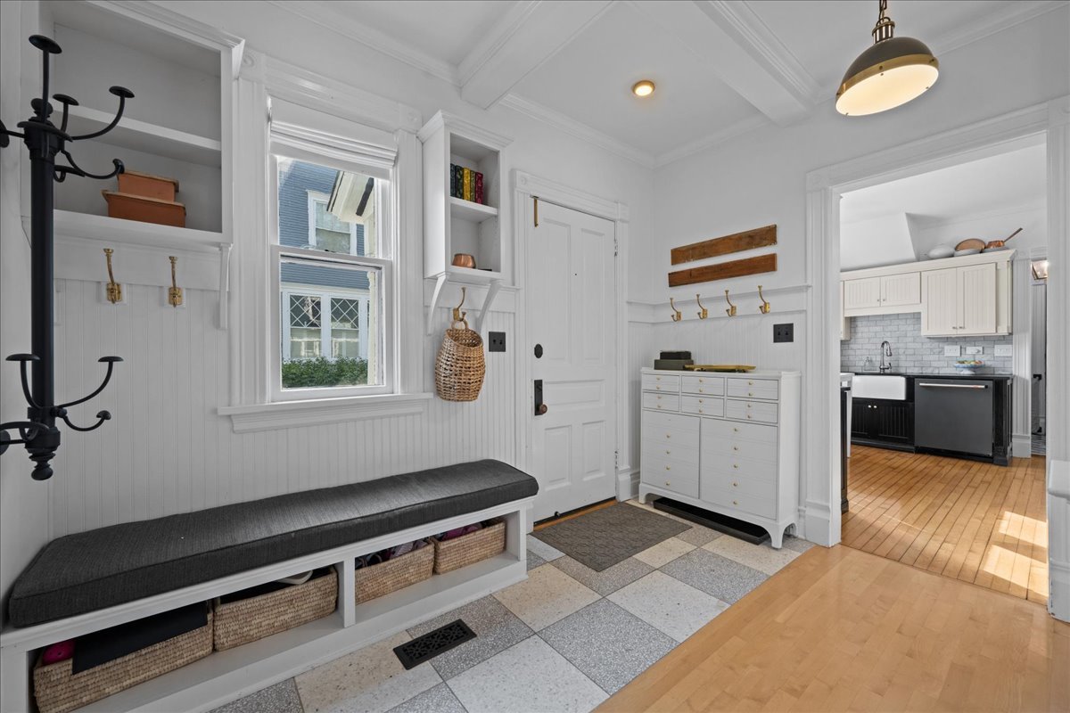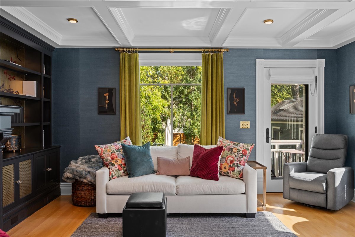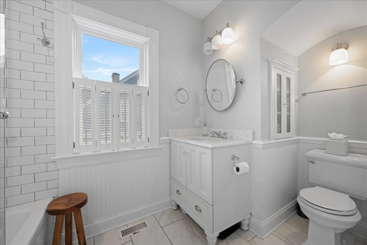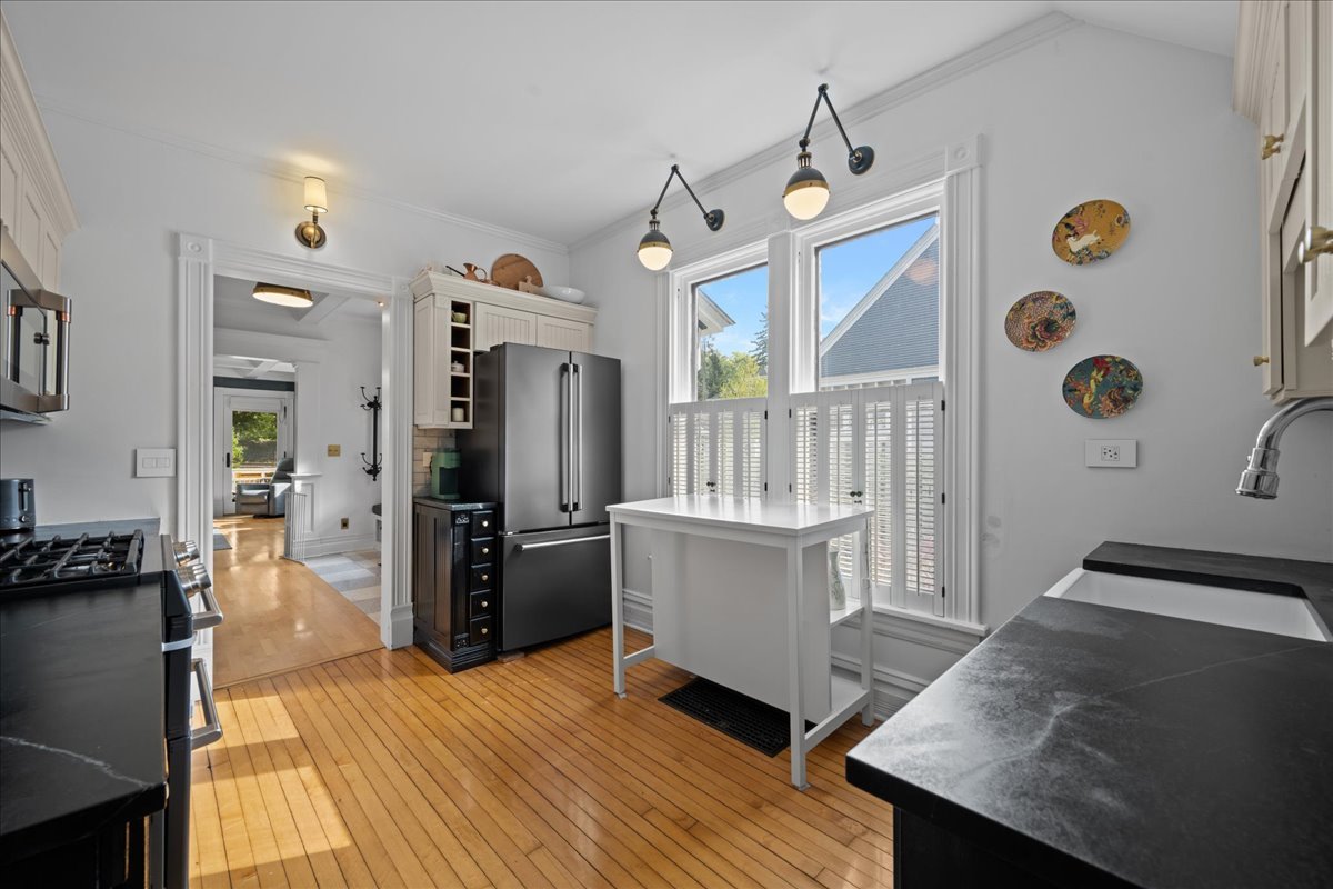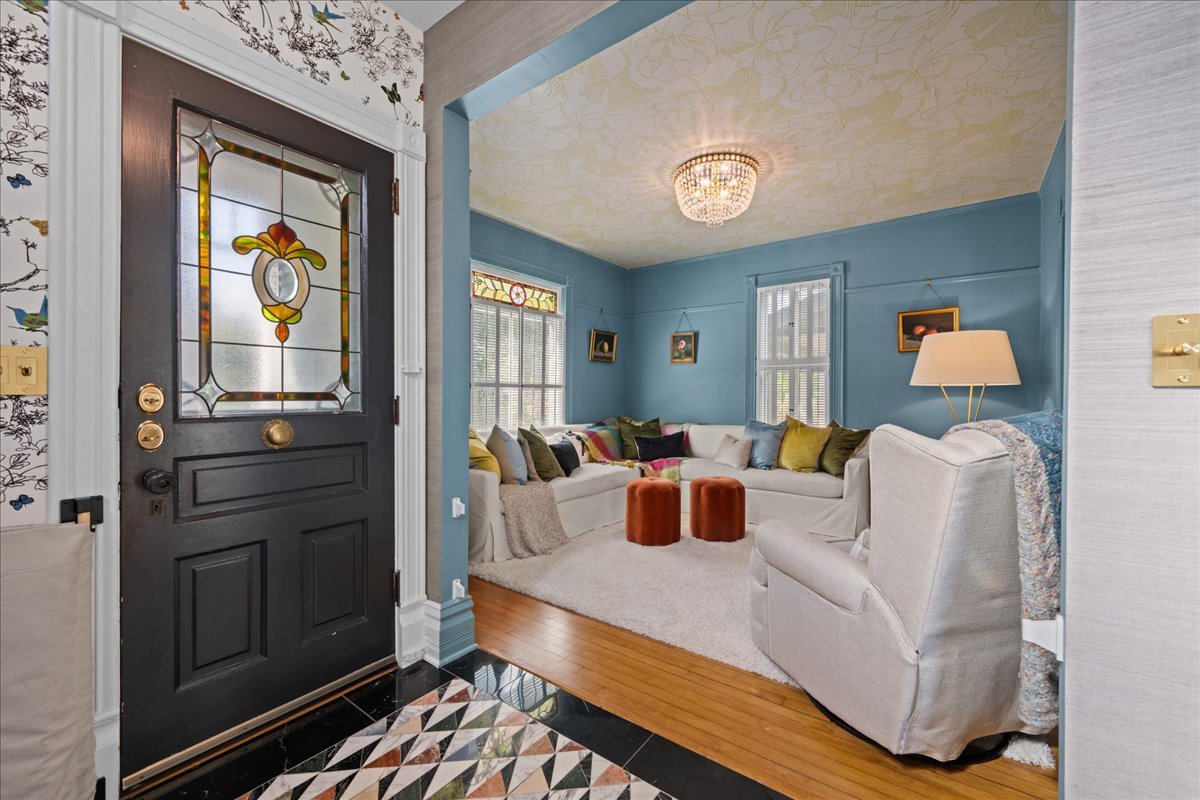 Location and Lifestyle-Step inside and fall in love! Experience downtown Geneva living at its finest in this designer-curated home. Every detail has been thoughtfully tailored, blending modern elegance with an effortless ‘happy living’ design. With its striking interiors and unparalleled location, this residence is as much a showpiece as it is a retreat – all just steps from the heart of Geneva’s dining, shopping, and vibrant city energy. A welcoming front porch invites you inside, where hardwood floors throughout the first and second levels (many original) and 9-foot ceilings in the living and dining rooms create an open, elegant feel. A plaque featuring the original owner’s signature adds a historic touch, while designer lighting throughout brings polished, contemporary flair. The bright, inviting kitchen features soapstone countertops, Carrara marble backsplash, high-end appliances, and a spacious walk-in pantry. An addition expanded the home to include a breathtaking, light-filled family room with a coffered ceiling, custom cabinetry and bookcases, banquette seating, and a wall of windows that flood the space with natural light. At its heart, a gas fireplace with Artistic tile surround adds warmth and charm. Upstairs, the spacious primary suite, part of the newer addition, features vaulted ceilings, a custom walk-in closet, and a spa-like bath with a clawfoot tub, separate shower, heated floors, a gorgeous vintage vanity, and a striking barrel ceiling. A stylish hall bath and convenient second-level laundry serve the additional three bedrooms. Altogether, the home offers five bedrooms and four full baths. The main house includes four bedrooms and three full baths (one on the main level), while the adorable coach house adds a fifth bedroom and fourth bath with skylight and built-in dresser-perfect for a guest suite, home office, or studio. Outdoor spaces are equally enchanting, with recent updates including a brick paver patio, turf yard, privacy landscaping, cedar fence, and sprinkler system. The ribbon driveway leads to the detached one-car garage. Other recent improvements include a partially finished basement and cedar privacy fence (2025), water heater-coach house , HVAC (2024), AC, exterior paint, brick patio, landscaping, and kitchen updates (2023), designer lighting, wallpaper, and tile (2022), main house roof, addition windows (2016). Don’t miss this rare opportunity to own this stunning historic home in an unbeatable downtown location just steps away from dining, shopping and the Metra.