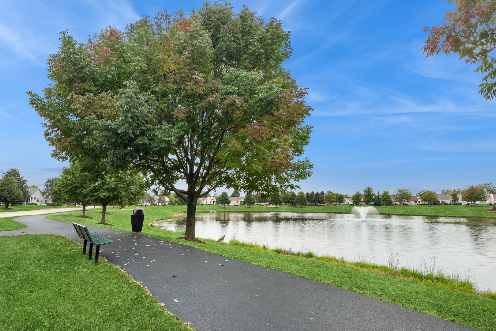 Move-in ready RANCH on one of the largest lots in Carillon Lakes 55+ Gated Community! Great Townhome alternative, with more windows, more privacy, with the same full service of the HOA! Premium location with a spacious backyard and pond views from the front. UPDATES THROUGHOUT – Furnace – 2024, Paint & Carpet 2025, Newer Washer & Dryer, Updated Hot Water Heater, MyQ garage door opener. This 2 bed, 2 baths model, features an open layout, 9′ ceilings, and plenty of storage space. The living and dining can fit most any furniture combination. Fantastic open floor plan. Living room is flooded with natural light. Dining area with newer chandelier and sliding doors to patio. Eat-in kitchen features oak cabinets, great counter space, appliances, planning desk, and plenty of space for a table! Primary suite offers walk-in closet and private bath with double vanity, soaking tub, and separate shower. Second bedroom ideal for guests, office, or hobbies. Enjoy the private patio with gas line for grilling. 2-car garage, excellent storage, and radon system. Resort-style amenities: gated community, private clubhouse, pools, fitness center, golf, tennis, lakes, and walking paths. PRIME LOT-don’t miss out!