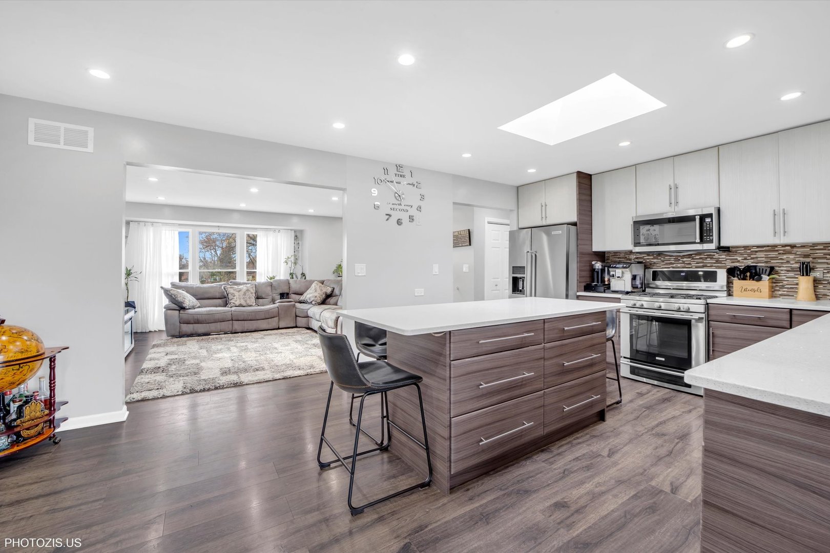 Beautifully remodeled home in the sought-after Forest Lake subdivision with private lake rights to a 42-acre lake. Offering two levels of living space, this home features 3 bedrooms and 3 full bathrooms. The main floor showcases a modern kitchen with two-tone cabinetry, quartz countertops, island, and stainless-steel appliances, opening to a spacious great room with hardwood floors and a dining area with recessed lighting. The primary suite includes a full bath, complemented by a second bedroom and another full bath. The finished lower level provides a large family room with a floortoceiling fireplace, third bedroom, and third full bath. Outside, enjoy a heated aboveground swimming pool in a big, fenced backyard with multiple fruit trees including peach, cherry, plum, and apple. Additional improvements include new doors, updated windows, water systems, and appliances, plus an undersink filtration system. As a resident of Forest Lake, you’ll enjoy private lake rights with yearround fishing, nonmotorized boating, swimming, and access to several parks, playgrounds, and beaches. Located in Spencer Loomis School District 95 with low taxes, convenient access to Quentin Rd, Rt 22, and Rand Rd, and close to shopping, dining, and recreation.