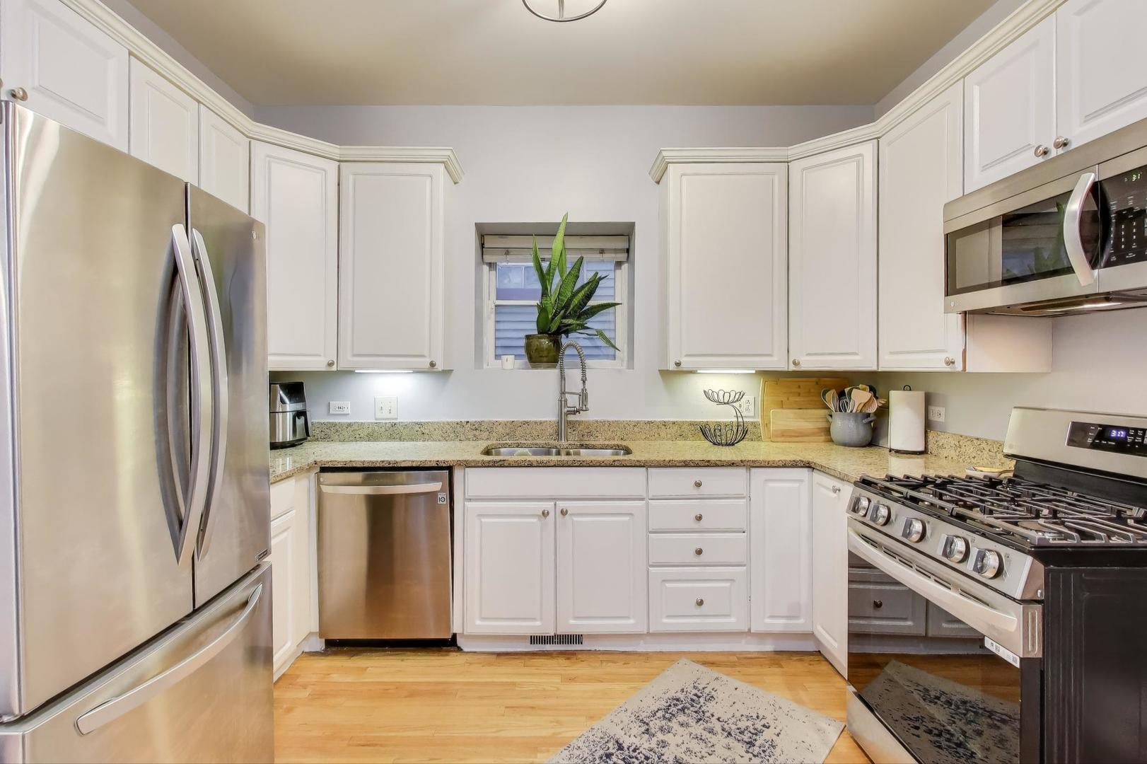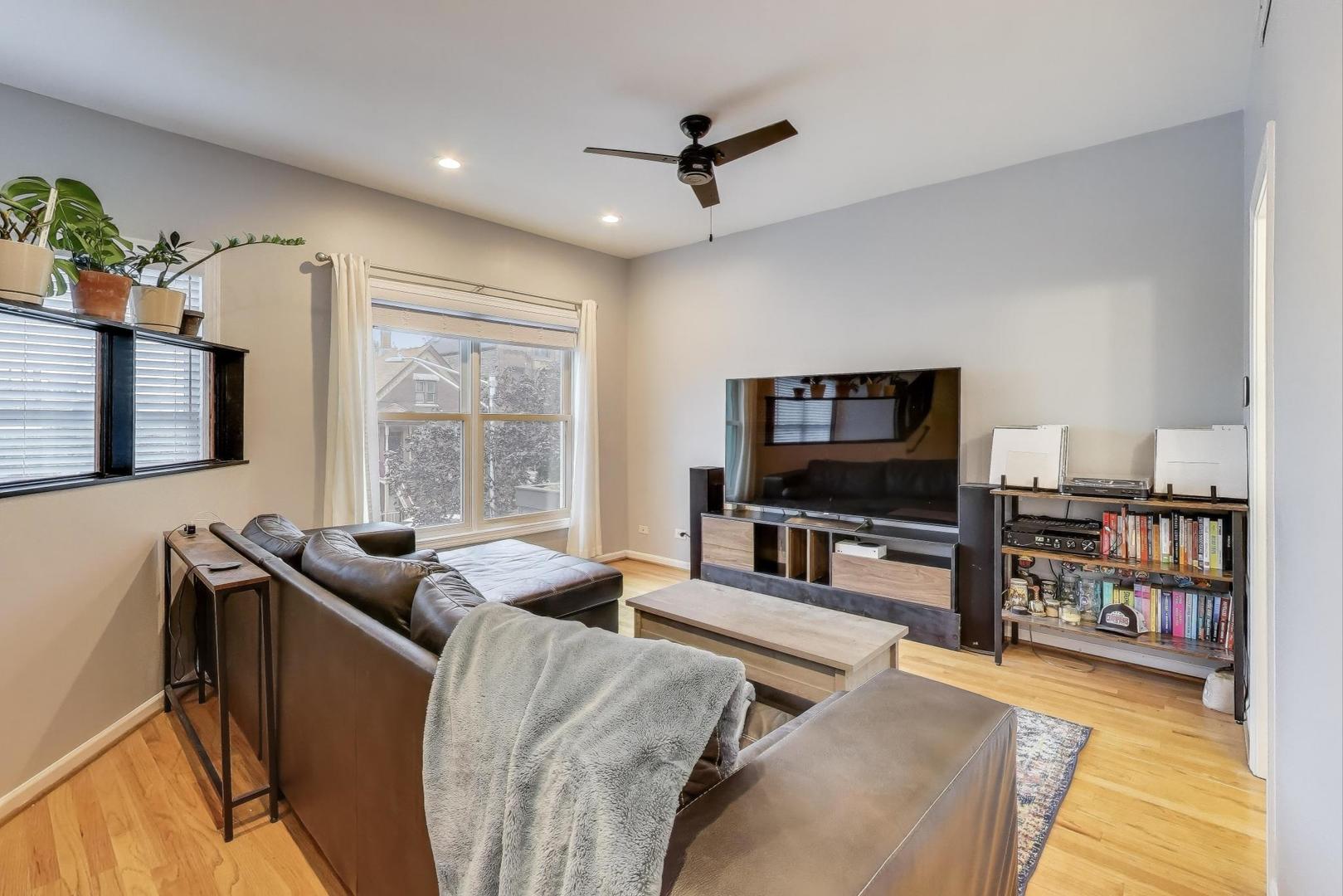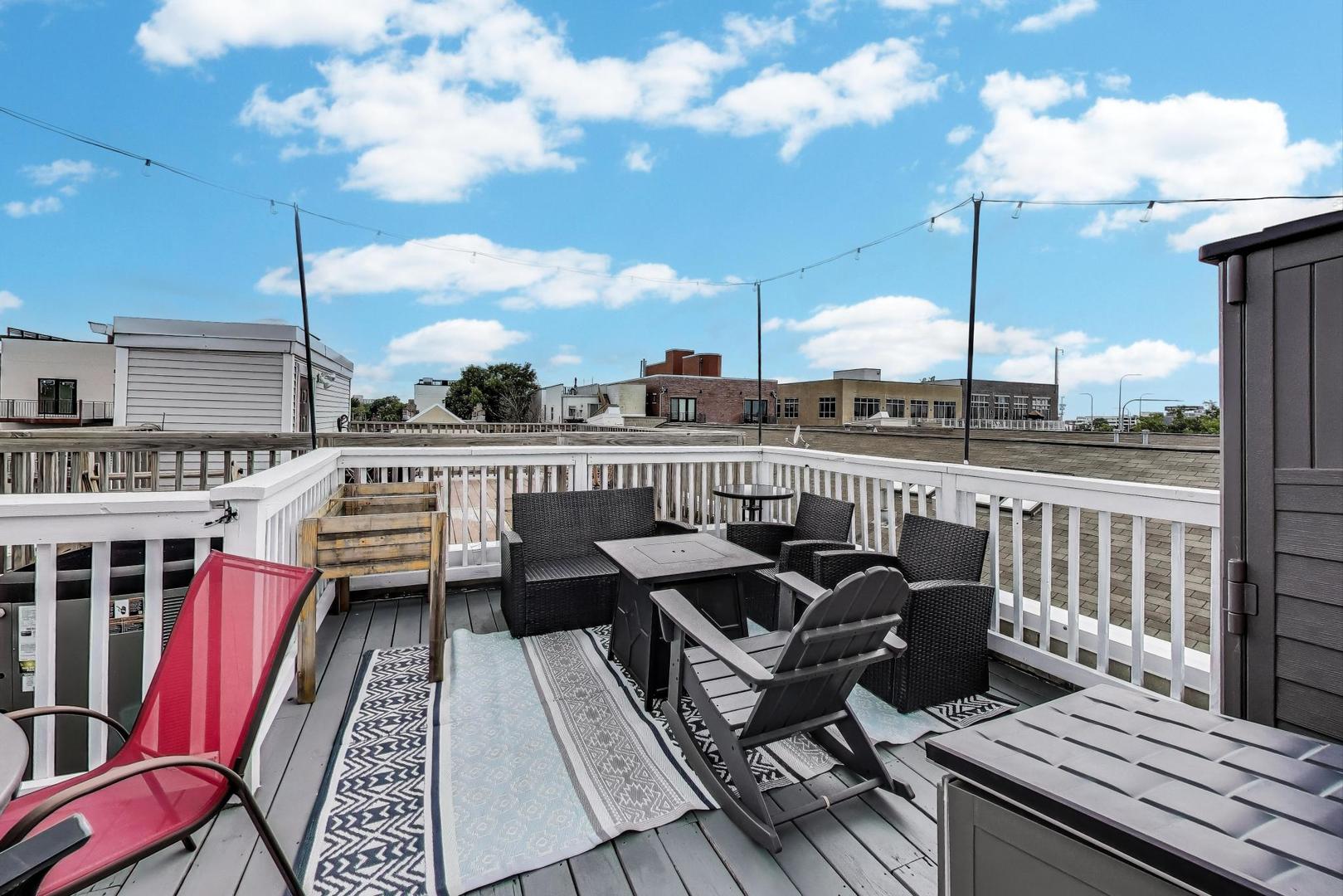 This is a spacious Fee Simple 4 level town home in prime BUCKTOWN. It has a great separation of space perfect for work from home. After you enter from the garage or frontdoor into the large foyer with tons of storage and room to take off your coat and boots, you will find the large 13 x 14 den / bedroom / office with a gas fire place, storage and built-in laundry closet. Head upstairs to cook in the large eat-in kitchen which is adjacent to the bright and nicely sized family room area. A 1/2 bath, great for entertaining, completes this floor. The next level houses the other two generously sized bedrooms and a full bath in between. There is a bonus area attached to the second bedroom that is a perfect office space. Finally, head up to the fabulous roof top deck area with over 500 SF of unobstructed views of the city and the skyline. The current owners lovingly cared for this home: NuCore Performance Flooring was added throughout the bedroom floor and connecting stairs up and down. Some minor fixing of roof flashing / regular maintenance was performed on the roof. The kitchen has a suite of LG stainless appliances from 2018 with a very new LG oven completing this package . They replaced all of the windows on the second level, primary bedroom and put in a new front door, making it easy for the LENOX smart thermostat to keep the home comfortable all year round. All of these upgrades wrapped up in a recently repainted home.. ready for you go make your own.
