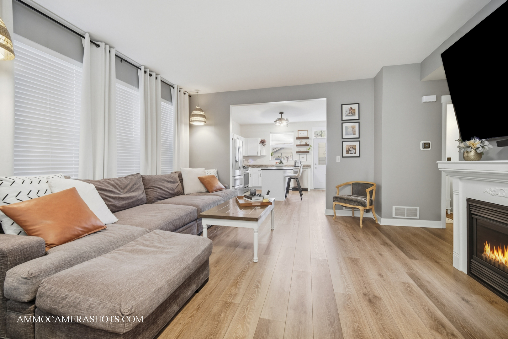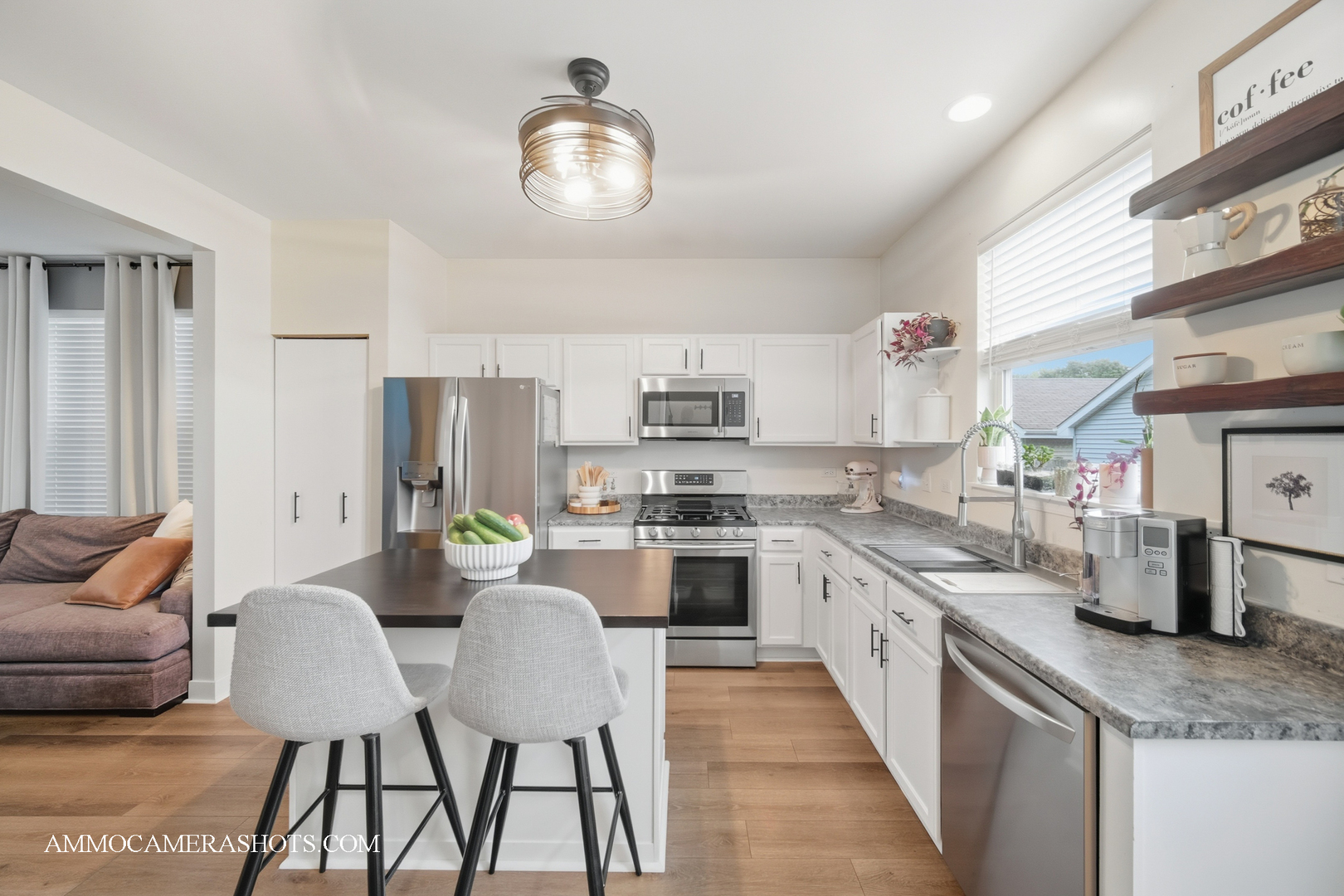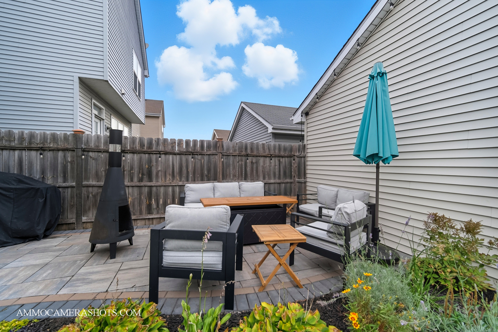 This is it! Truly adorable 2-bedroom, 2.5-bath home featuring a bright, open floor plan and numerous updates throughout. The main floor features luxury vinyl plank flooring and has a spacious, light-filled living room with a charming electric fireplace opens to a stylish eat-in kitchen with white cabinetry, a center island, and stainless-steel appliances. A beautifully remodeled half bath completes the main level. Upstairs, both bedrooms offer walk-in closets and their own private updated en-suite baths. Step outside to a stunning backyard oasis with a paver and stone patio-perfect for relaxing or entertaining. The full unfinished basement provides endless possibilities, and the fully fenced, landscaped yard offers plenty of room to play and unwind. Enjoy peace of mind with new flooring, fresh paint, updated appliances, newer HVAC, and a sump pump. A wonderful home at a great price in a fantastic location!