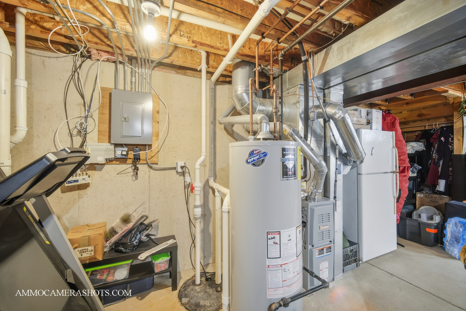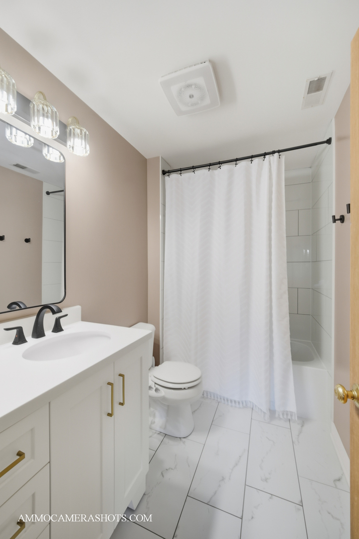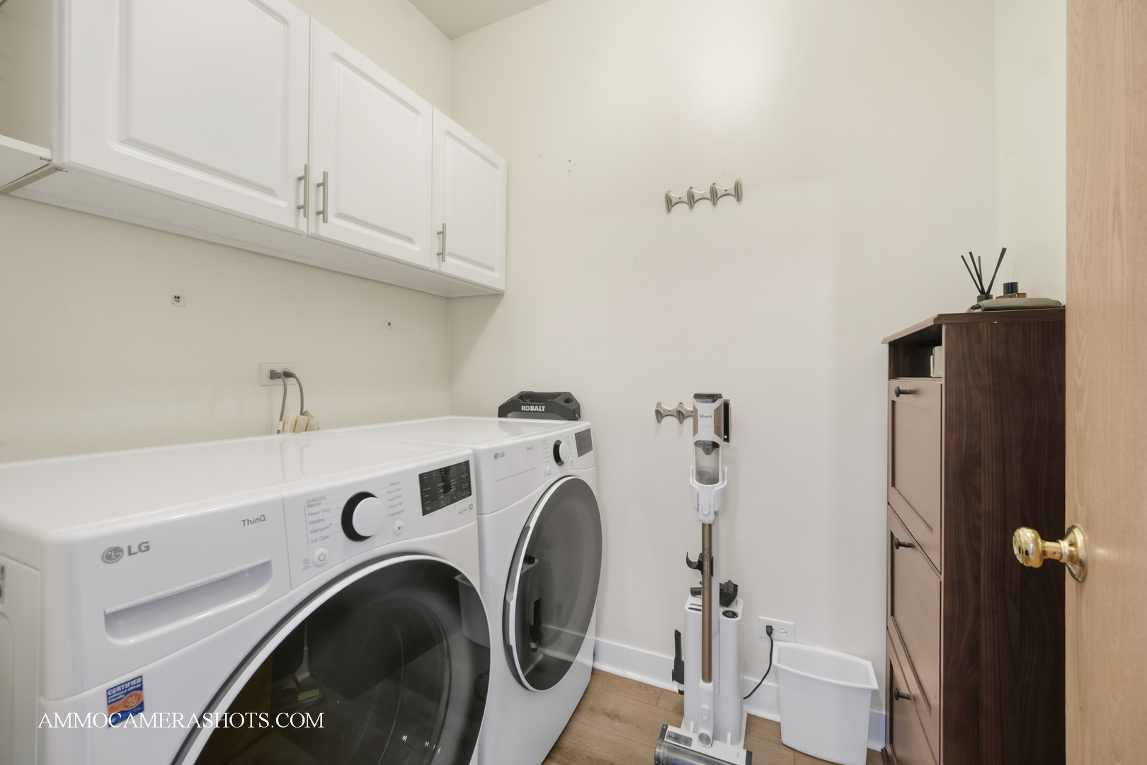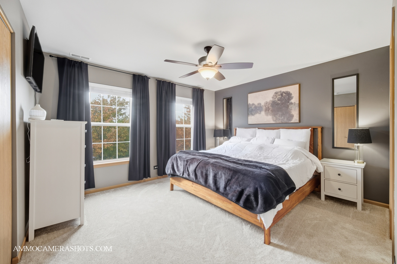 This is it! Truly adorable 2-bedroom, 2.5-bath home featuring a bright, open floor plan and numerous updates throughout. The main floor features luxury vinyl plank flooring and has a spacious, light-filled living room with a charming electric fireplace opens to a stylish eat-in kitchen with white cabinetry, a center island, and stainless-steel appliances. A beautifully remodeled half bath completes the main level. Upstairs, both bedrooms offer walk-in closets and their own private updated en-suite baths. Step outside to a stunning backyard oasis with a paver and stone patio-perfect for relaxing or entertaining. The full unfinished basement provides endless possibilities, and the fully fenced, landscaped yard offers plenty of room to play and unwind. Enjoy peace of mind with new flooring, fresh paint, updated appliances, newer HVAC, and a sump pump. A wonderful home at a great price in a fantastic location!