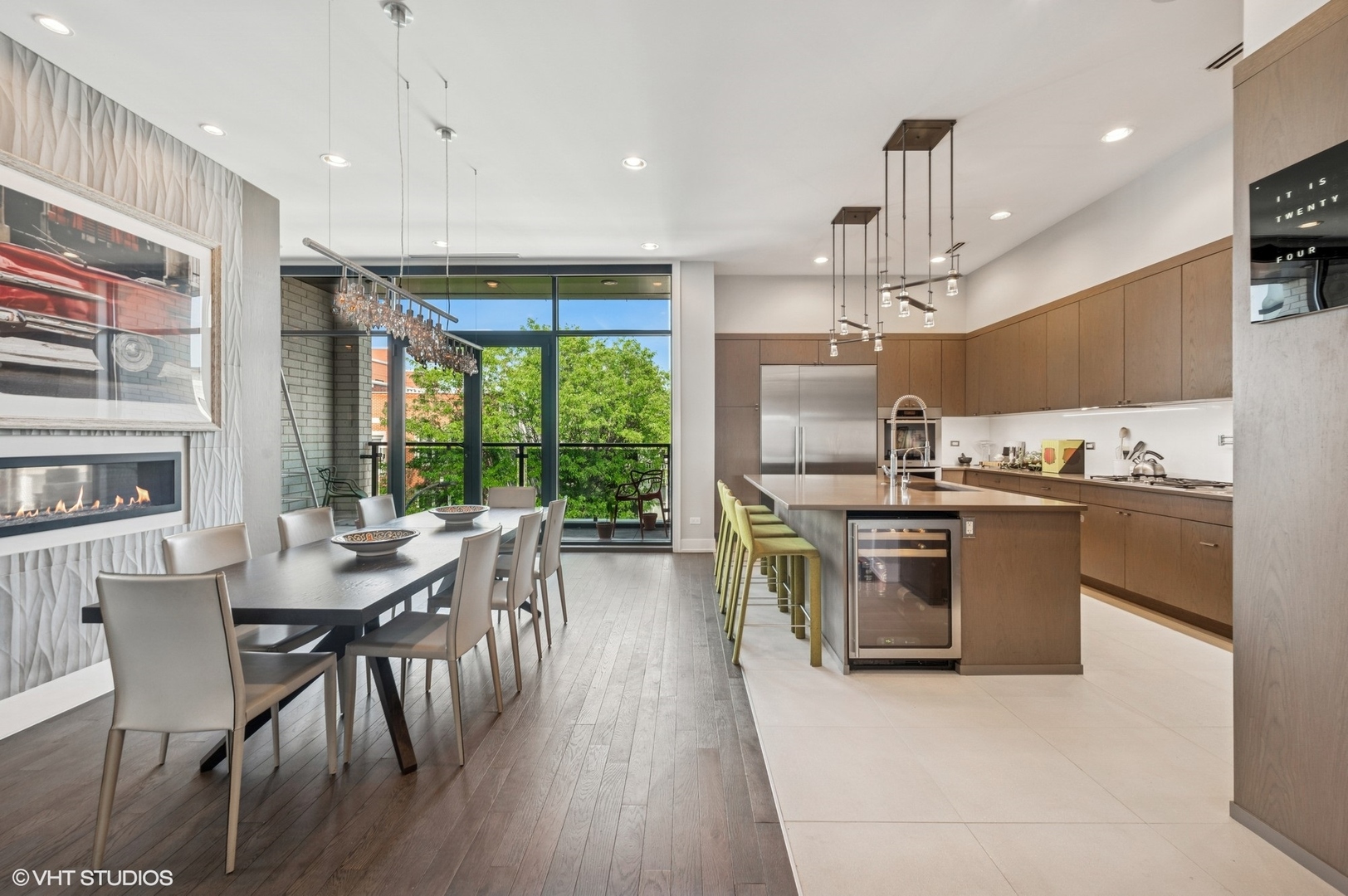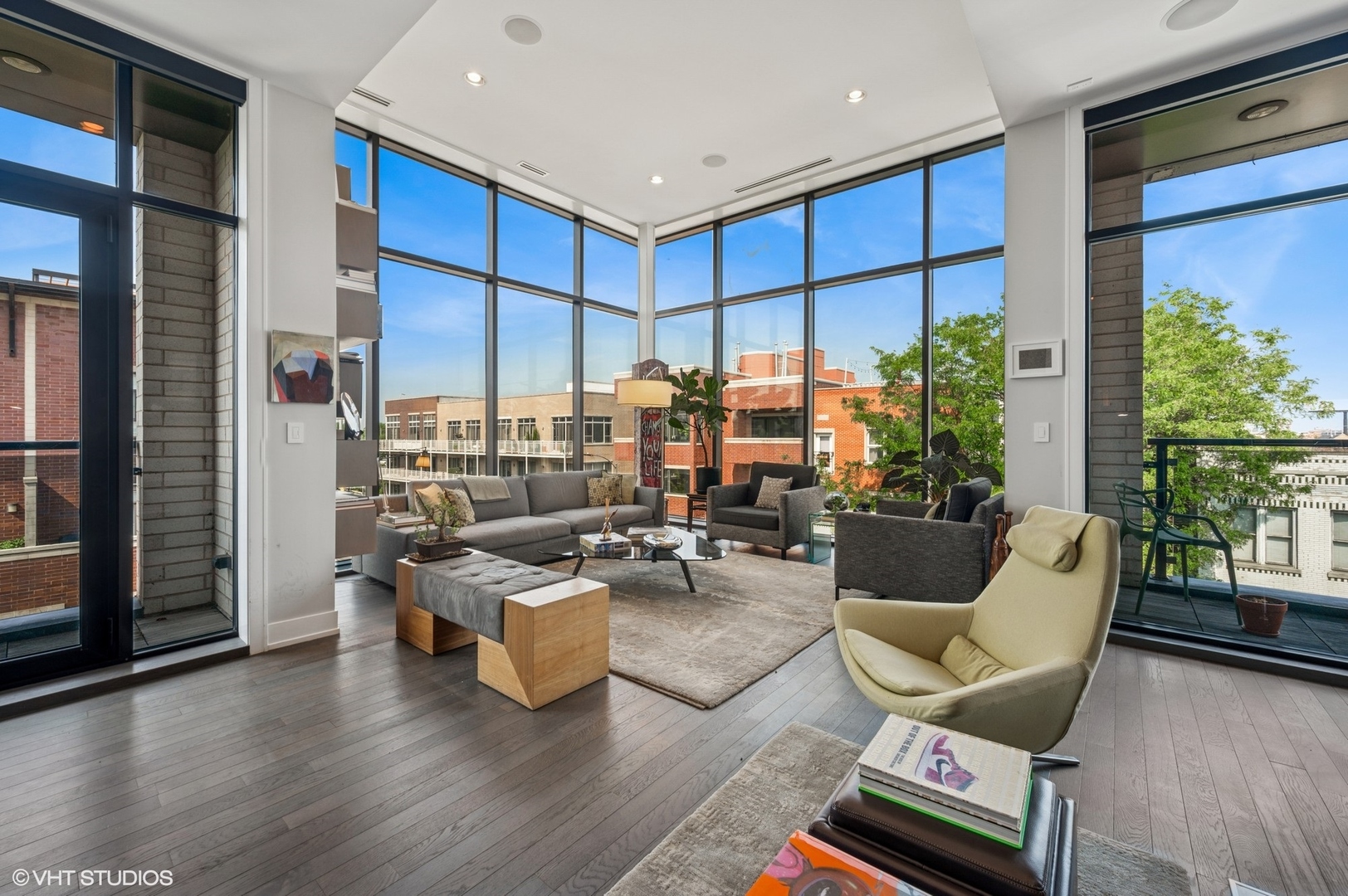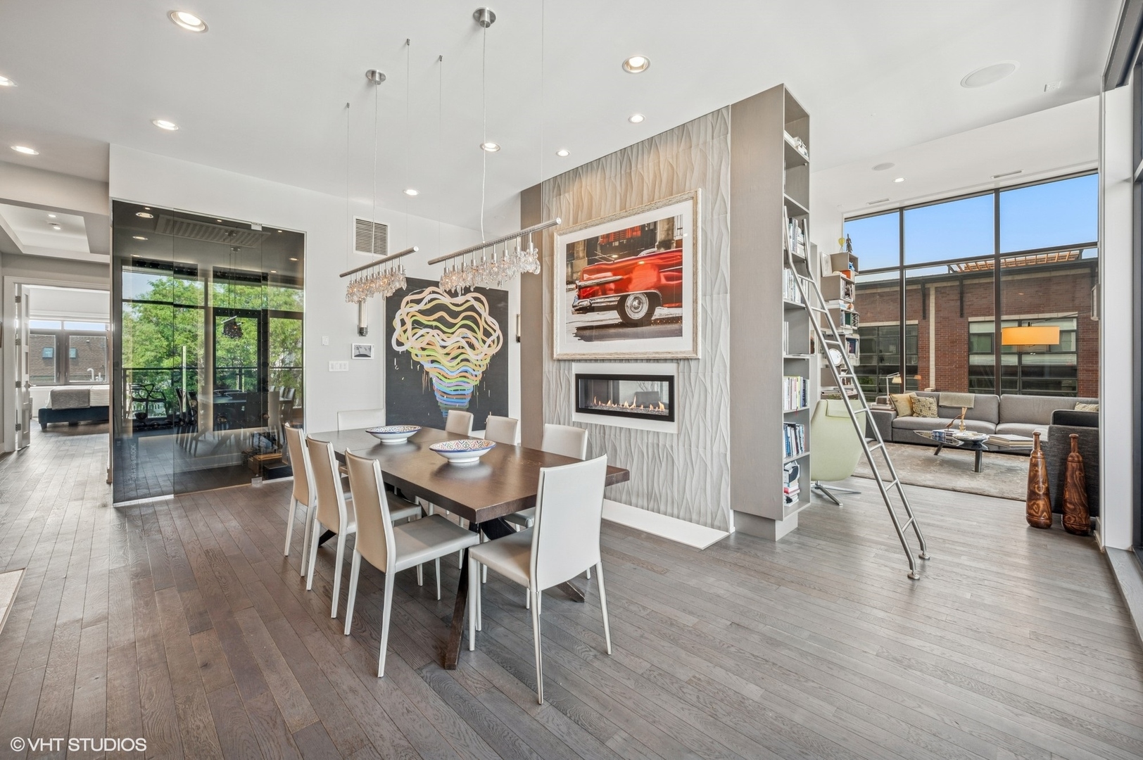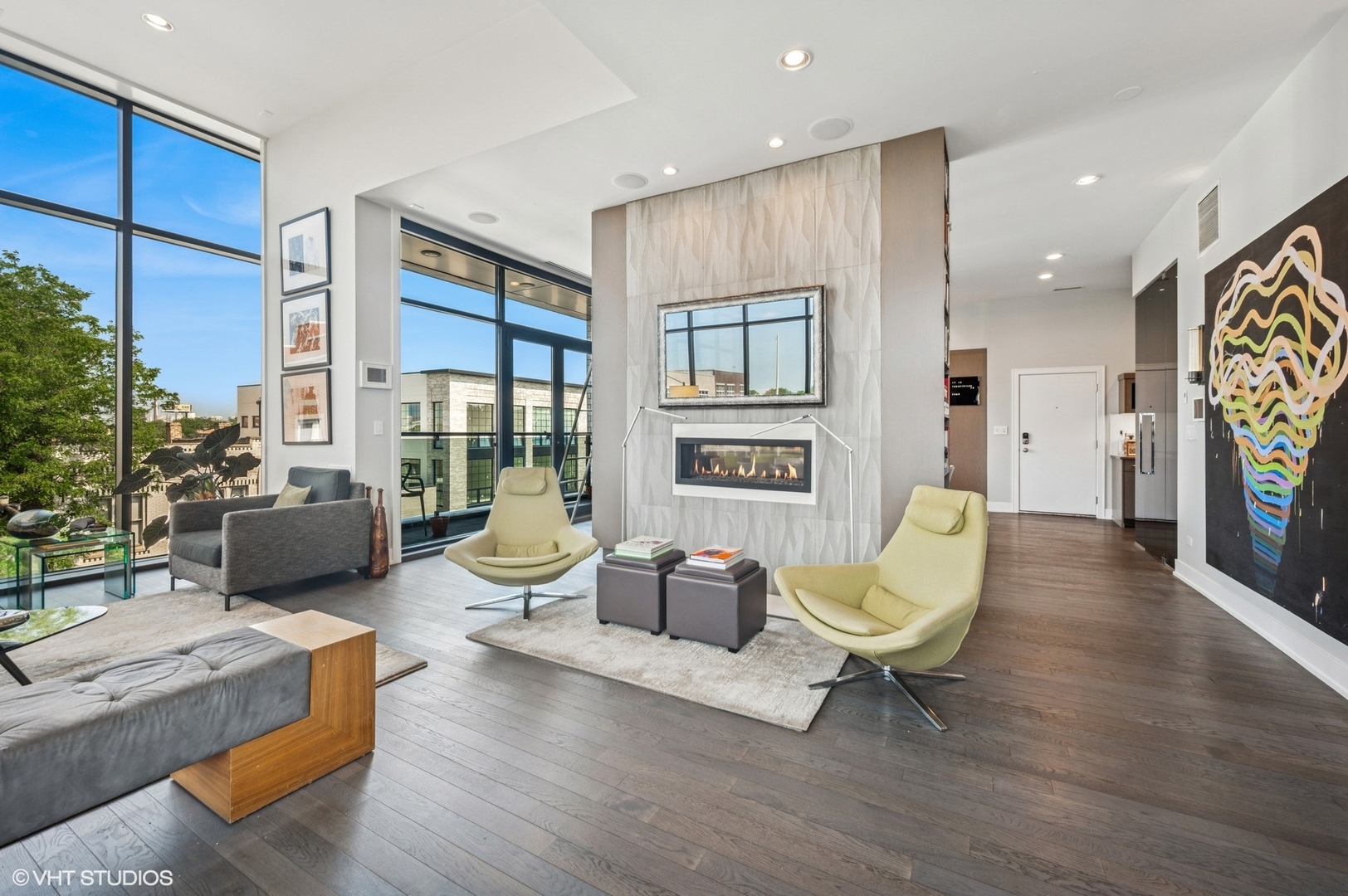 Spectacular full-floor 3 bed, 3.1 bath penthouse condo with direct and private elevator access is perfectly situated in prime Bucktown at the corner of Damen and Shakespeare. Soaring 18′ ceilings and dramatic windows flood this home with natural light, while an expansive private rooftop terrace offers unmatched skyline views. Rare, boutique elevator building offers 2-car attached and heated garage parking. Designed for luxurious living and effortless entertaining with more than 2,800 square feet of living space and open-concept living. The spacious living room is framed by dramatic floor-to-ceiling east and north facing windows and a sleek dual-sided fireplace. The adjacent dining area is anchored by a full wet bar and a striking, floor to ceiling, custom glass wine cellar. The ultimate chef’s kitchen offers sleek quartz countertops, generous custom cabinetry, and high-end appliances-including a built-in Miele coffee system, double ovens, pot filler, dual dishwashers, and two beverage/wine refrigerators. Just off the living room, two private balconies extend your entertaining space and offer the perfect setting for morning coffee or evening cocktails. The luxurious primary suite features a generous walk-in closet and spa-like bath with dual vanities, a jetted soaking tub, and steam shower. Two spacious secondary bedrooms, each with its own en-suite bath for comfort and privacy. Upstairs, an expansive private rooftop deck offers a true outdoor oasis with sweeping panoramic views of the city skyline. Thoughtfully designed for entertaining and relaxation, this incredible space features built-in seating, an outdoor TV/lounge area, a pergola offering shade and style, and both water and gas lines for easy outdoor cooking and hosting. Attached and heated two-car garage and dedicated storage. Ideally located near Bucktown’s best dining, shopping, the 606 Trail, public transport, Midtown Athletic Club and more. Pulaski Elementary School district. Come see this rare offering!