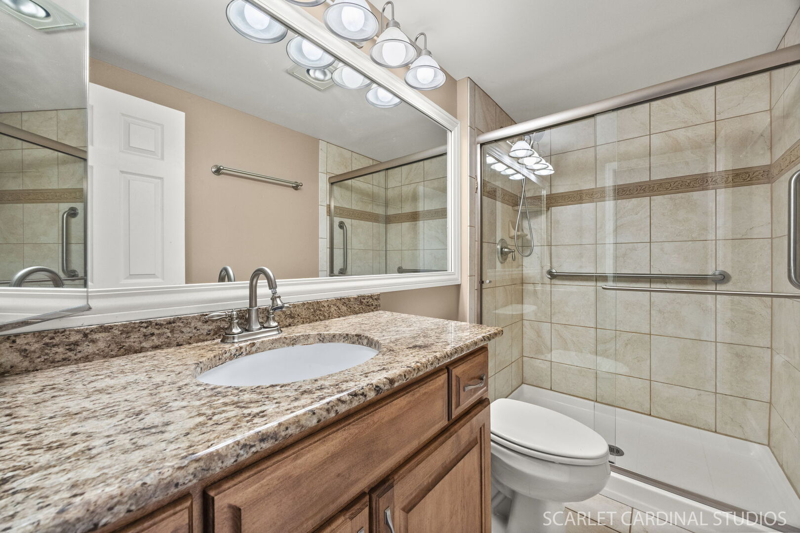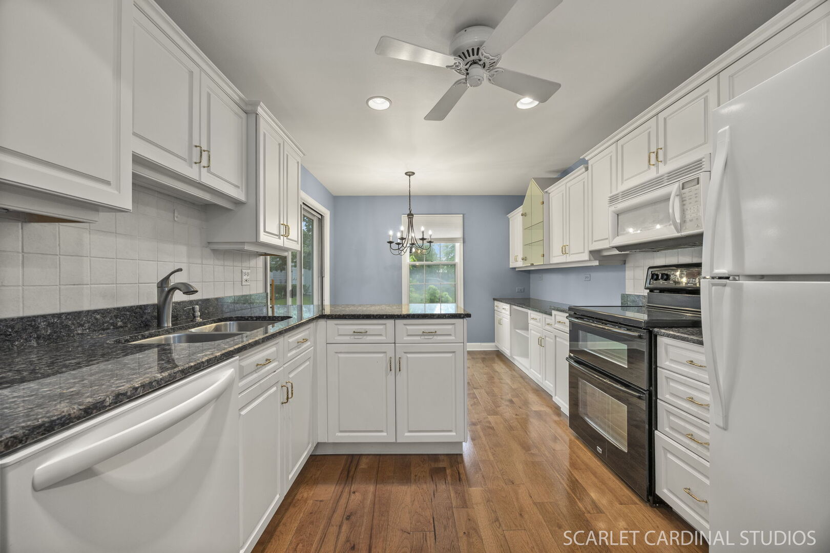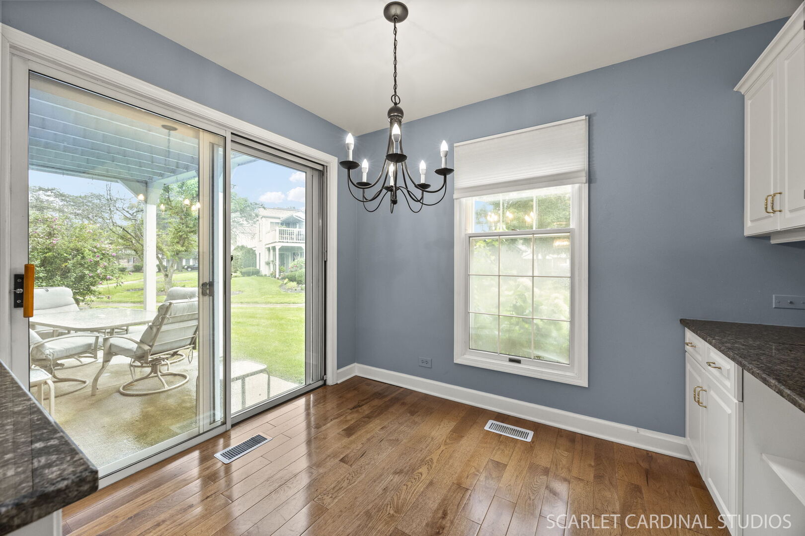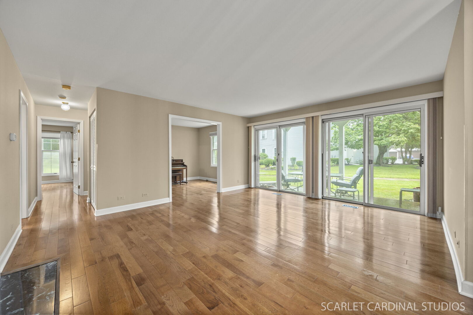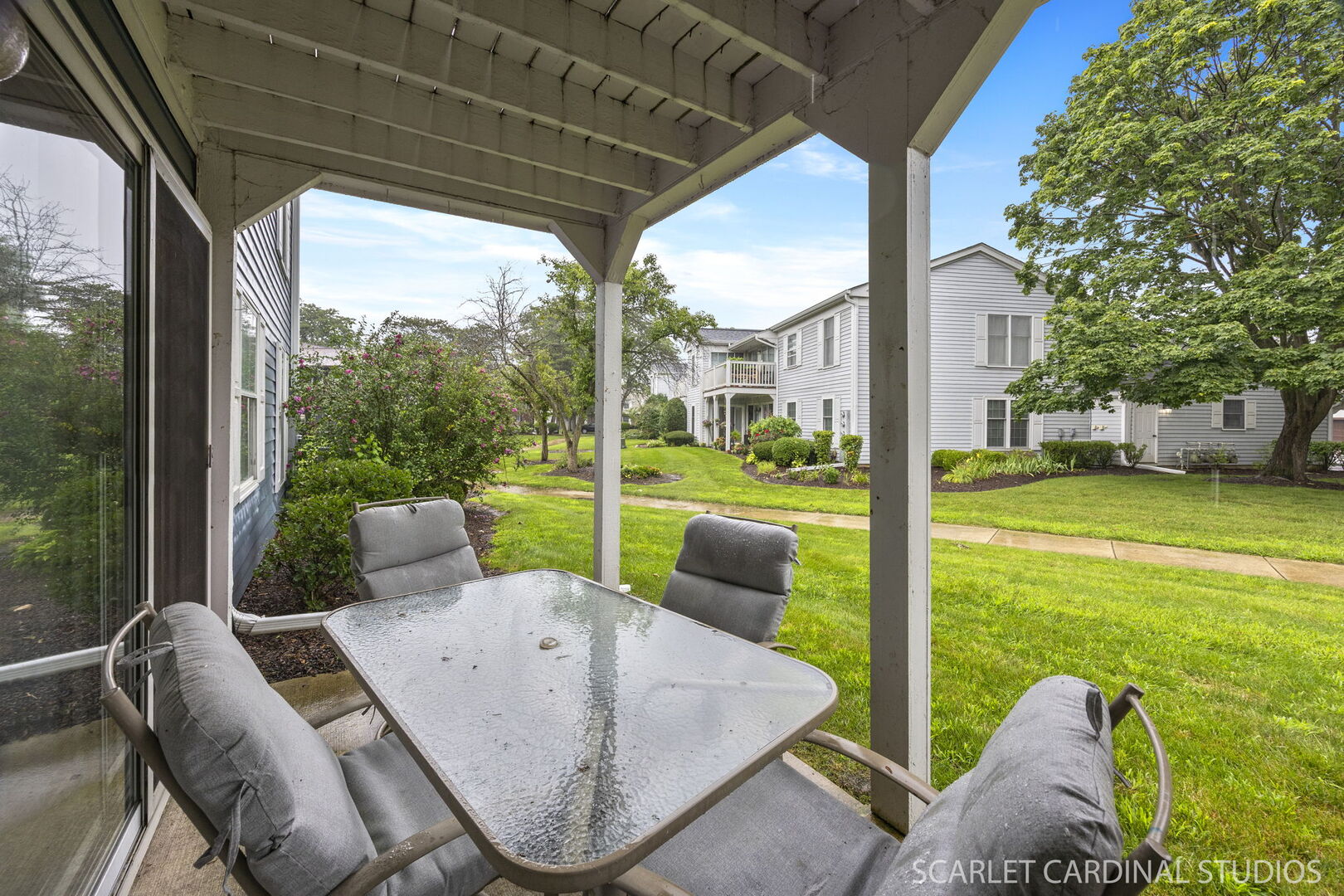 Gorgeous 3 bed, 2 bath unit situated on a desirable cul-de-sac location, in the Coach Houses of Old Sawmill that truly checks all the boxes! Step into the foyer with a large double closet and upgraded beautiful Hickory hardwood flooring that flow throughout much of the home. The open area living room offers generous space to relax, featuring a marble-faced fireplace and two sets of double patio doors that fill the room with natural light and views of the outdoors. Adjacent to the living area is a dedicated dining space that easily accommodates a large table and seamlessly connects to the kitchen. The kitchen has been fully updated with custom white cabinetry, granite countertops, newer appliances, and extended storage that includes a stylish glass-front display cabinet. Next to the living room is a flex room with a built-in closet system, perfect for a home office or easily convertible into a third bedroom. The primary bedroom is generously sized and includes a custom closet for excellent storage. The en-suite bathroom has been beautifully remodeled with updated vanity, granite countertop, newer fixtures, and tile flooring. The second bedroom is also spacious, includes two closets, and is conveniently positioned near the home’s second full bath, which has also been updated with a newer vanity, granite countertop, and modern fixtures. At the rear of the home, enjoy a quiet and private patio surrounded by greenery, ideal for morning coffee or evening dinners. Additional highlights include a one-car attached garage with floored attic storage, a large linen closet, and extra cabinetry in the utility room. Enjoy nearby walking paths, a pool facility, and easy access to downtown Naperville, shopping, and restaurants. Attends the highly rated Naperville District 203 schools including Kingsley Elementary, Lincoln Jr High School, and Naperville Central High School. Don’t miss the chance to make this lovely unit your next home!