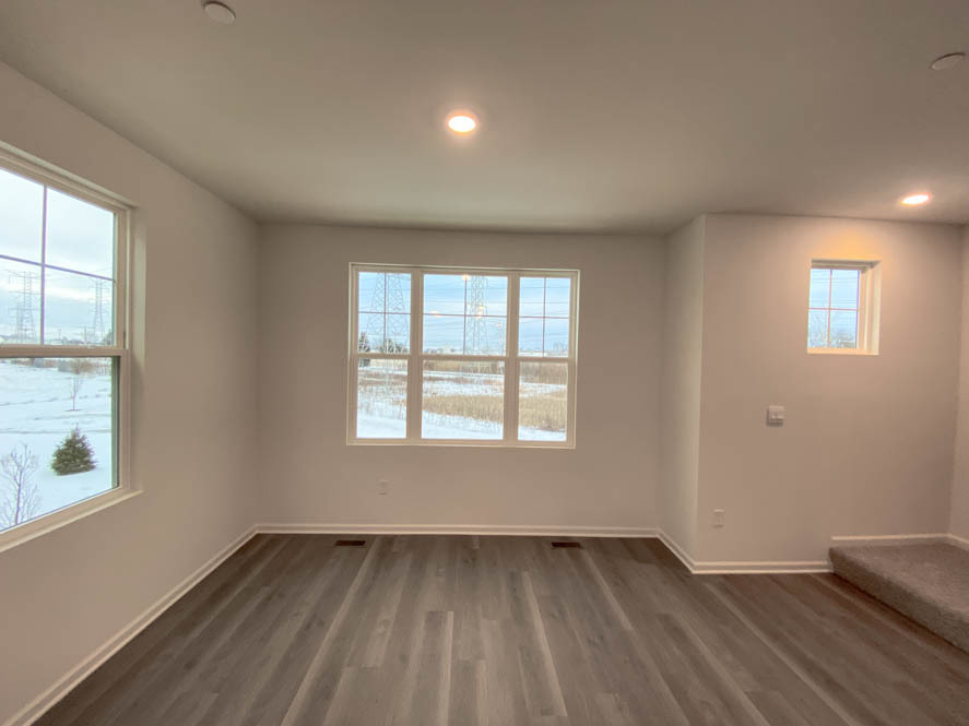 Discover yourself at 2149 Yellowstone Blvd. in Mundelein, Illinois, a modern new townhome in our Townes at Oak Creek community. This new construction townhome is ready for a spring move-in. Homesite includes a fully sodded yard that is maintained throughout the year as well as snow removal in the winter. Located in Stevenson High School district! This End Unit Gregory townhome plan offers 1,798 square feet of living space with 3 bedrooms, 2.5 baths, and a flex room. As you step inside the front door, you’ll be greeted by the flex room, perfect for a home office, playroom, or 2nd family room. Walking up the stairs you will find this home’s open concept family room with 9-foot ceilings and luxury vinyl plank flooring throughout the main level kitchen and dining, and bathrooms. The expansive kitchen overlooks both the front dining and back great room areas making it the perfect space to entertain. Additionally, your kitchen features Quartz countertops, a large island that is ideal for everyday living, 42″ cabinetry with soft close doors and crown molding, stainless steel appliances and pantry. The great room leads out to an elongated deck over the 2-car garage. Arriving at the top floor, you’ll find the primary suite, secondary bedrooms with a full second bath, linen closet, and laundry room. Enjoy a spacious primary bedroom suite with a large walk-in closet and connecting en suite bathroom with a walk-in shower. The Townes at Oak Creek will be adjacent to a future dog park, playground and common firepit along with plenty of walking travels. Enjoy being 5 minutes from Hawthorn Mall, a plethora of fabulous restaurants and miles of trails that stretch of over 10 Forest Preserves, while being less than 10 minutes away from 2 Metra Train stations, 30 minutes from O’Hare and easy access to I94/294! Our Chicago home includes our America’s Smart Home Technology featuring Smart Home Features including video doorbell, Honeywell thermostat, Door Lock, Garage Door Opener, Deako smart light switches and an Amazon Echo Pop which allows you to monitor and control your home from the comfort of your sofa or far away from your smartphone. Impressive technology and efficiencies give you the most innovative home on the market including ERV furnace system, tankless water heater and Rheia ductwork delivery system. Builder Warranty 1-2-10 is included. Photos are of a similar home. Actual home built may vary.