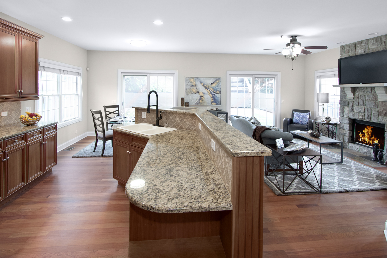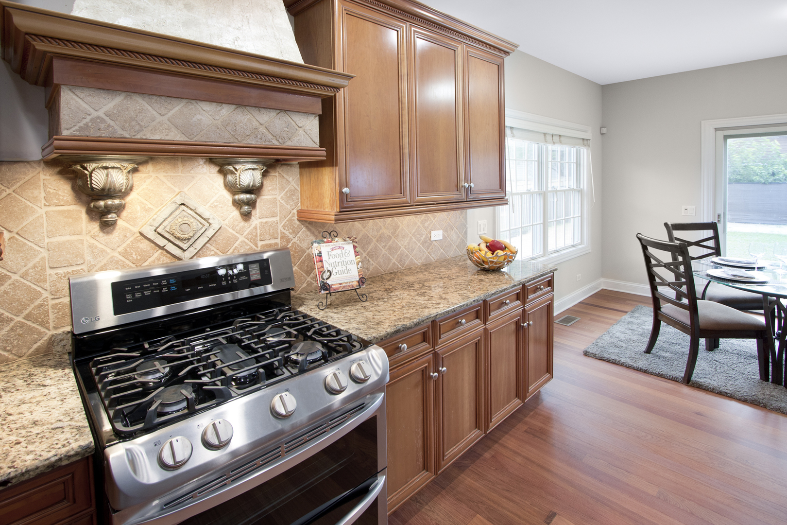 Custom-built and beautifully maintained, this 5-bedroom, 3-bath home offers the perfect blend of open space, function, and many recent upgrades-all just one block from the high school. Inside, enjoy a flexible floor plan with a first-floor bedroom and full bath-ideal for guests, in-laws, or a home office. The family room features a cozy gas fireplace with remote control, while the adjacent dining room includes a built-in wet bar-perfect for entertaining. The gourmet kitchen shines with 42″ cherry cabinets, granite counters, stainless steel appliances (including a just-replaced dishwasher in 2025 and oven in 2020), an island/breakfast bar, and an eat-in area. A first-floor laundry room offers exterior access, a built-in ironing board, and washer/dryer. Upstairs, the spacious primary suite is a true retreat with vaulted ceilings, a gas fireplace, jetted tub, dual comfort-height vanities, and an oversized walk-in closet with organizers. Extensive updates include: roof, gutters, downspouts and gutter guards (2023), updated Furnace (11/2025) AC (2023), two water heaters replaced (2022 & 2025), garage door with smart tech (2023), hardwood floors refinished (2025),entire first and second floors freshly painted (2025), water softener (2022), & a smart thermostat (2025). Additional features: brick facade with vinyl siding, built-in speakers, reverse osmosis, fire suppression sprinkler system throughout, 6 ceiling fans. The extra-long garage includes shelving, windows, and a side access door-plus a smart-enabled 7′ garage door. The full basement is plumbed for a fourth bathroom, offering room to expand. Enjoy the fenced backyard with a patio-ideal for relaxing or entertaining. All this in an unbeatable location near schools, parks, and 3 blocks to village shops. This is a truly move-in-ready home with smart updates and quality finishes throughout!
