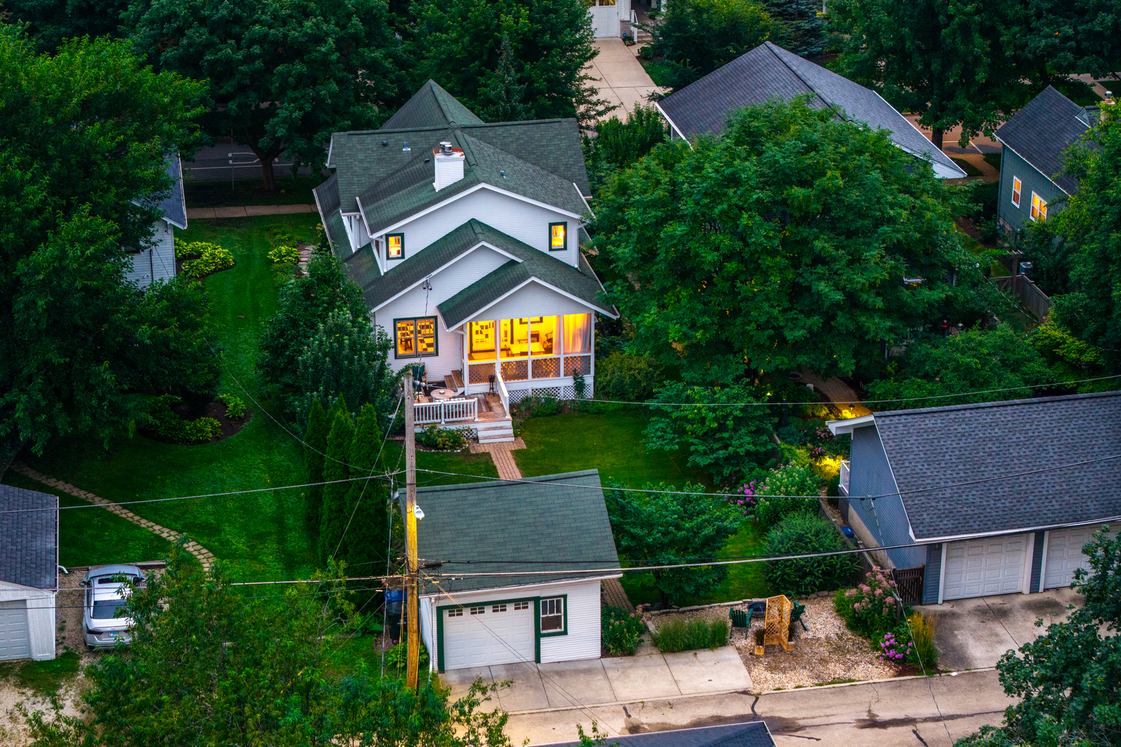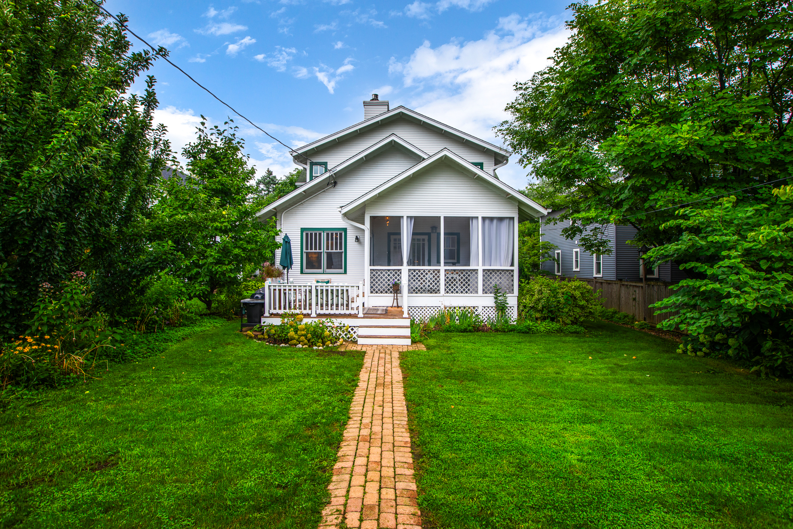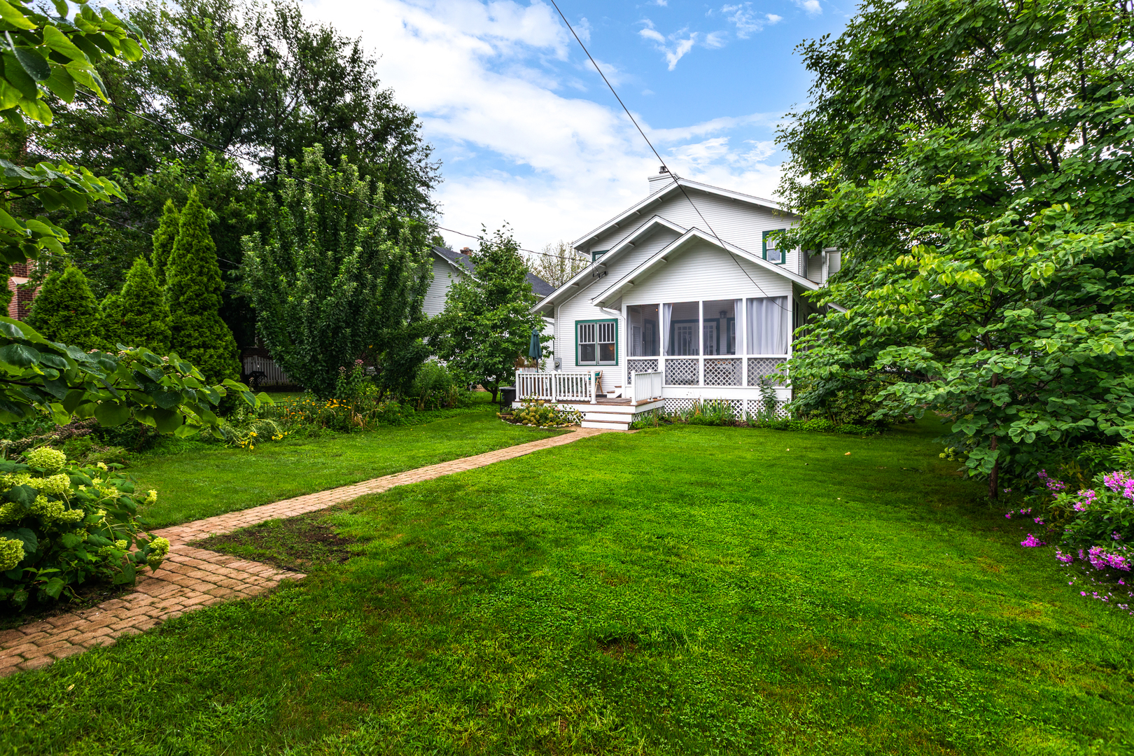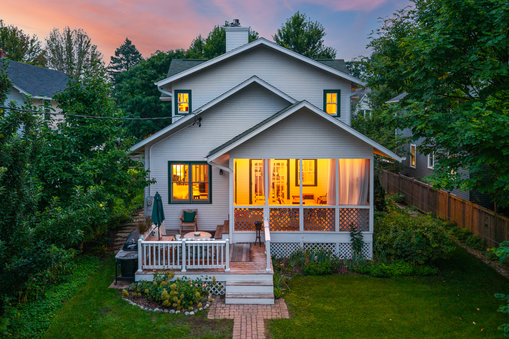LIVE IN DOWNTOWN NAPERVILLE! Just Steps from Downtown. This remarkable home is a true blend of timeless character and modern updates-thoughtfully renovated to today’s standards while faithfully preserving its charm. Located in the highly sought-after East Highlands neighborhood, just a short walk to vibrant downtown Naperville, the Riverwalk, Metra, shopping, dining, and award-winning District 203 schools, this property offers the best of location and lifestyle. From the curb, the inviting street view only hints at what lies within. Enter through a beautiful leaded glass door into a spacious living and dining area, where gleaming hardwood floors and an abundance of natural light from tilt-out Marvin windows create a warm and welcoming ambiance. A MAIN FLOOR BEDROOM AND ADJACENT FULL BATH provide flexible living-perfect as a guest suite or a private work-from-home office. The kitchen and eating area are the heart of the home, featuring a cozy fireplace, white tile backsplash, stainless steel farm sink, vented range hood, LG refrigerator, and a high-performance DCS gas range. French glass doors lead to a vaulted, pine-paneled screened porch-a serene, all-season retreat overlooking the beautifully landscaped backyard. Adjacent to the kitchen is a versatile flex room with a second fireplace and direct access to the porch-ideal for use as a den, library, or study. Nearby, a tucked-away space makes for a great second office. Upstairs, hardwood floors continue throughout. The spacious primary suite includes a full en-suite bath, large walk-in closet, and a sitting area or creative space. Each of the additional bedrooms offers its own unique charm, from vaulted ceilings to built-in seating. The basement adds incredible functionality with a large recreation area, laundry room with brick accent wall, separate storage and work areas, and a fourth half-bath-significantly expanding the usable square footage. Mechanical and design upgrades include 3-zoned HVAC, dual water heaters, gutter guards, sandblasted and repainted exterior, 6-panel doors, pedestal sinks, a clawfoot tub, and customized St. Charles Closets. Vintage details like picture rail, generous baseboards, classic moldings, and a built-in hutch lend timeless beauty throughout. Situated in one of Naperville’s most beloved neighborhoods, this home showcases the top-quality craftsmanship and architectural integrity demanded by its past and present owner. This is more than a home; it’s a rare opportunity to own a piece of East Highlands charm with every modern comfort.