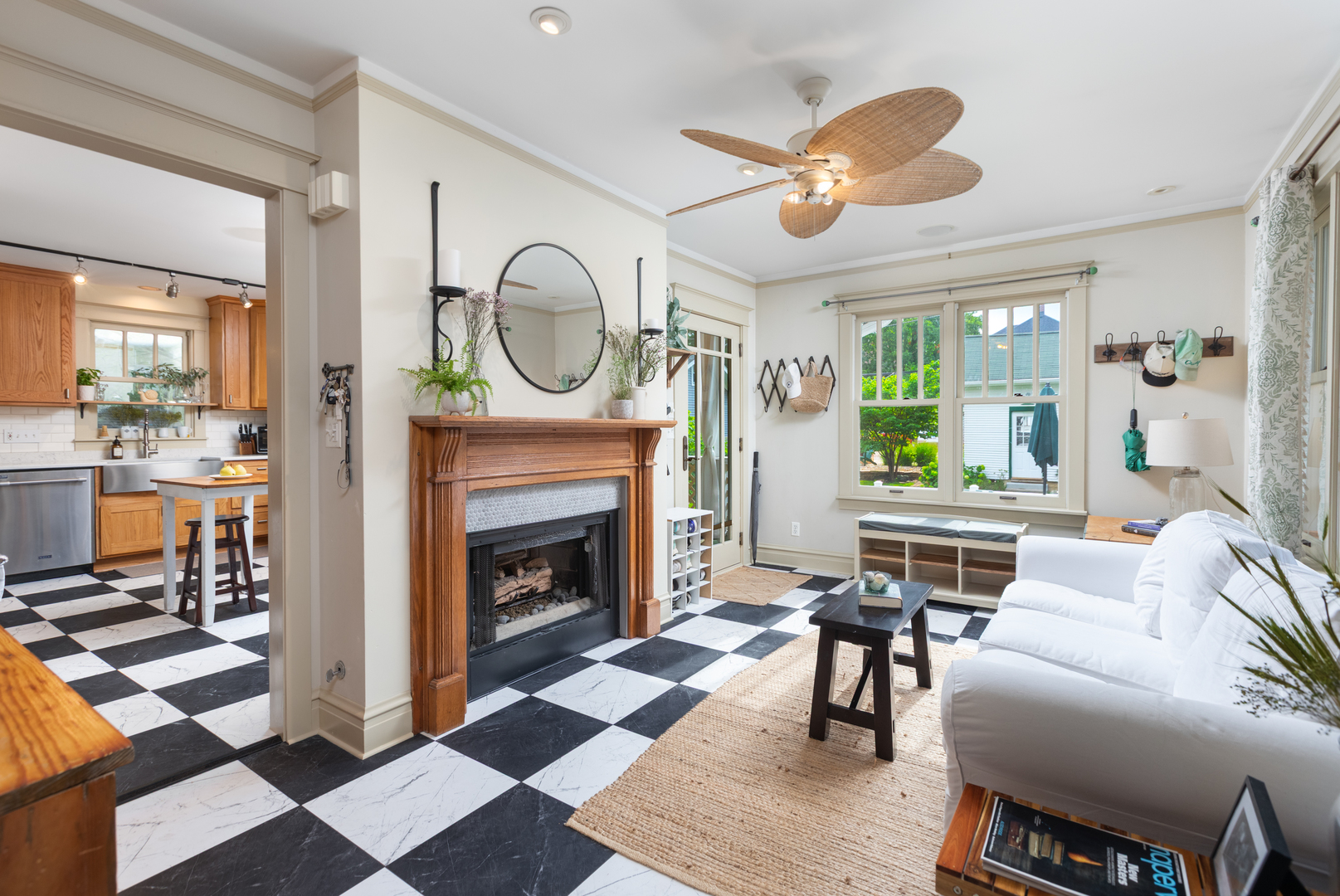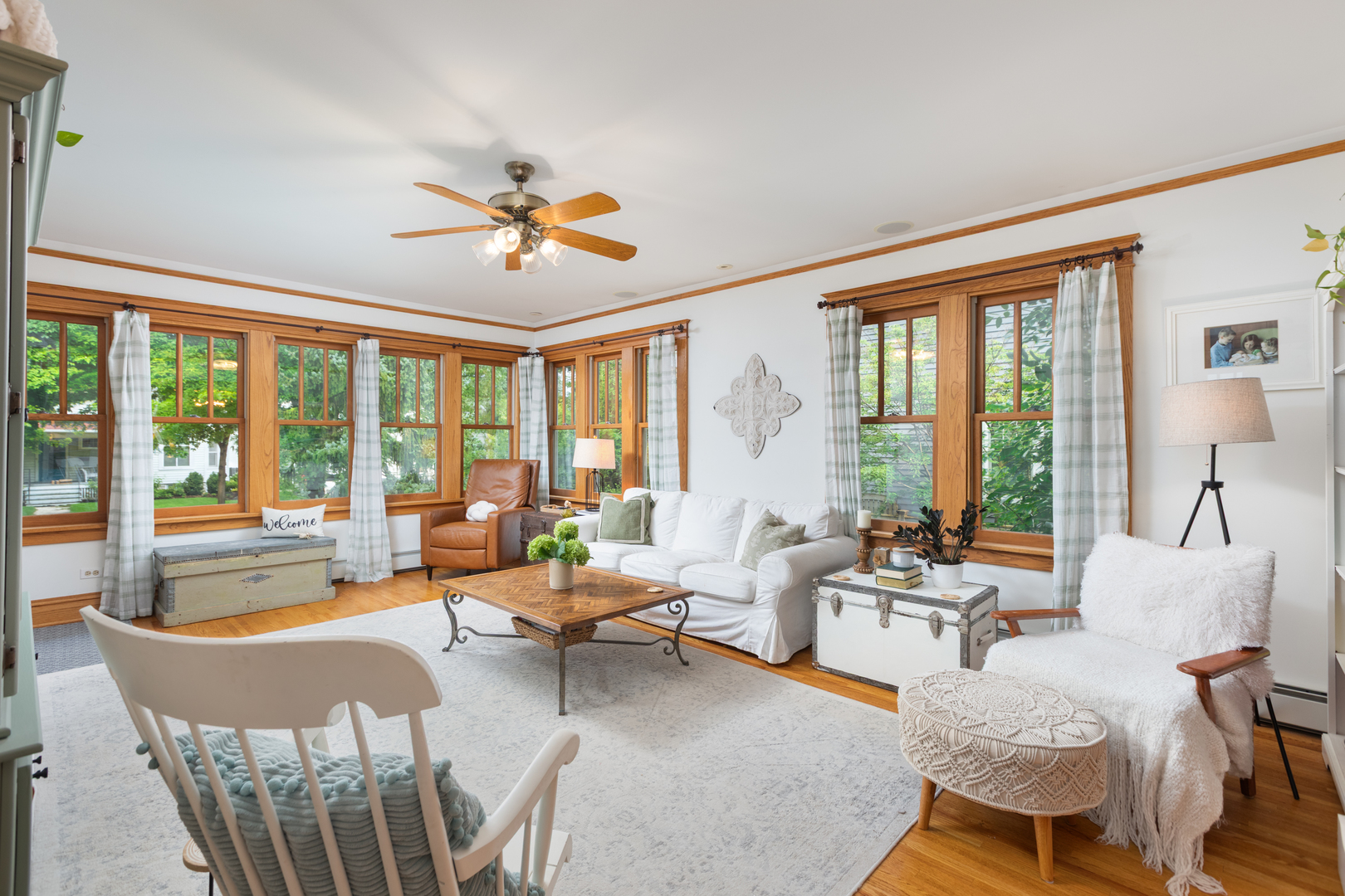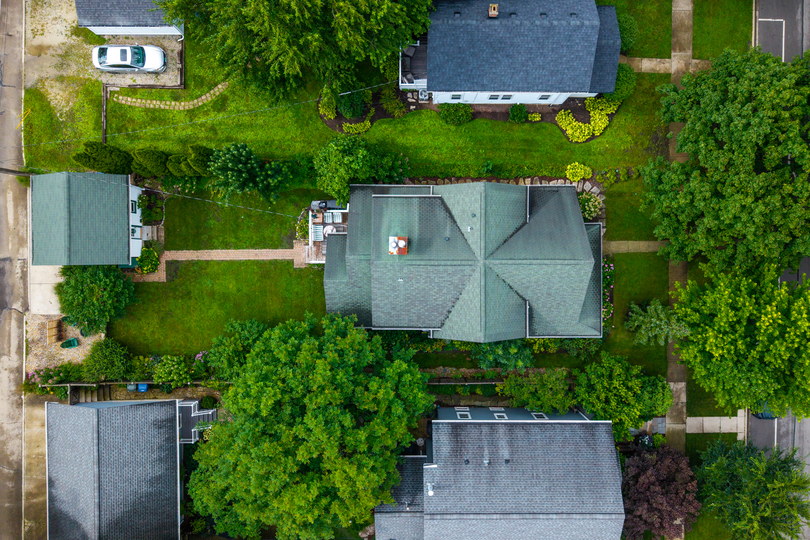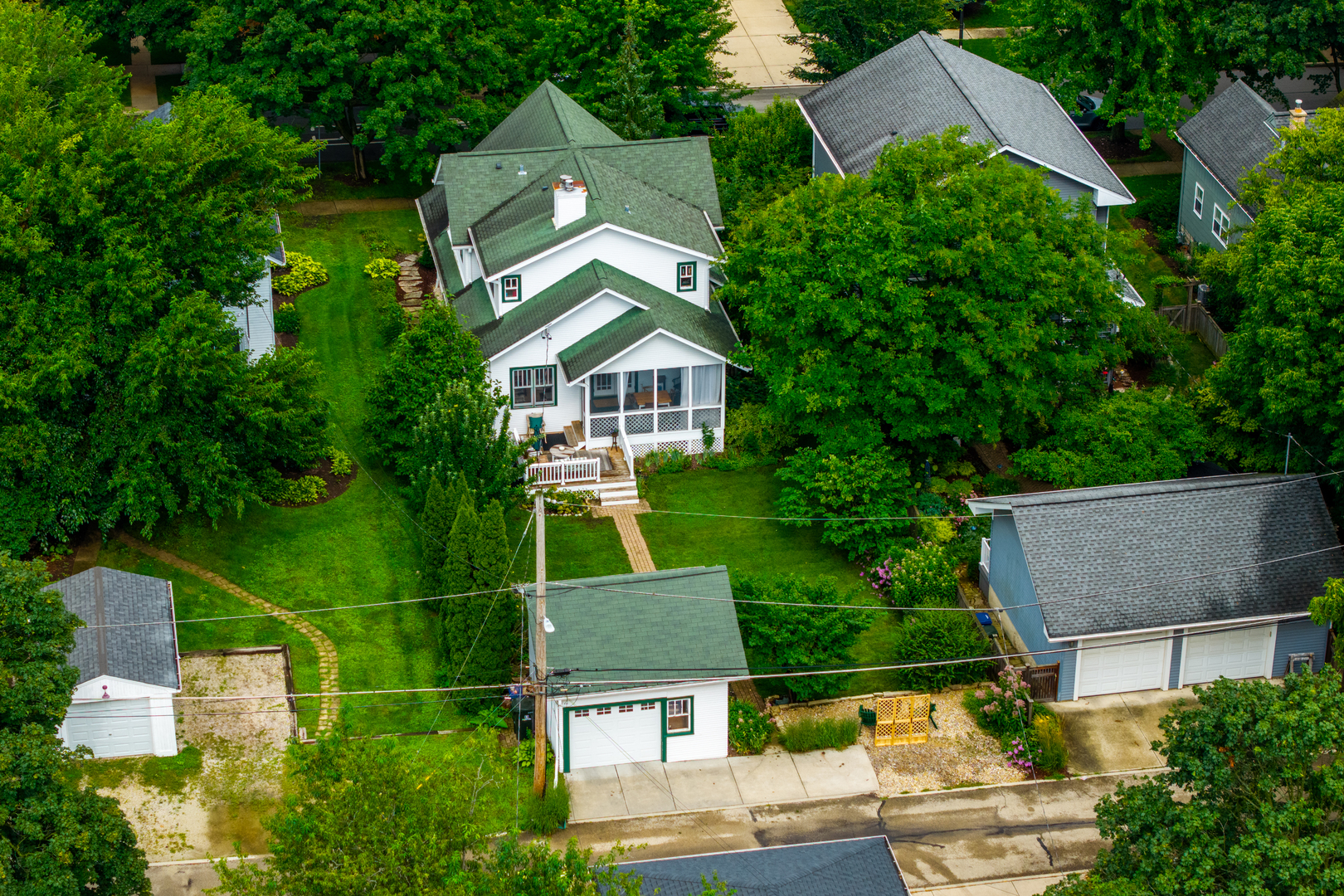 LIVE IN DOWNTOWN NAPERVILLE! Just Steps from Downtown. This remarkable home is a true blend of timeless character and modern updates-thoughtfully renovated to today’s standards while faithfully preserving its charm. Located in the highly sought-after East Highlands neighborhood, just a short walk to vibrant downtown Naperville, the Riverwalk, Metra, shopping, dining, and award-winning District 203 schools, this property offers the best of location and lifestyle. From the curb, the inviting street view only hints at what lies within. Enter through a beautiful leaded glass door into a spacious living and dining area, where gleaming hardwood floors and an abundance of natural light from tilt-out Marvin windows create a warm and welcoming ambiance. A MAIN FLOOR BEDROOM AND ADJACENT FULL BATH provide flexible living-perfect as a guest suite or a private work-from-home office. The kitchen and eating area are the heart of the home, featuring a cozy fireplace, white tile backsplash, stainless steel farm sink, vented range hood, LG refrigerator, and a high-performance DCS gas range. French glass doors lead to a vaulted, pine-paneled screened porch-a serene, all-season retreat overlooking the beautifully landscaped backyard. Adjacent to the kitchen is a versatile flex room with a second fireplace and direct access to the porch-ideal for use as a den, library, or study. Nearby, a tucked-away space makes for a great second office. Upstairs, hardwood floors continue throughout. The spacious primary suite includes a full en-suite bath, large walk-in closet, and a sitting area or creative space. Each of the additional bedrooms offers its own unique charm, from vaulted ceilings to built-in seating. The basement adds incredible functionality with a large recreation area, laundry room with brick accent wall, separate storage and work areas, and a fourth half-bath-significantly expanding the usable square footage. Mechanical and design upgrades include 3-zoned HVAC, dual water heaters, gutter guards, sandblasted and repainted exterior, 6-panel doors, pedestal sinks, a clawfoot tub, and customized St. Charles Closets. Vintage details like picture rail, generous baseboards, classic moldings, and a built-in hutch lend timeless beauty throughout. Situated in one of Naperville’s most beloved neighborhoods, this home showcases the top-quality craftsmanship and architectural integrity demanded by its past and present owner. This is more than a home; it’s a rare opportunity to own a piece of East Highlands charm with every modern comfort.