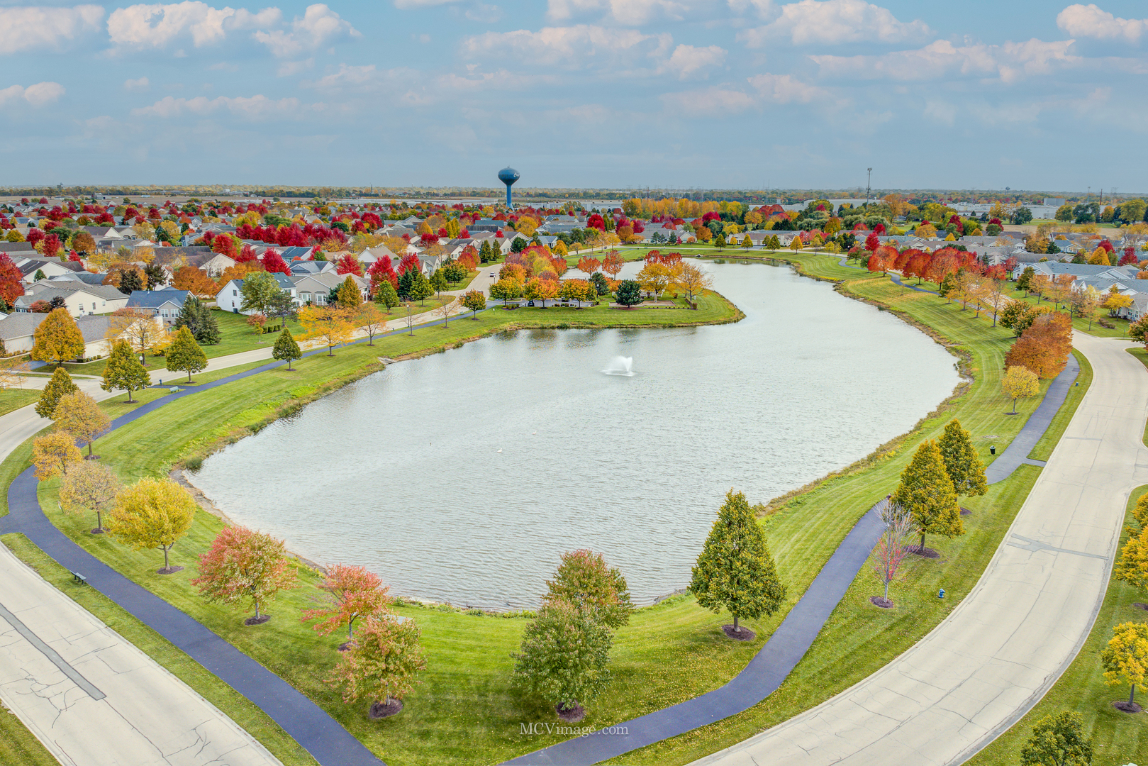 Welcome to this beautiful RANCH townhome situated on a premium, corner lot with picturesque views in Carillon Lakes 55+ Active Adult Community. This charming 2-bedroom, 1 bath Monterey model offers almost 1,300 sq. ft. of living space with 9-foot ceilings throughout, creating an open and inviting atmosphere filled with natural light. The upgraded covered front porch offers a welcoming outdoor space to relax and unwind. The front entry has no steps providing easy accessibility into the home. Inside, the open-concept family and dining areas offer a comfortable flow ideal for daily living and entertaining. The beautiful eat-in kitchen features abundant oak cabinetry, all appliances, and a pantry for ample storage. The expansive primary bedroom suite includes a generous 9×9 walk-in closet and access to a shared bathroom. The large spa-like bathroom boasts a relaxing soaking tub, separate shower, and a stylish double-sink white vanity. Double French glass doors lead to the versatile second bedroom, which also features a walk-in closet and a sliding glass door opening to the side patio-perfect for use as an office, den, or hobby room. A spacious laundry room with washer and dryer adds extra convenience. Situated on a picturesque corner lot, this home overlooks open green space that enhances privacy and tranquility. 2-car, attached deep garage provides extra storage. NEW roof and gutters (2024), furnace and A/C (6/2021), hot water heater (12/2020) and a water softener. Enjoy resort-style living in Carillon Lakes is a 55+ active adult community with indoor/outdoor pools, clubhouse, exercise facilities, golf course, tennis courts, lakes and walking paths. Prime location near shopping, dining, expressway and more.