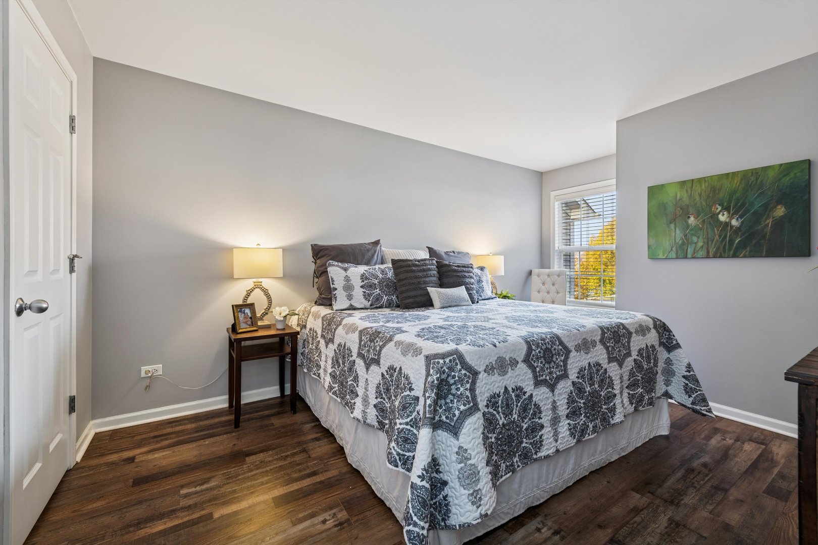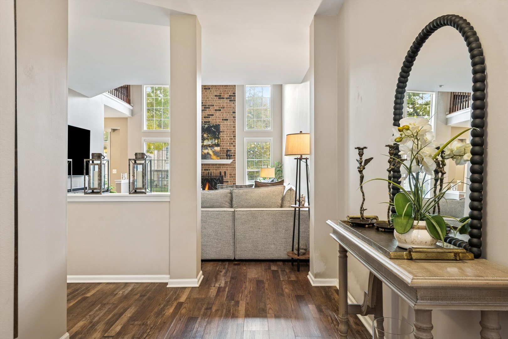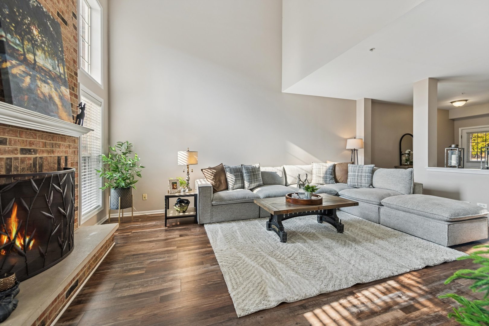 Light-filled and beautifully updated – this chic townhome offers an effortless, modern lifestyle in a coveted community with park, pond and sports courts just steps away. Inside, an airy open layout unfolds with on-trend LVP flooring throughout the main living spaces. The dramatic two-story living room impresses with floor-to-ceiling fireplace and a lofted overlook above, creating an open yet cozy environment for entertaining and everyday living. The updated kitchen features granite counters, 42″ cabinetry and a charming dining nook with sliders to the private patio – the perfect spot for your morning coffee. Upstairs, the spacious loft is ideal for a home office, lounge or reading retreat. The luxe primary suite offers an ensuite bath and generous walk-in closet, while a second bedroom with its own walk-in closet, a full hall bath, and laundry closet complete the upper level. The full unfinished lower level gives you incredible potential – finish for additional living space, recreation room, or gym. The location is simply unbeatable – minutes to the NOW Arena for events and concerts, the Arboretum for upscale shopping and dining, and easy access to I-90 for quick trips to O’Hare or downtown Chicago. Truly move-in ready – and an exceptional find!