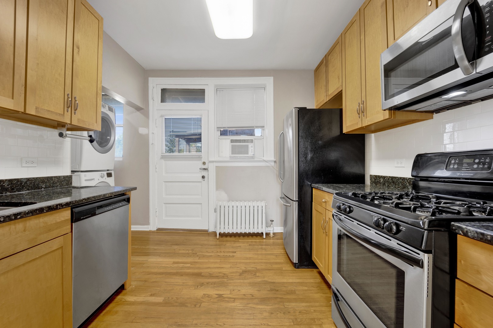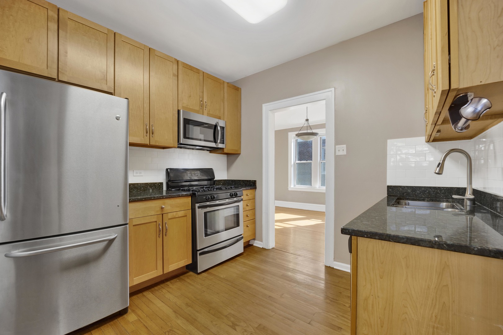 Welcome to Unit 3 at 217 Chicago Avenue, a charming 1-bedroom, 1 bath end unit condo nestled in a vintage brick building (circa 1923) in the heart of Oak Park. Boasting spacious living space, this home features refinished hardwood floors, abundant natural light, and a generously sized bedroom with ample closet space. The kitchen has been nicely updated with maple cabinetry, granite countertops, stainless steel appliances, and includes a pantry for extra storage. Convenience is built in-with in-unit laundry, additional living room storage, and a locked basement storage unit. Enjoy your morning coffee on your private balcony off the kitchen. Low HOA dues ($333.72/month) cover many essentials such as heat, water, gas, and garbage. Perfectly located with walkability to the Green Line, shops, restaurants, transit, and minutes from Whittier Elementary, Gwendolyn Brooks Middle, and Oak Park & River Forest High School. A rare opportunity to own a cozy, wellmaintained condo in one of Oak Park’s most desirable spots